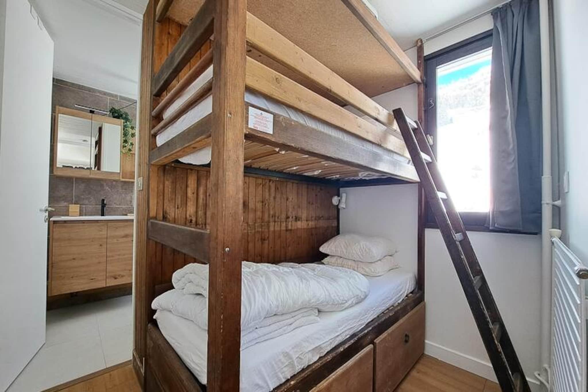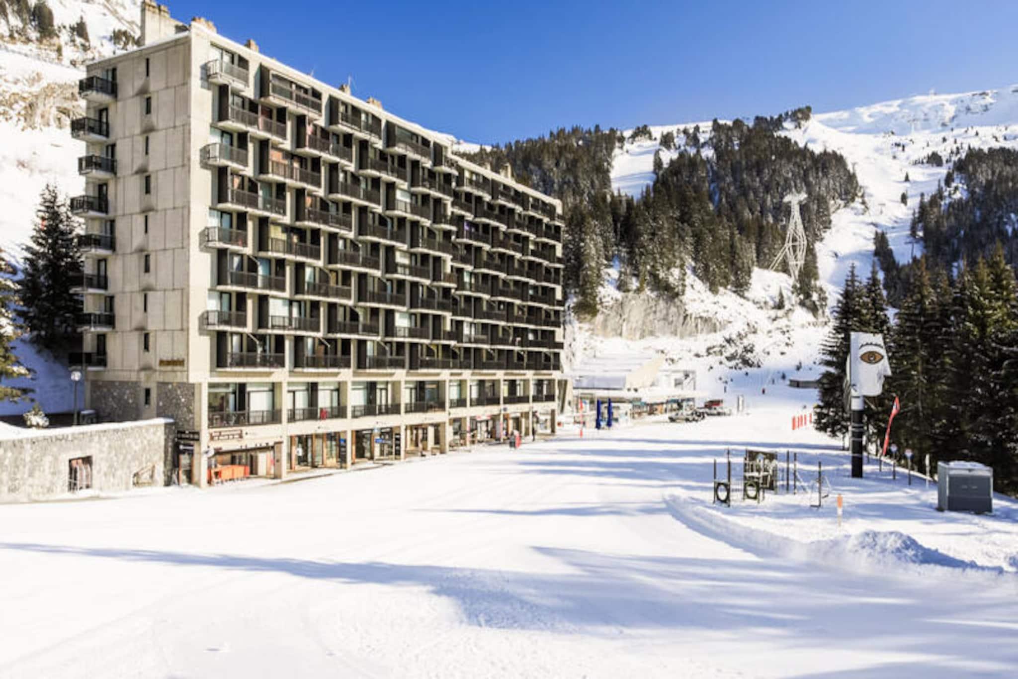 In the heart of the picturesque Flaine resort, the Aldébaran Residence offers a cozy retreat in the vibrant Forum district, the beating heart of this alpine destination. Just steps away from the Flaine Forum shopping mall, you’ll find yourself surrounded by lively bars, inviting restaurants, and a wealth of activities to immerse yourself in the mountain spirit. Whether you’re here for the snow or the summer sun, this location ensures you’re at the center of it all. This charming 28 m² apartment is thoughtfully designed to maximize comfort and functionality. Located on the 5th floor, it features a bright living room with a standard sofa and a fold-out sofa bed, perfect for relaxing after a day of adventure. The open-plan kitchen is equipped for preparing meals to enjoy in the dining area, which comfortably seats five. A cozy sleeping alcove with bunk beds adds a touch of alpine charm, while the private balcony invites you to soak in the crisp mountain air and stunning views. For ski enthusiasts, the residence is ideally situated at the foot of the slopes, with the Flaine Forum ESF meeting point and the Télébennes cable car just a few steps away. This prime location allows you to hit the slopes effortlessly and explore the expansive ski area. In the warmer months, the resort transforms into a haven for hikers and nature lovers, with trails and activities that showcase the breathtaking beauty of the Alps. Whether you’re seeking thrilling outdoor adventures or a relaxing escape in a lively alpine village, the Aldébaran Residence provides the perfect base for an unforgettable holiday in Flaine. Book your stay and experience the magic of the mountains.