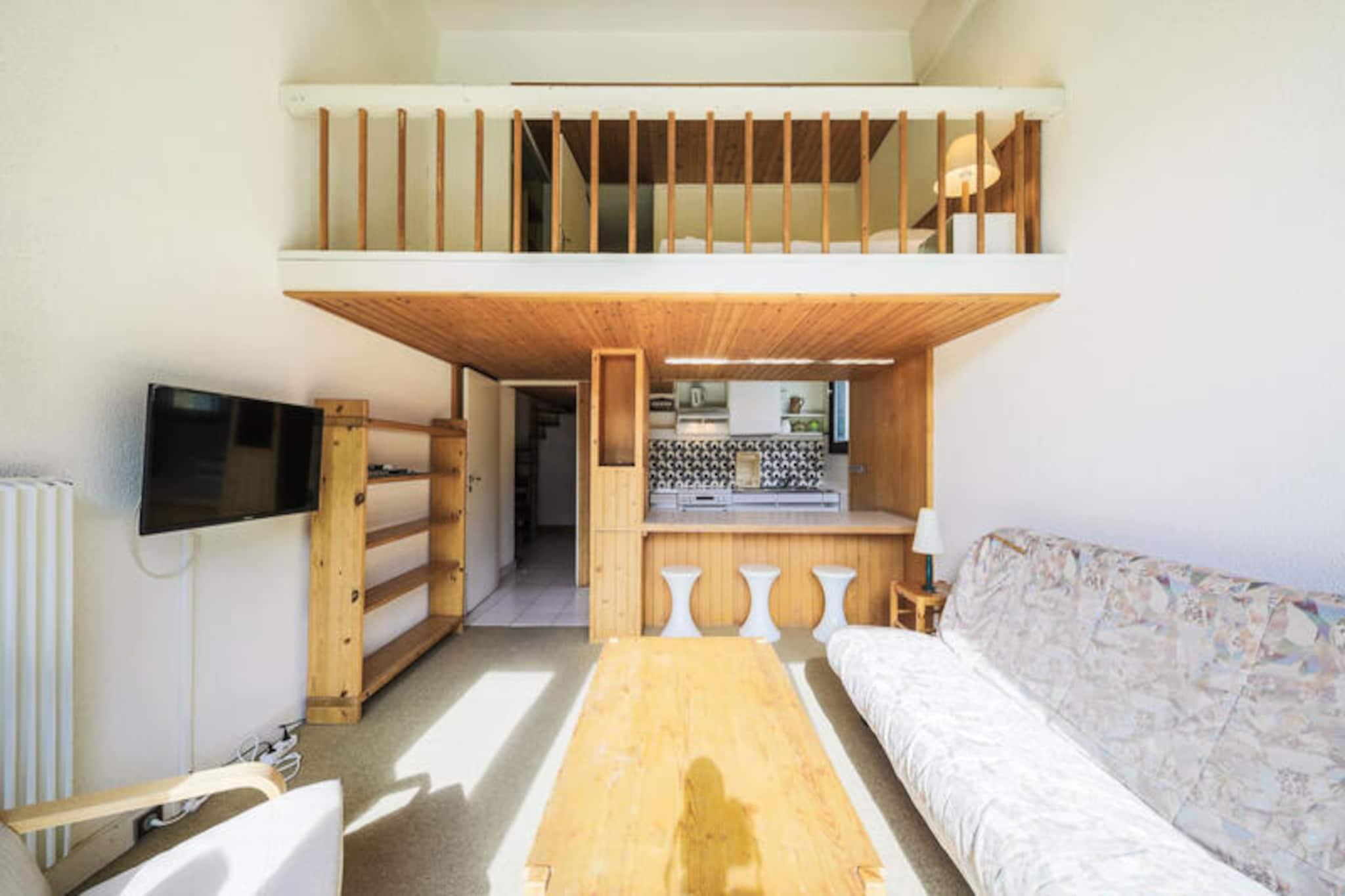 In the heart of the stunning Flaine ski resort, the Aldébaran Residence in the Forum district offers a perfect blend of convenience and alpine charm. Situated just 50 meters from the bustling Flaine Forum shopping mall, this property places you at the center of the resort's vibrant energy, surrounded by lively bars, restaurants, and a variety of activities to enjoy throughout your stay. Whether you're here for the slopes or the après-ski, this location ensures you're always in the midst of the action. This cozy 32 m² apartment is thoughtfully designed to maximize comfort and functionality. The living room, complete with a standard sofa and armchair, opens up to a well-equipped kitchen and dining area, making it ideal for shared meals and relaxation after a day on the slopes. The two mezzanines provide flexible sleeping arrangements with two double beds and two single beds, accommodating families or groups of up to six guests. The bathroom features a bathtub and toilet, while the private balcony invites you to soak in the crisp mountain air and scenic views. For ski enthusiasts, the location is unbeatable. The residence is just steps away from the Flaine Forum ESF meeting point and the Télébennes cable car, offering seamless access to the expansive ski area. Whether you're a beginner or an experienced skier, the slopes are at your doorstep. Beyond skiing, the Forum district buzzes with entertainment, from shopping to dining and cultural events, ensuring there's something for everyone. Choose the Aldébaran Residence for its unbeatable location, cozy accommodations, and proximity to everything Flaine has to offer. Whether you're here for adventure or relaxation, this property promises an unforgettable alpine getaway.