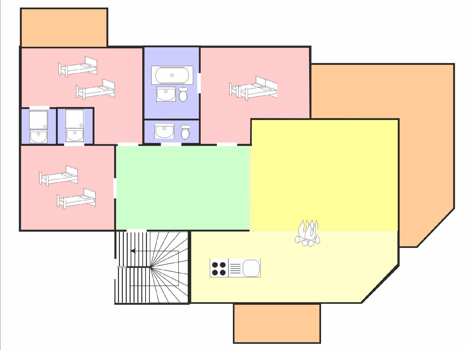 4 bedrooms (2 single beds each)