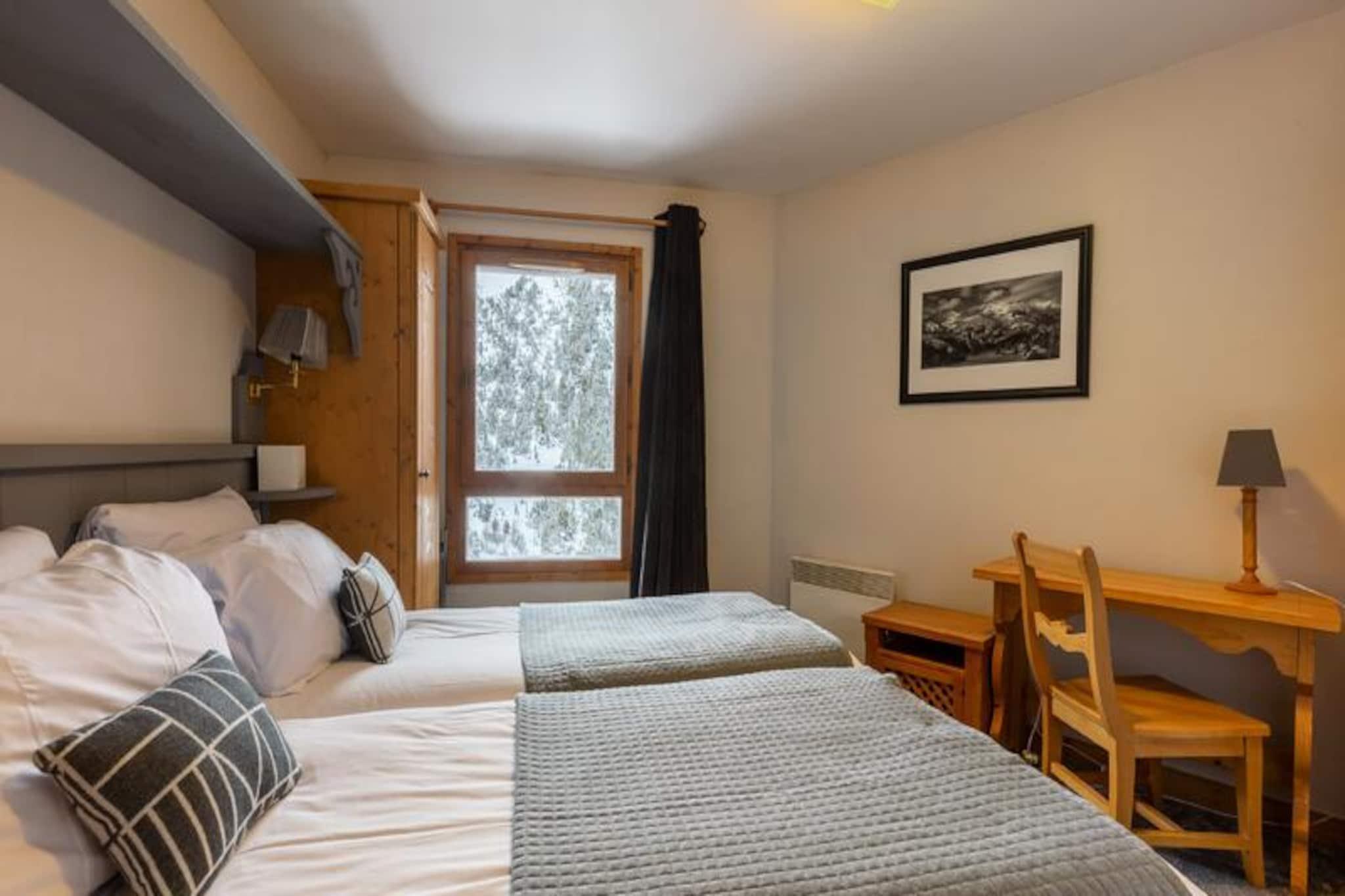 High in the heart of the French Alps, where snow-dusted peaks meet luxury and charm, lies the enchanting Arc 1950 village. This unique, fully pedestrianized resort offers an unparalleled ski-in/ski-out experience, making it a haven for winter sports enthusiasts and summer adventurers alike. Imagine waking up to breathtaking views of Mont Blanc, stepping onto pristine slopes, or exploring lush hiking trails that stretch over 700 kilometers in the warmer months. Arc 1950 is more than a destination; it’s an alpine dream brought to life. Your spacious 61 m² apartment, located in the Les Sources de Marie building, is designed for comfort and style. With two cozy bedrooms, a fully equipped kitchen, and a bright living area featuring a sofa bed, it comfortably accommodates up to six guests. Modern amenities include two bathrooms, one en-suite with a bathtub-shower, and a separate toilet for added convenience. While balconies are temporarily closed, the interior offers a warm and inviting retreat after a day of adventure. The village boasts a wealth of amenities to enhance your stay. Relax in the Deep Nature Spa, indulge in heated pools, saunas, and jacuzzis, or explore the 40 shops, bars, and restaurants just steps from your door. In the summer, the 180 km bike park and proximity to the Vanoise National Park make it a paradise for outdoor enthusiasts. Whether you’re seeking thrilling ski runs, tranquil spa days, or unforgettable alpine vistas, this property at Arc 1950 promises a holiday filled with luxury, adventure, and cherished memories.