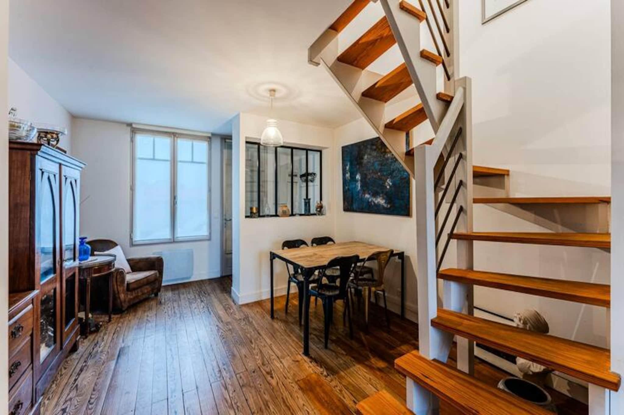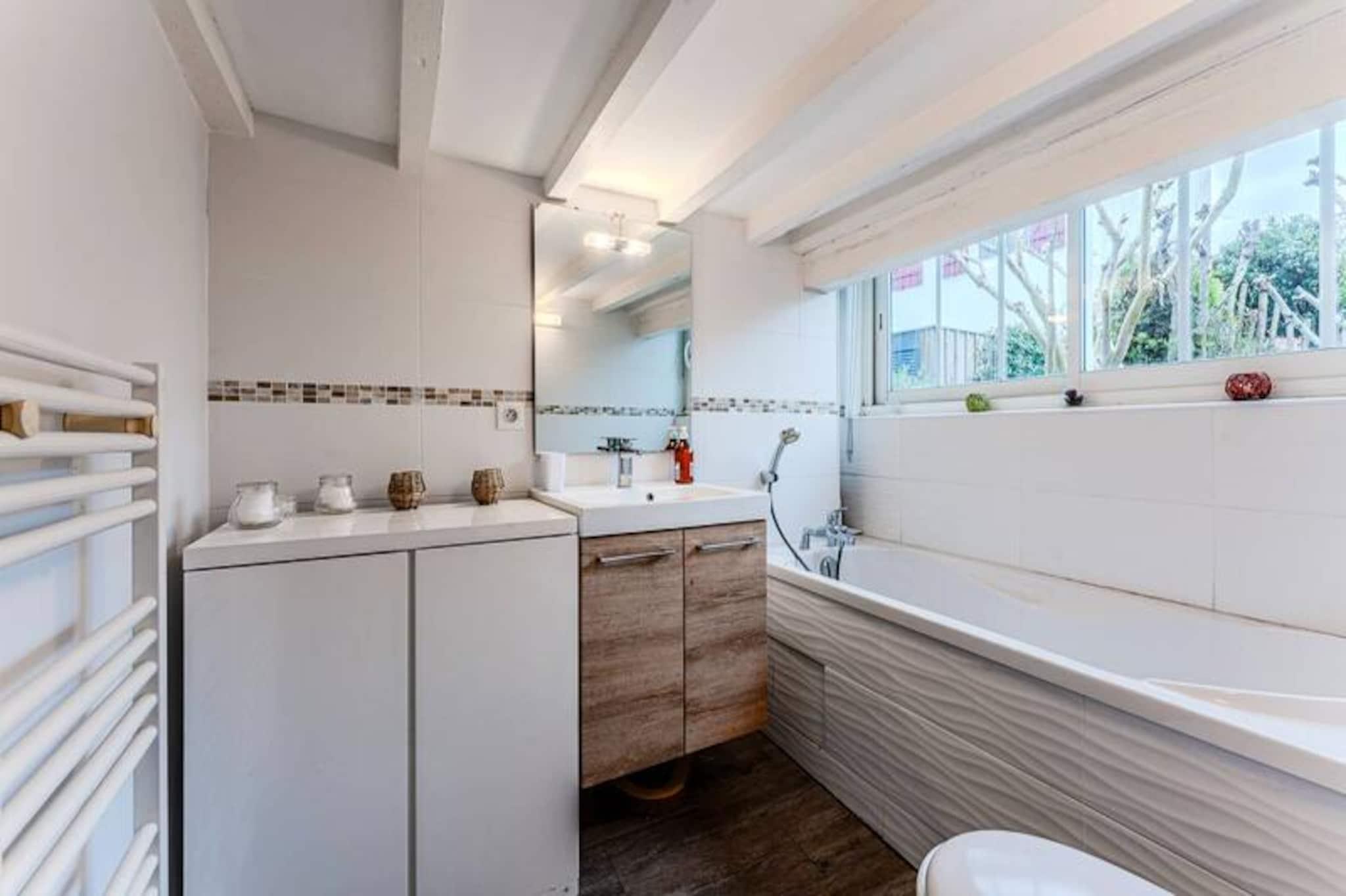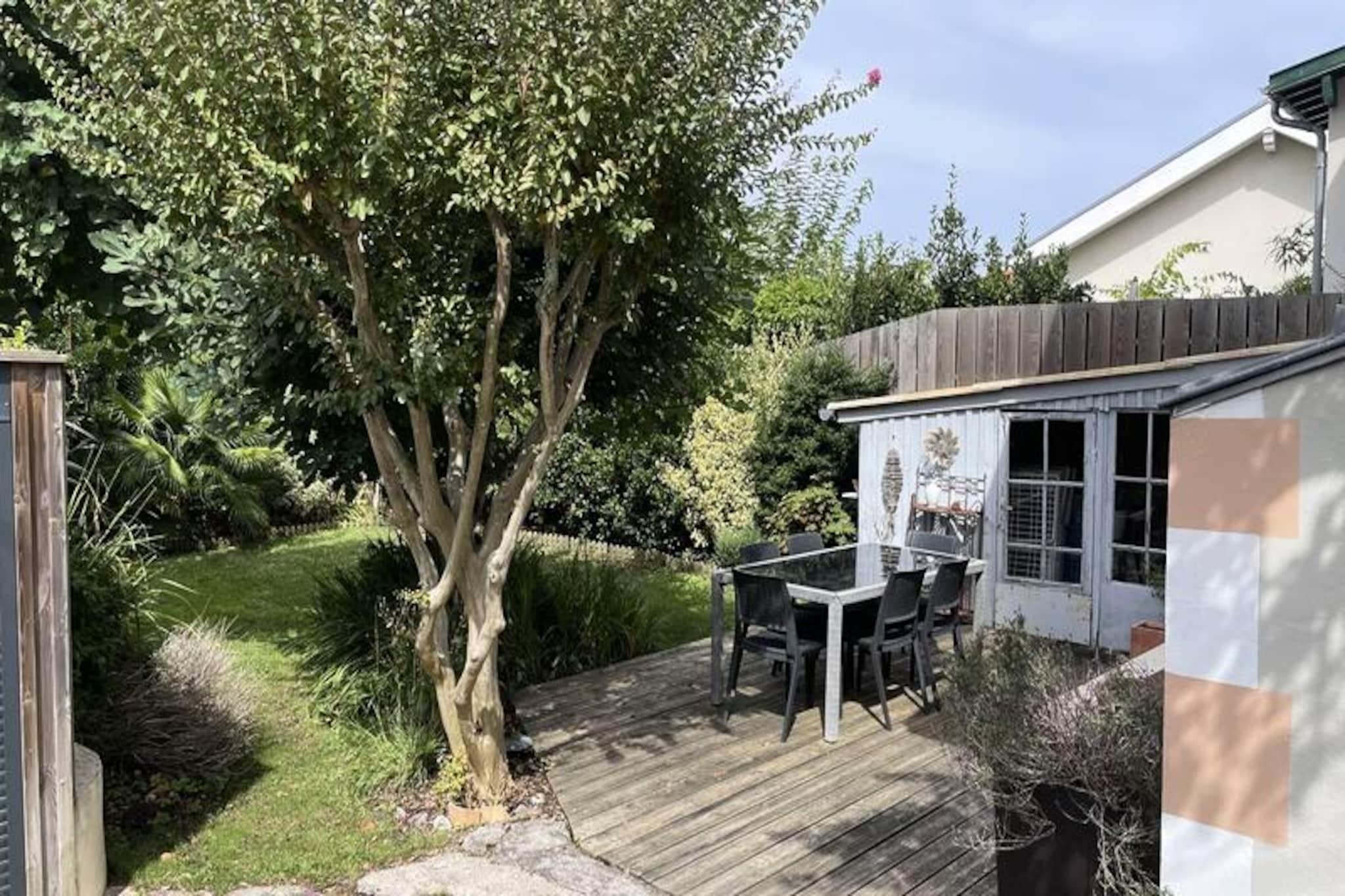 In the heart of Arcachon’s Autumn Town, just moments from the vibrant L'Aiguillon district and the sandy shores, this delightful three-level home offers a serene retreat for up to six guests. Tucked away on a quiet one-way street, the property exudes charm with its antique parquet floors and traditional architecture, creating an atmosphere of timeless elegance and comfort. Whether you’re seeking a peaceful escape or an active seaside adventure, this house is perfectly positioned to deliver both. \n\nInside, the ground floor welcomes you with a bright west-facing living room overlooking the lush garden, a cozy dining area, and a fully equipped kitchen featuring modern appliances such as an induction hob, oven, and dishwasher. A glass-enclosed utility room provides direct access to the garden, while thoughtful touches like a storage closet and separate toilet enhance convenience. Upstairs, two inviting bedrooms with double beds and ample storage share a stylish shower room. On the garden level, accessible from outside, the master suite offers a private haven with a double bed and en-suite bathroom, perfect for unwinding after a day of exploration.\n\nStep outside to discover a tranquil terrace surrounded by greenery, ideal for al fresco dining or relaxing in the afternoon sun. The location is unbeatable, with local shops including a bakery and delicatessen just 250 meters away, the beach within a short 750-meter stroll, and Arcachon’s lively town center only 2 kilometers from your doorstep. Free street parking adds to the convenience, ensuring a stress-free stay.\n\nWhether you’re drawn to the nearby beaches, the charm of the L'Aiguillon district, or the vibrant local culture, this property invites you to experience the best of Arcachon in comfort and style. Create lasting memories in this idyllic coastal haven.