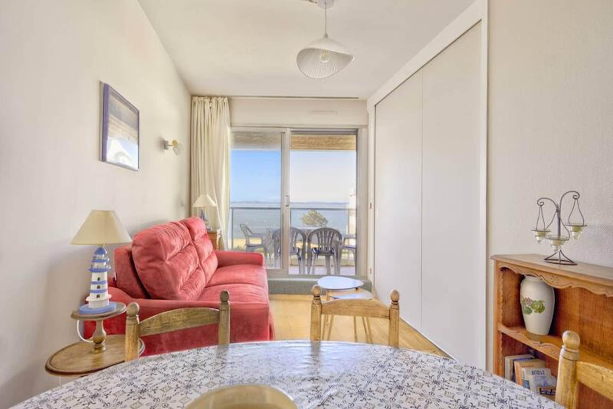 Imagine waking up to the gentle sound of waves and the fresh sea breeze filling your lungs. This charming one-bedroom apartment, located on the 3rd floor of a secure beachfront residence in Arcachon’s Pereire district, offers an unparalleled view of the bay. With direct and private access to the beach right at your doorstep, this is the perfect retreat for those seeking a serene coastal escape. The residence features an elevator and a caretaker, ensuring a comfortable and worry-free stay. Inside, the apartment is thoughtfully designed to accommodate up to five guests. The entrance hallway leads to a separate toilet, a bathroom equipped with a washing machine, and a fully functional kitchen complete with modern appliances such as a fridge-freezer, induction hob, microwave, mini-oven, dishwasher, and Nespresso machine. The bright and spacious living area is cleverly divided by a removable partition, creating a cozy bedroom with bunk beds and a trundle bed, as well as a living/dining room with a sofa bed. Step out onto the 10 m² north-facing balcony, furnished for outdoor dining or relaxation, and take in the breathtaking views of the bay. Conveniently located, the apartment is just 850 meters from local shops, including a Carrefour Market and pharmacy, 1.5 kilometers from Arcachon town center, and 2.5 kilometers from the lively Moulleau district. Whether you’re strolling along the sandy shores, exploring the vibrant local markets, or simply unwinding on the balcony, this apartment offers the perfect blend of comfort and location for an unforgettable seaside getaway. Departure cleaning is included, and linens can be rented for added convenience. Pets are not allowed, ensuring a peaceful and allergy-friendly environment. Treat yourself to the beauty and tranquility of Arcachon Bay, where every moment feels like a postcard come to life.