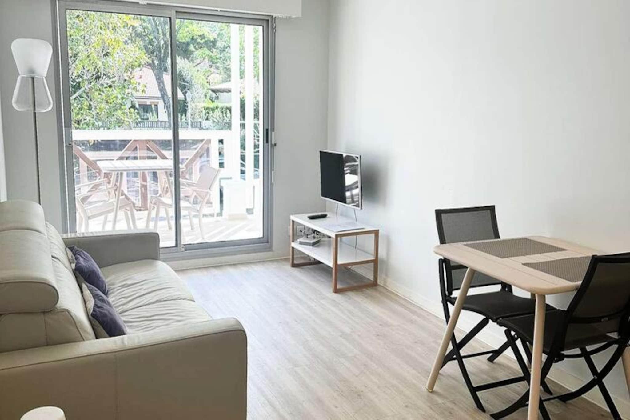 In the heart of the prestigious Joigny district of Arcachon, this delightful apartment offers a serene coastal escape just 300 meters from the golden sands of the beach. Bathed in sunlight, the property is perfect for couples or small families seeking a blend of comfort and convenience in one of France’s most charming seaside towns. Imagine waking up to the gentle sea breeze, stepping onto your private terrace, and enjoying a leisurely breakfast surrounded by the vibrant ambiance of Arcachon. The apartment’s contemporary design and thoughtful amenities ensure a relaxing stay. \n\nLocated on the first floor with elevator access, the apartment accommodates up to four guests. The bright south-facing living room features a dining area, a television, and a comfortable sofa bed, while the bedroom offers direct access to the terrace and is furnished with a cozy double bed. The fully equipped kitchen includes modern appliances such as a refrigerator, microwave, induction hob, and dishwasher, making it easy to prepare meals with fresh local ingredients. A separate toilet and a shower room with a washing machine add to the convenience, while the private parking space ensures stress-free arrivals and departures.\n\nJust steps away, the vibrant beach invites you to unwind under the sun or explore the scenic coastline. The nearby district is dotted with charming cafés, restaurants, and boutiques, offering a taste of Arcachon’s unique blend of elegance and laid-back charm. Whether you’re strolling along the promenade, cycling through pine forests, or discovering the iconic Dune du Pilat, this apartment places you at the heart of it all.\n\nWith its ideal location, stylish decor, and thoughtful amenities, this property is the perfect base for creating unforgettable seaside memories in Arcachon. Let the beauty of the Atlantic coast inspire your next getaway.