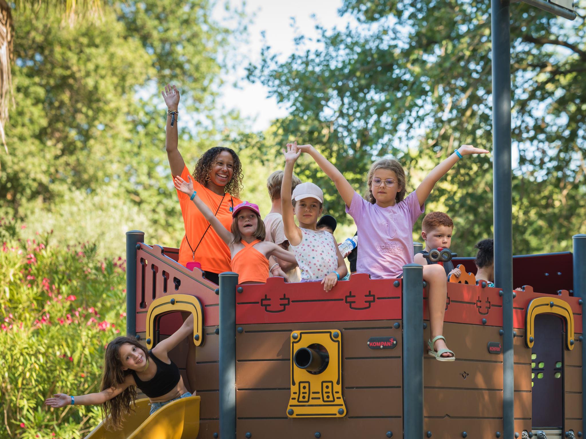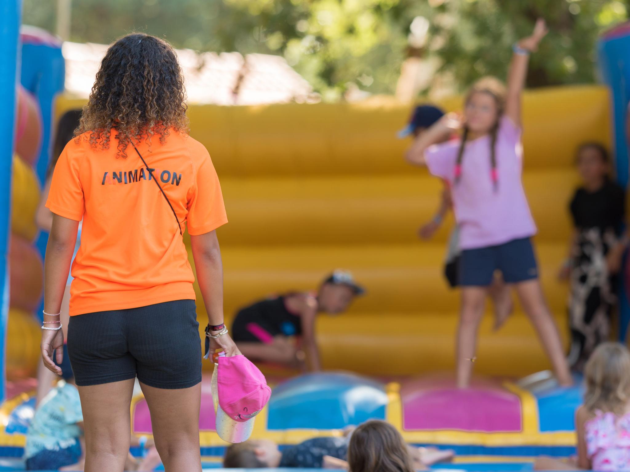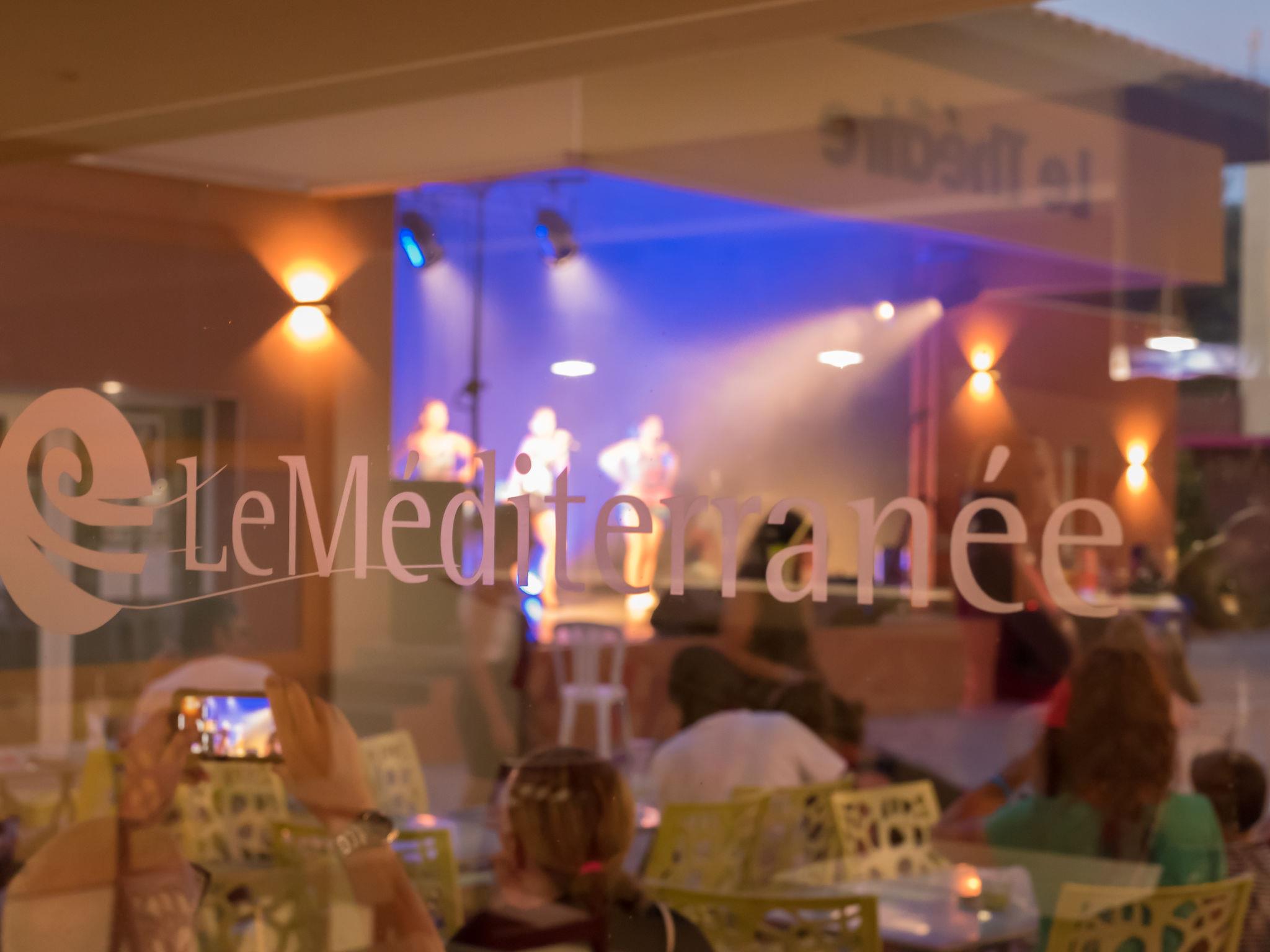 Child friendly resort "Le Mediterranée". 150 apartments in the residence. 3.3 km from the centre of Argelès-sur-Mer, 8 km from the centre of Saint Cyprien, 24 km from the centre of Perpignan, 2 km from the sea, 2 km from the beach. For shared use: property 55'000 m2, plants and trees, swimming pool (480 m2, depth 150 - 180 cm, seasonal availability: 24.Apr. - 20.Sep.) with internal staircase. Children's pool, slide, table tennis, boccia, terrace, children's playground. In the complex: reception, restaurant, bar, bistro, shopping facilities, washing machine, tumble dryer (for shared use, extra). Bread roll service. Parking. Shop 3.3 km, bus stop "Mairie/Hotel de ville-Argelès" 3 km, sandy beach 2 km. Golf course (9 hole) 15 km. Please note: car-free holiday complex. Entertainment. Childminding in the season. The owner does not accept any groups. Loading and unloading of baggage is possible at the holiday house. The photograph shows a typical example. The holiday properties may differ in living space, floorplan, equipment and furnishing.