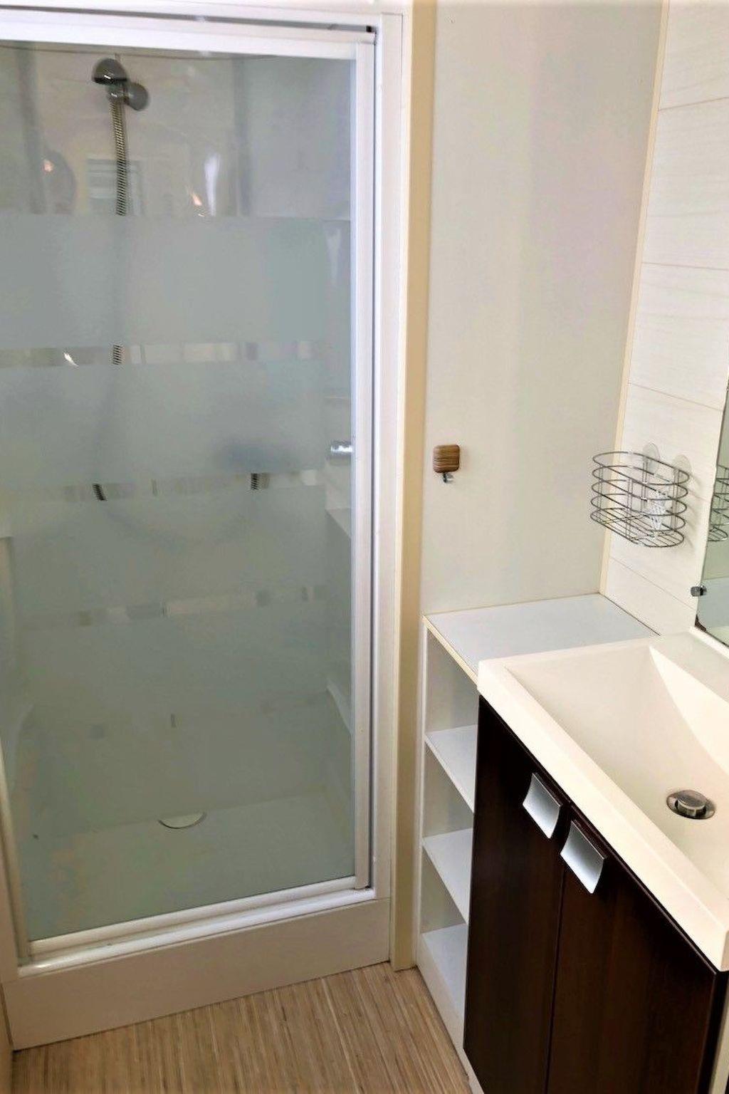 Mobilehome Argeles sur Mer 6P Mobilehome Argeles sur Mer 3 bedrooms: Our Chalets with large covered veranda are centrally located on the medium-sized cozy family campsite “de Pujol”. The chalets have three bedrooms, a living room with open kitchen and of course a private bathroom with toilet, shower and sink All accommodations have a standard coffee machine, kettle and microwave All necessary kitchen equipment, such as: cutlery, coffeemaker, pans, plates and glasses are available for 6 people. On the veranda you will find a dining table with 6 chairs and a lovely lounge set where you can enjoy until late in the evening with a delicious glass of French wine. The Greenchalets with covered porch are in spacious places and there is ample space to park your car right next to your accommodation. The chalets are equipped with single duvets and pillows. Bed linen and towels must be brought by yourself or pre-booked with Greenchalets.