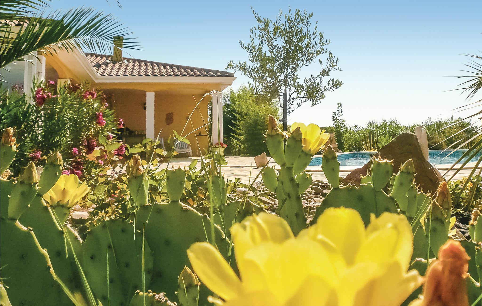 Dieses sehr schöne Ferienhaus mit sichtgeschütztem Pool und geschlossenem Garten steht in Argeliers, einem gemütlichen Dorf, das vom Canal du Midi berührt wird. 35 Minuten trennen diese von Weinfeldern gesäumte Villa von Valras und Gruissan mit ihren herrlichen, feinen Sandstränden, und 16 km entfernt wartet die Stadt Narbonne auf Ihren Besuch. Über einen kleinen Sandweg erreichen Sie die Ufer des Kanals. Der Ort ist sehr ruhig und liegt eingebettet in eine geschützte Natur. Sie dürfen sich auf eine sehr komfortable Villa freuen. Über Fenstertüren in der Küche gelangen Sie auf Ihre Terrasse und zum angrenzenden Pool mit römischer Treppe und Unterwasserbeleuchtung für abends. Die angenehm schattigen Treidelpfade entlang des Canal du Midi eignen sich gut für Fahrradtouren und zum Wandern. Seit 1997 gehören der Kanal und seine vielen Brücken und Schleusen zum UNESCO-Welterbe. Eine schöne Zeite verbringen Sie ebenfalls am Badesee Lac de Jouarres. Sportliche Urlauber können Canyoning, Höhlenkunde und Klettern betreiben, ab Roquebrun eine Kanutour auf dem Orb unternehmen oder im Fluss angeln. Nach Béziers sind es etwa 30 Minuten, und 47 km entfernt liegt Carcassonne mit seiner einzigartigen Festungsanlage aus dem Mittelalter: ein absolutes Highlight. In der Umgebung von Argeliers liegen viele bezaubernde Dörfer, wie zum Beispiel Bize-Minervois, Aigne, Minerve, Saint-Chinian, Olargues, Gruissan und Lagrasse. Cap d'Agde 1 Stunde, Montpellier 1 Stunde und 20 Minuten. Weiter entfernt erwarten Sie der Regionale Naturpark Haut-Languedoc, das Orb- und das Jaur-Tal im Hérault, die Schluchten von Héric und von Colombières, das Caroux- und das Espinouse-Massiv und der Wald von Somail. Der Duft der Weingärten, wenn diese im Juni blühen, erinnert einen an Heckenkirschen.