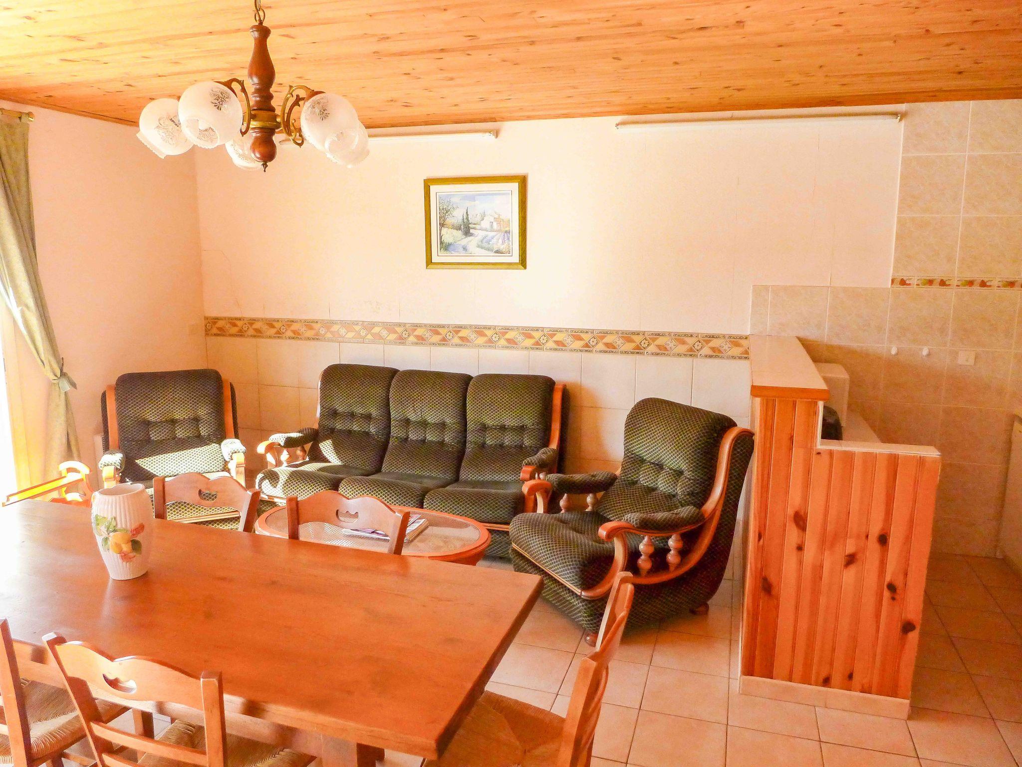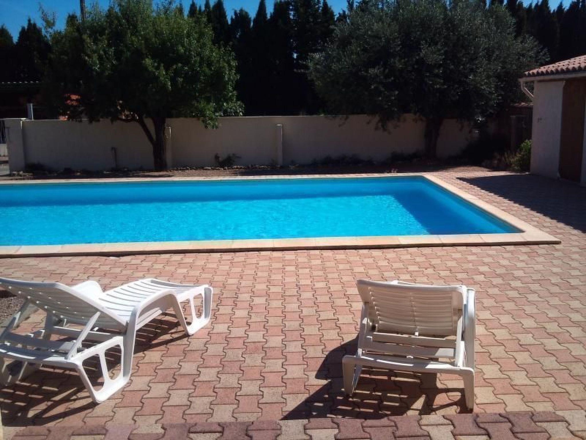 The 95 m² single-storey house sleeps 6 comfortably. The 1000 m² garden features a large private swimming pool (12m x 6m), secured by an alarm. It is open from late May to late September, and has 2 tiled terraces (one in front of the house, protected by an awning, and another to the side, shaded by 2 plane mulberry trees). The solarium, also tiled, runs around the pool.