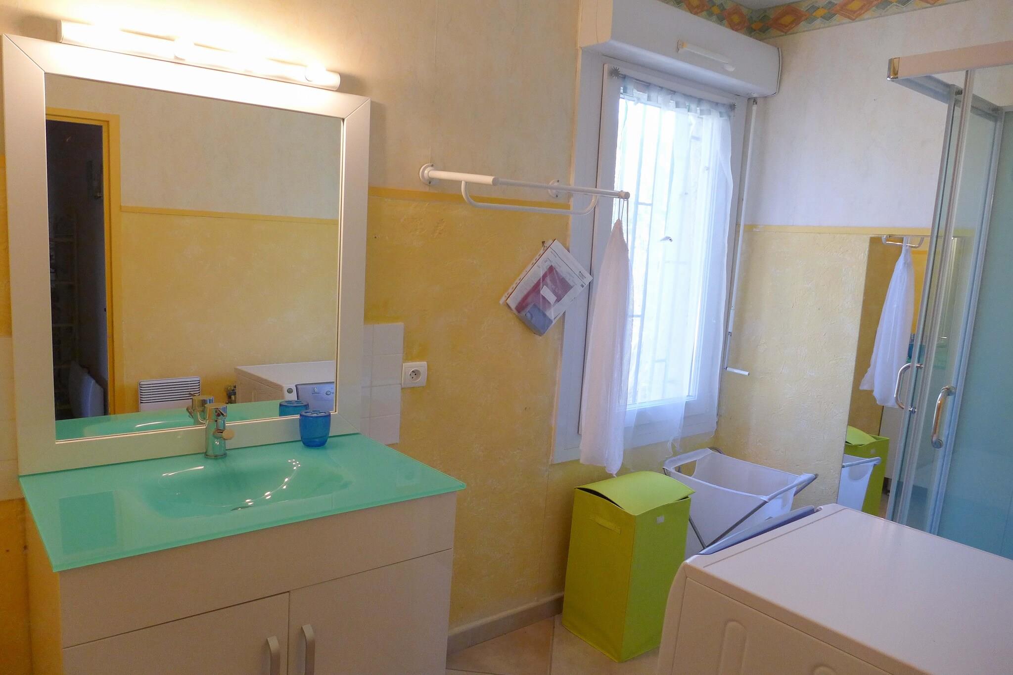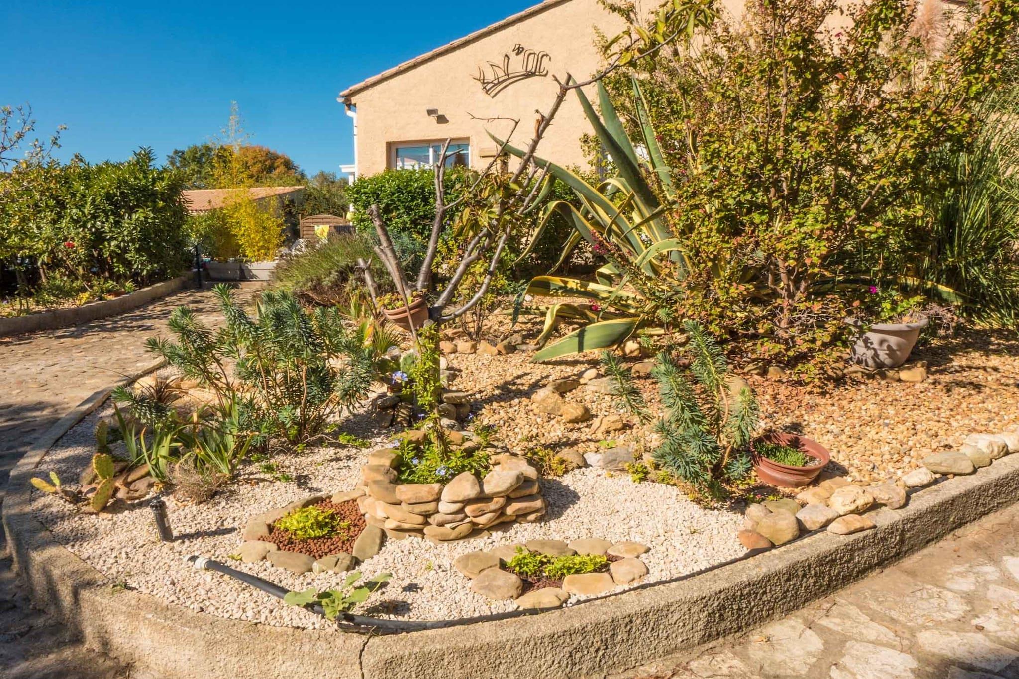 The 3-bedroom holiday home in Argeliers and is ideal for families and small group of friends. The home is situated in a quiet location and has tasteful interiors. There is a built-in barbecue for some culinary fun, beautiful garden and spacious terrace for your leisurely nights. You are 1 km from the Canal du Midi , where you can hike and bike along the shore. You can shop for groceries 300 m away. The lake is 16 km, sandy beaches of Gruissan is 34 km and golf course is 38 km away. The home is situated on the ground floor in a quiet location and has tasteful interiors. The home has a living room with TV and DVD player, well equipped kitchen, bathrooms with shower, every required sanitary facilities and spacious veranda. The child-friendly holiday home offers many facilities such as stylish garden furniture, spacious parking area and high chair. The holiday home allows you to bring 1 pet along. Carcassonne airport is the nearest airport at 138.8 km far away.
