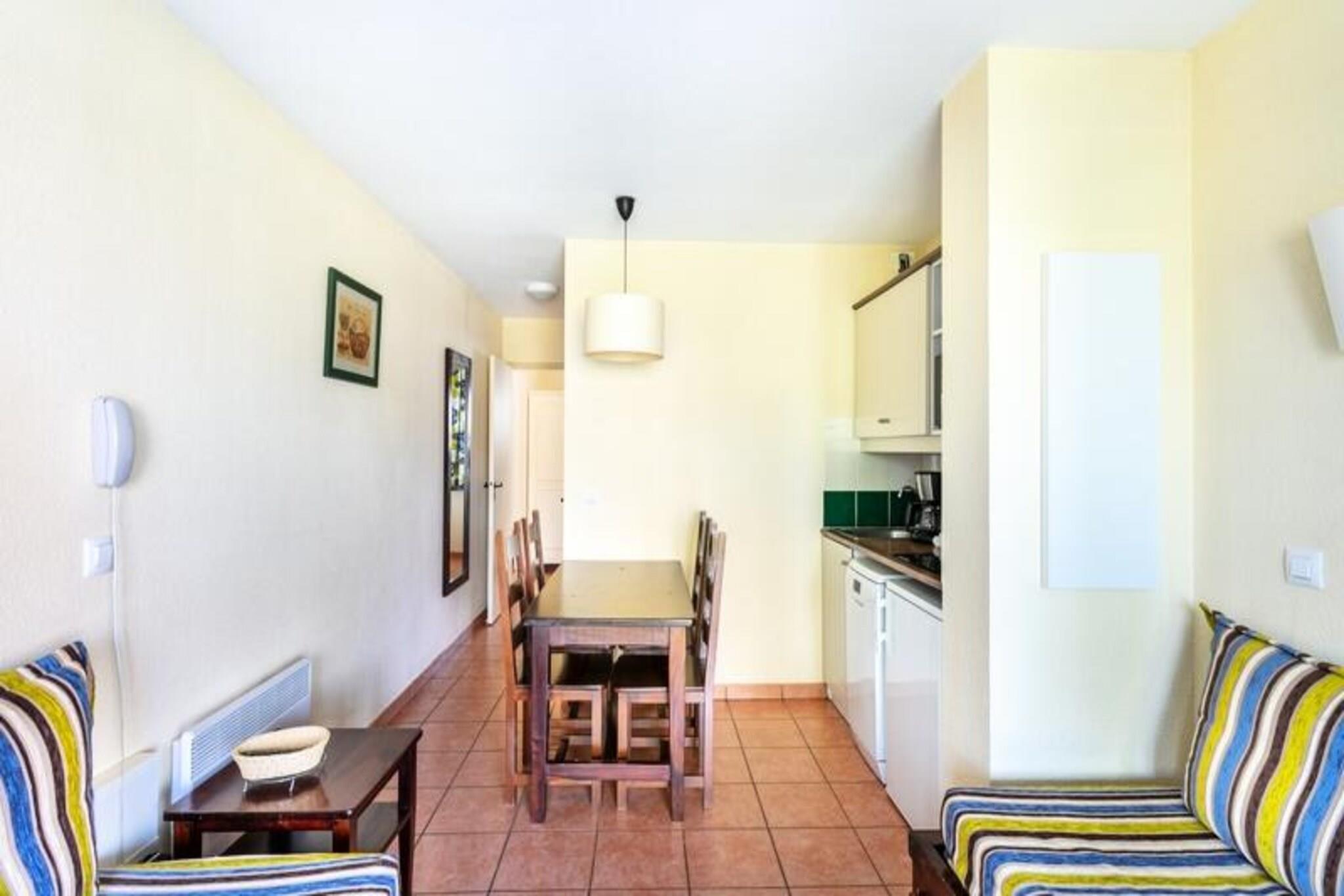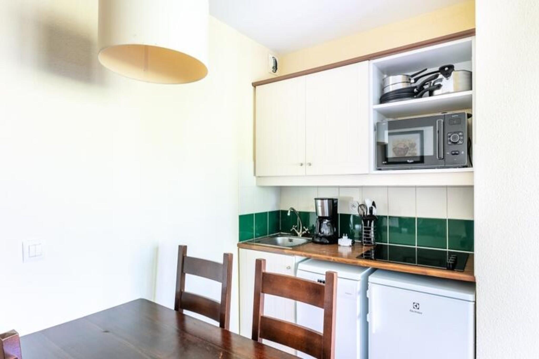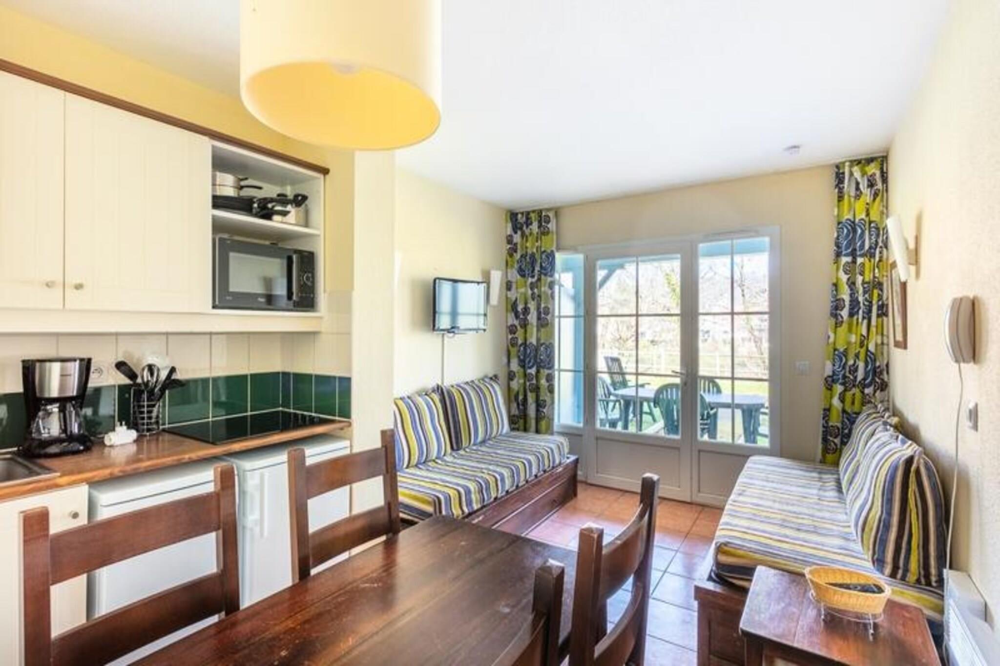 This charming apartment offers a peaceful retreat with a small garden and river views, perfect for families or friends. It accommodates up to four people, with two sofa beds and a trundle bed, ideal for a comfortable stay. Pets are welcome for an additional fee, making it a great option for animal lovers. The apartment also offers easy access to the residence's heated outdoor swimming pool, open from April to September, allowing guests to unwind and enjoy the sun. Please note that a mandatory end-of-stay cleaning service is required. The location is ideal for outdoor enthusiasts, with many activities just a short distance away. Explore the nearby town of Argentat, famous for its picturesque beauty, or enjoy a variety of water-based activities at the nearby aqua-recreational center. The residence is also close to an equestrian center, a golf course, and a children's play area, making it perfect for both relaxation and adventure. Whether you want to fish, canoe, or simply explore the charming village, there is something for everyone. Inside, the apartment features an American-style kitchen and a comfortable living area with a dining table. The bathroom is in good condition and comes with a private WC, ensuring convenience for all guests. Additional amenities include the option to request Wi-Fi access (for an extra fee), and bed linen (also available upon request). This accommodation offers all the essentials for a great vacation, with the added benefit of proximity to local attractions.
