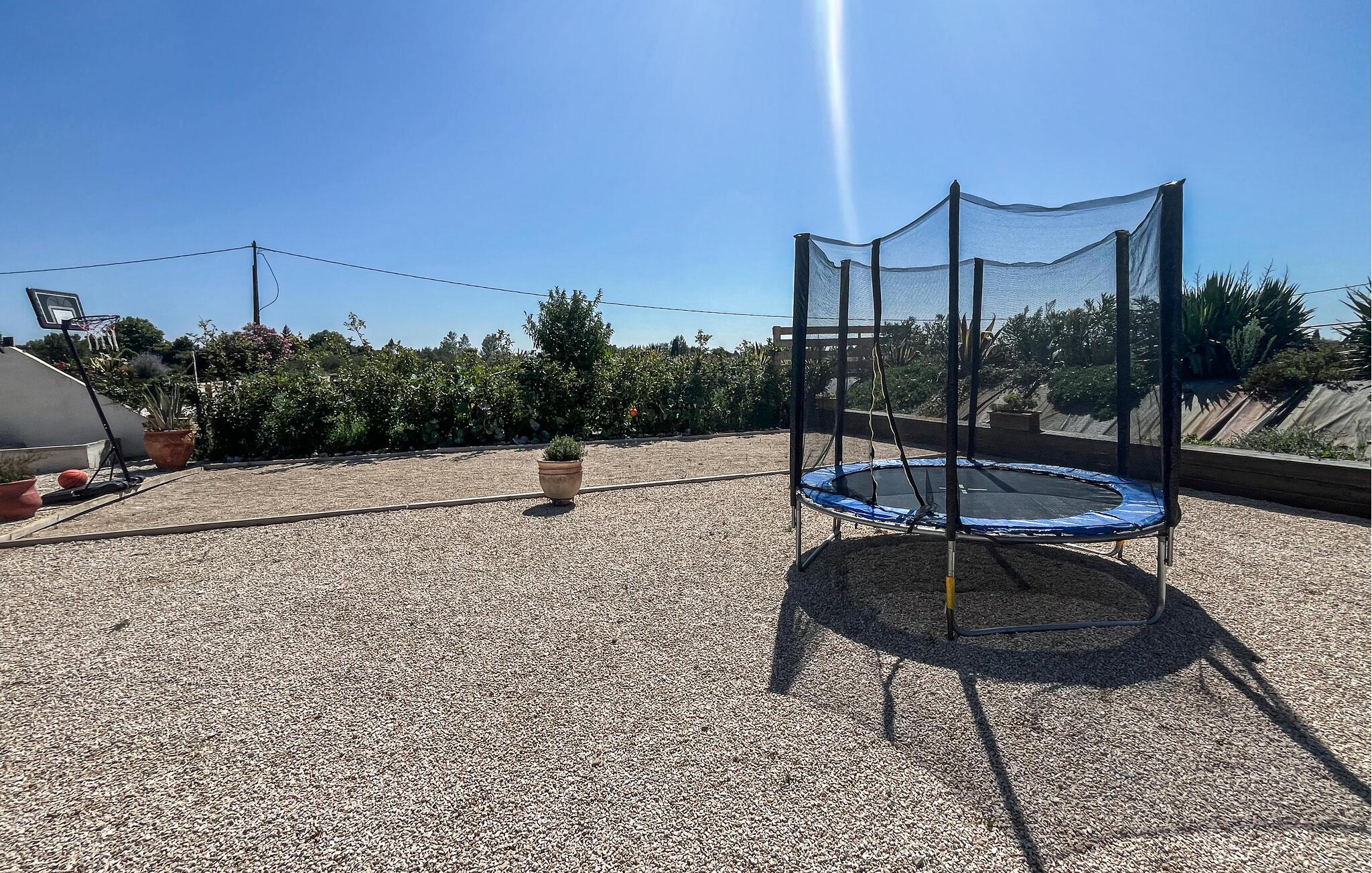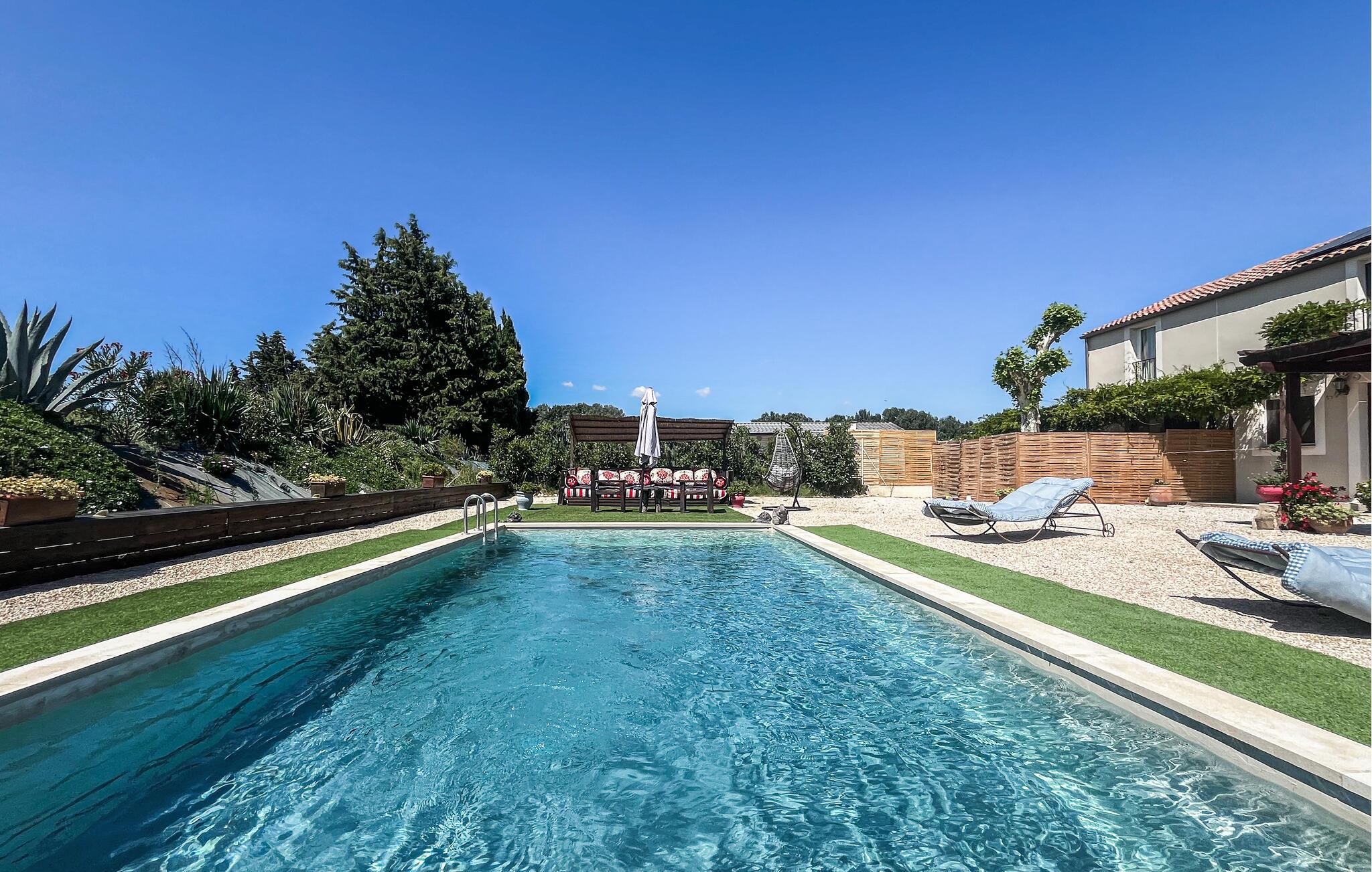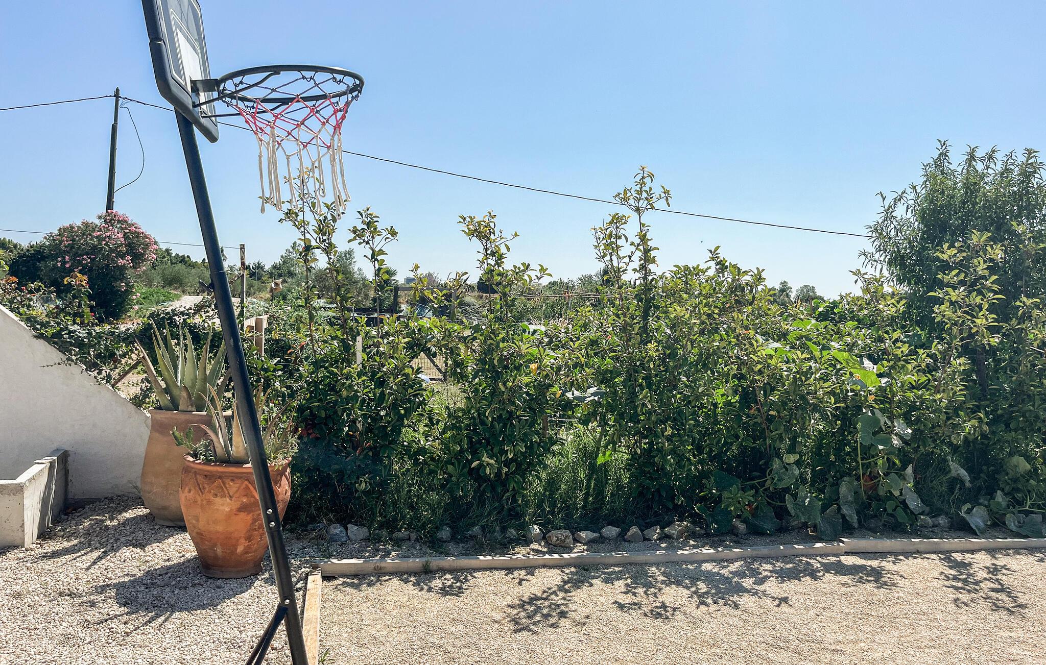 Im geschützten Außenbereich können Sie das wohlwollende Klima Südfrankreichs in vollen Zügen genießen. Ziehen Sie morgens gemächlich Ihre Bahnen im herrlichen Pool, genießen Sie Ihr Frühstück im Schatten, spielen Sie Boule oder Basketball, während sich die Kinder auf dem Trampolin austoben, und zelebrieren Sie die lauen Sommernächte am Grill.