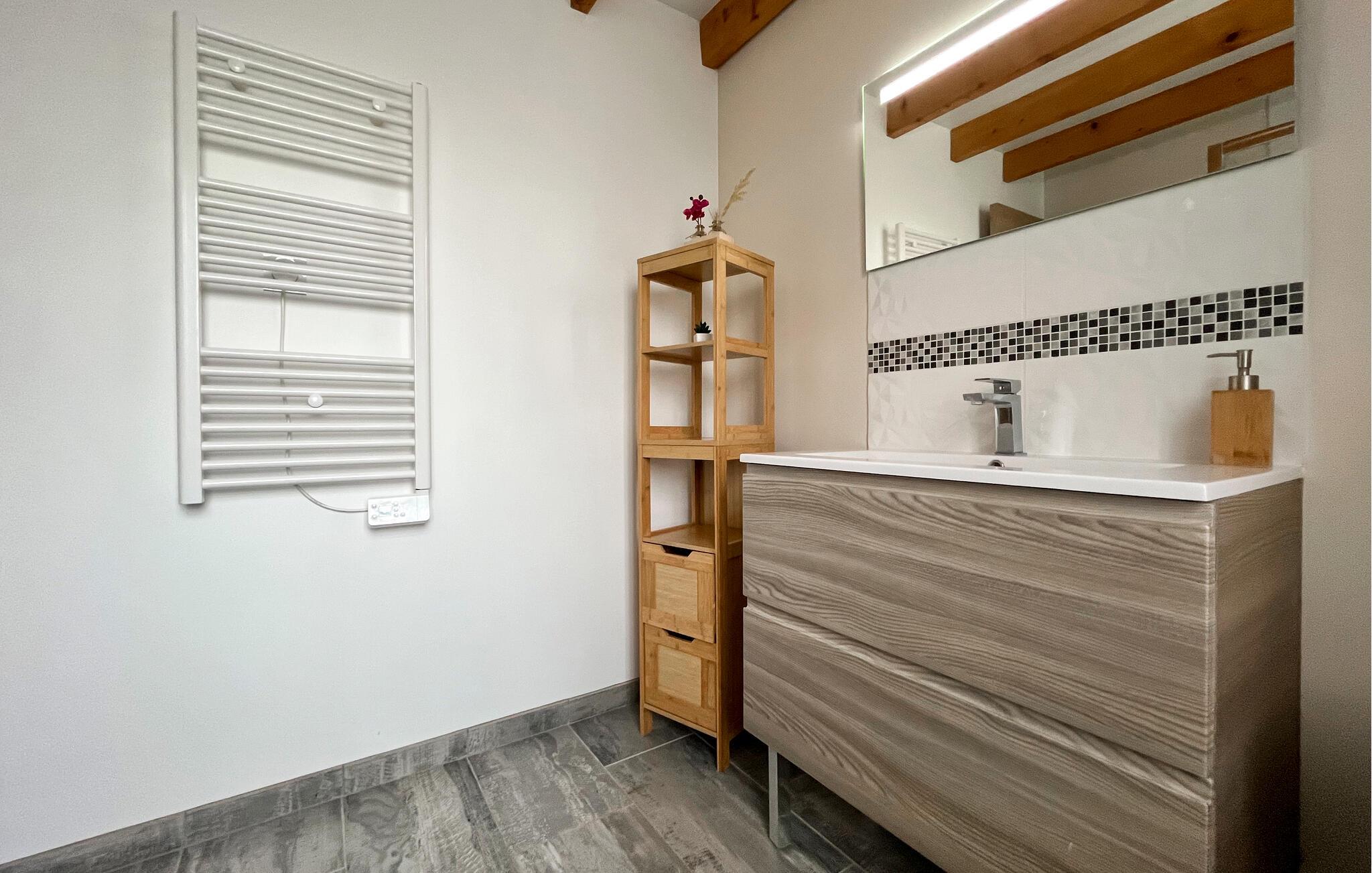 Dieses Haus bietet Ihnen alles, was Sie für einen sorgenfreien Urlaub benötigen. Genießen Sie Ihren Aufenthalt in einem modernen Ambiente, das durch einzelne Holzelemente und eine dekorative Wandgestaltung eine persönliche Note erhält. Egal ob Sie Ihre Lieblingsmusik hören oder ein kleines Kochduell zu zweit veranstalten, hier finden Sie schnell in Ihren Urlaubsmodus.