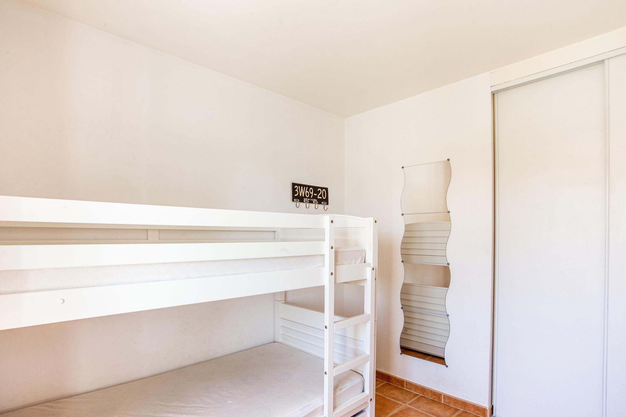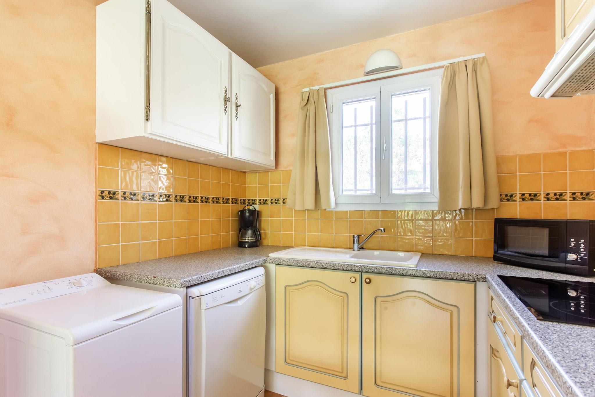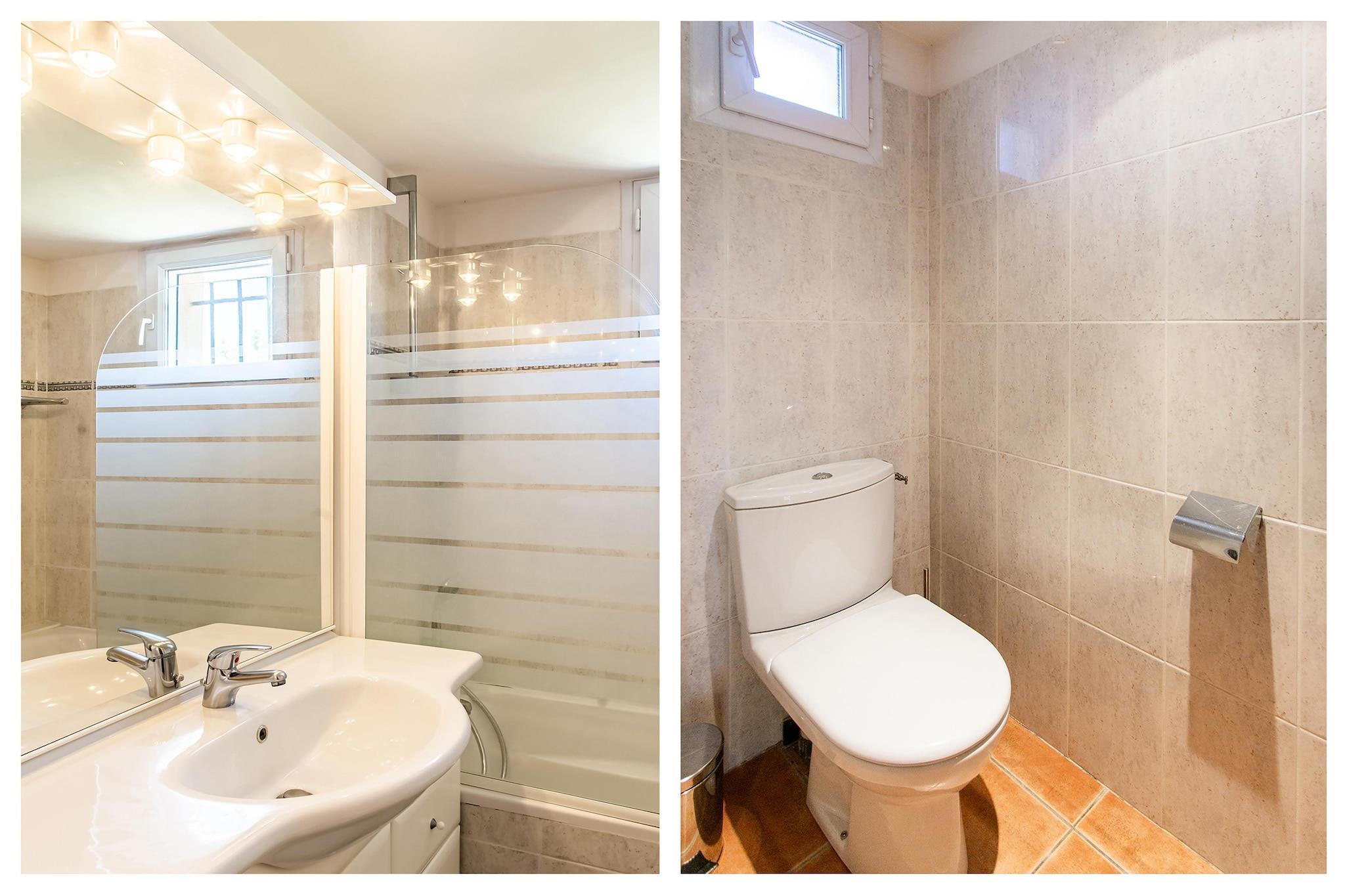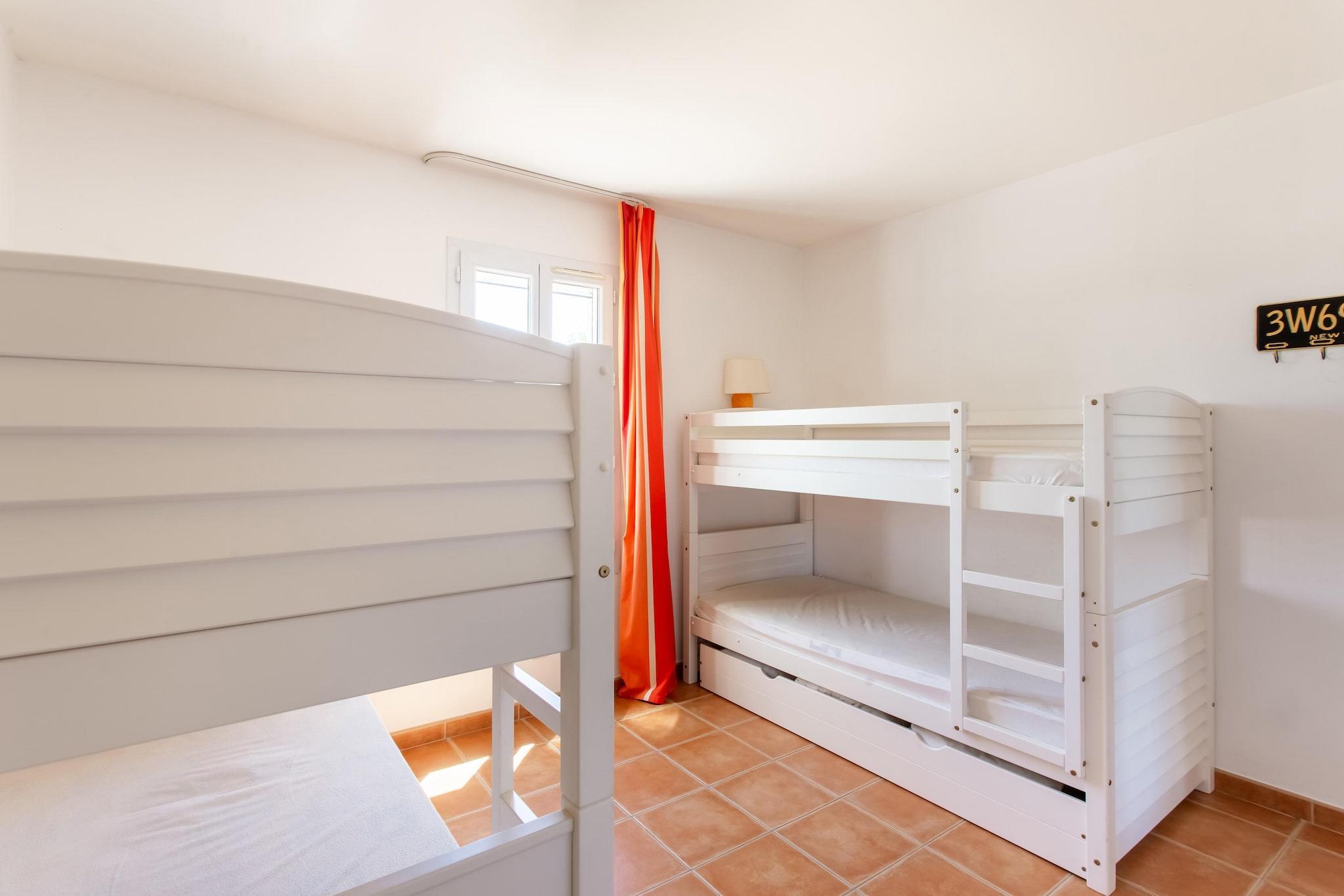Ground floor: (hallway(toilet), open kitchen(cooker, coffee machine, microwave, dishwasher, fridge, washing machine), Living/diningroom(TV(flatscreen), seating area)) On the 1st floor: (bedroom(double bed), bedroom(double bed, 2x bunk bed(90 x 200 cm)), bathroom(bathtub with shower, washbasin, toilet)) terrace(private), garden(private), garden furniture, sun loungers, parking, pond, swimming pool(shared with other guests, fenced, including separate children’s swimming pool (depth 50cm), opened from 1/2 May upto and including 1/2 Oct), tennis court(paid), boules court, play equipment