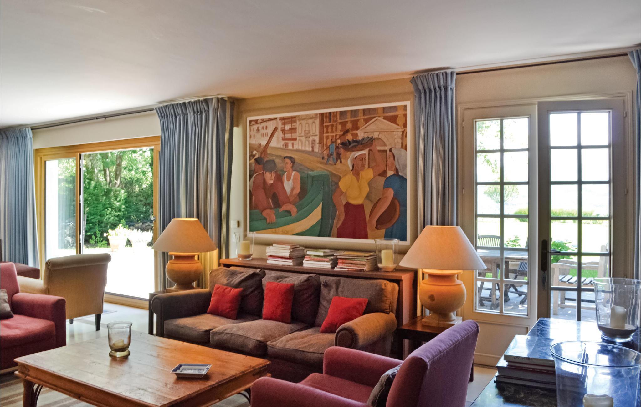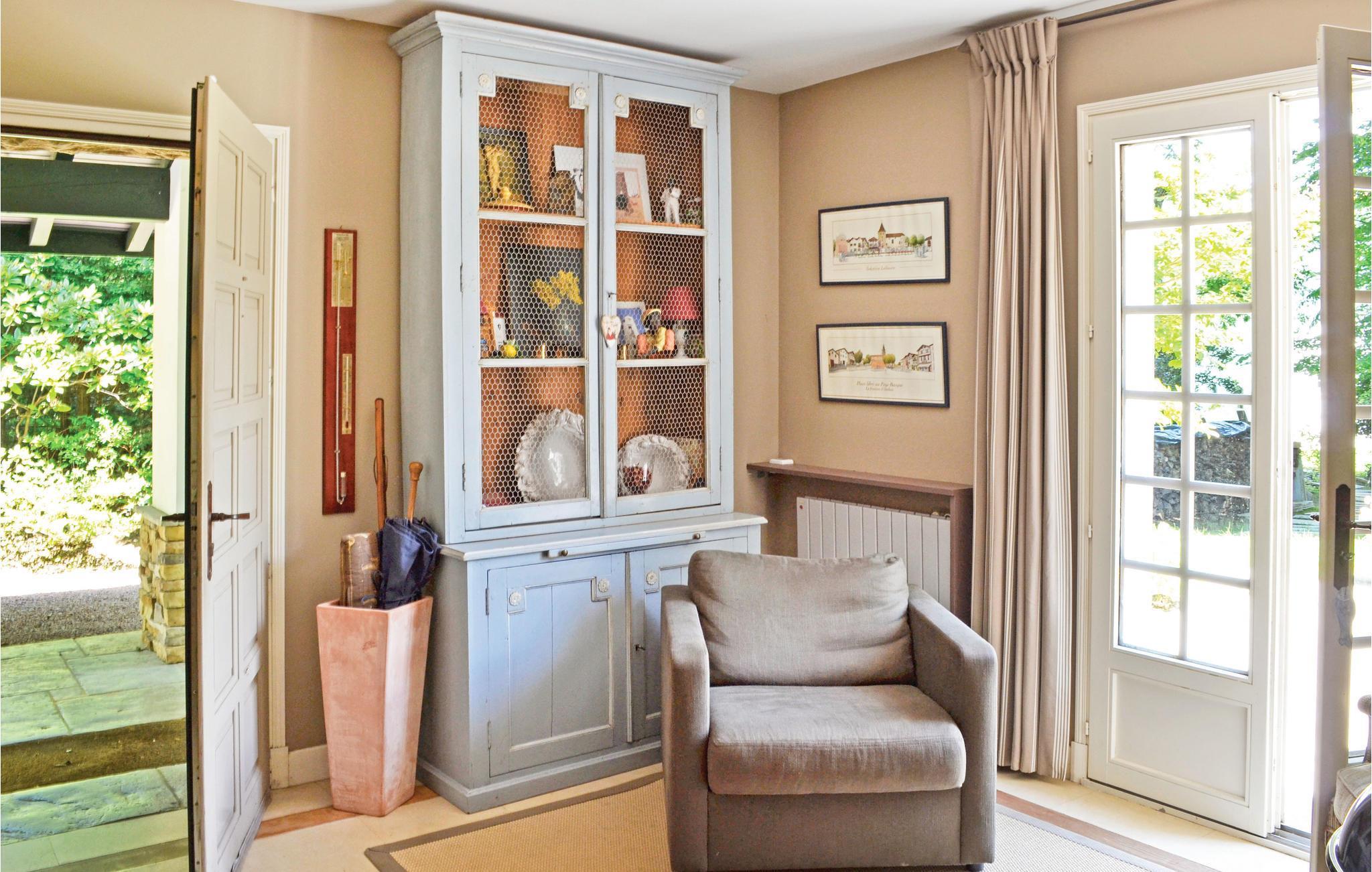 Das Ferienhaus verwöhnt seine Gäste mit einer atemberaubenden Aussicht auf den Pic de la Rhune beziehungsweise den höchsten Gipfel der Pyrenäen (902 m), auf den man mit einer Zahnradbahn gelangt. Von dort kann man einen traumhaften Blick auf die Atlantikküste und bis nach Spanien genießen. Durch die leicht abfallenden Felder um das Grundstück herum haben, Sie eine freie Sicht bis zu den Bergen. Nach Saint-Jean-de-Luz mit seinem herrlichen Strand sind es nur 5 km. Für extra Unterhaltung steht Ihnen ein Heimkino zur Verfügung.