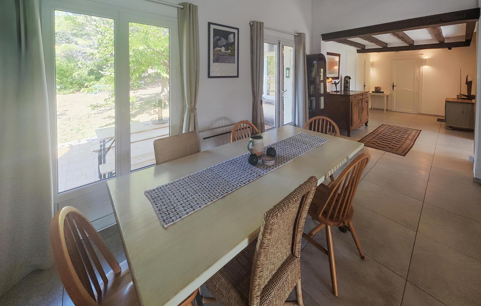 Das einladende Haus empfängt Sie in idyllischer Lage inmitten der pittoresken Landschaft des Languedoc. Freuen Sie sich auf gemütliche Räume mit aparten Deckenbalken und wohnlich-moderner Möblierung. Entspannen Sie hier in angenehmem Rahmen, genießen Sie gemeinsame Mahlzeiten am langen Esstisch und machen Sie es sich abends nach erlebnisreichen Tagen zusammen auf einladenden Sofas gemütlich.
