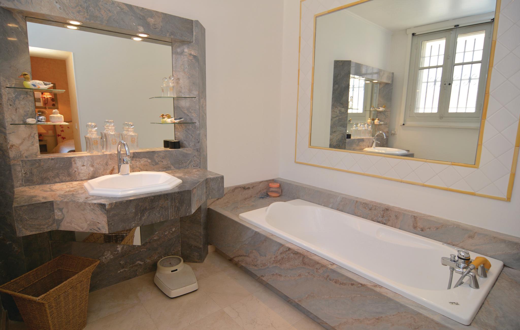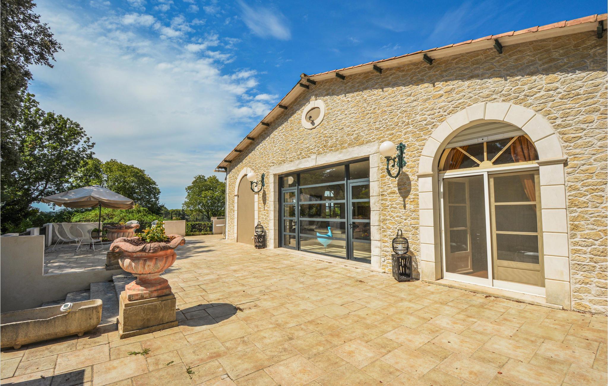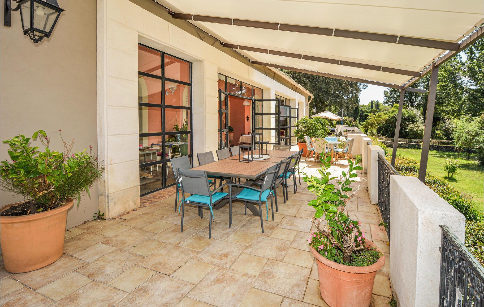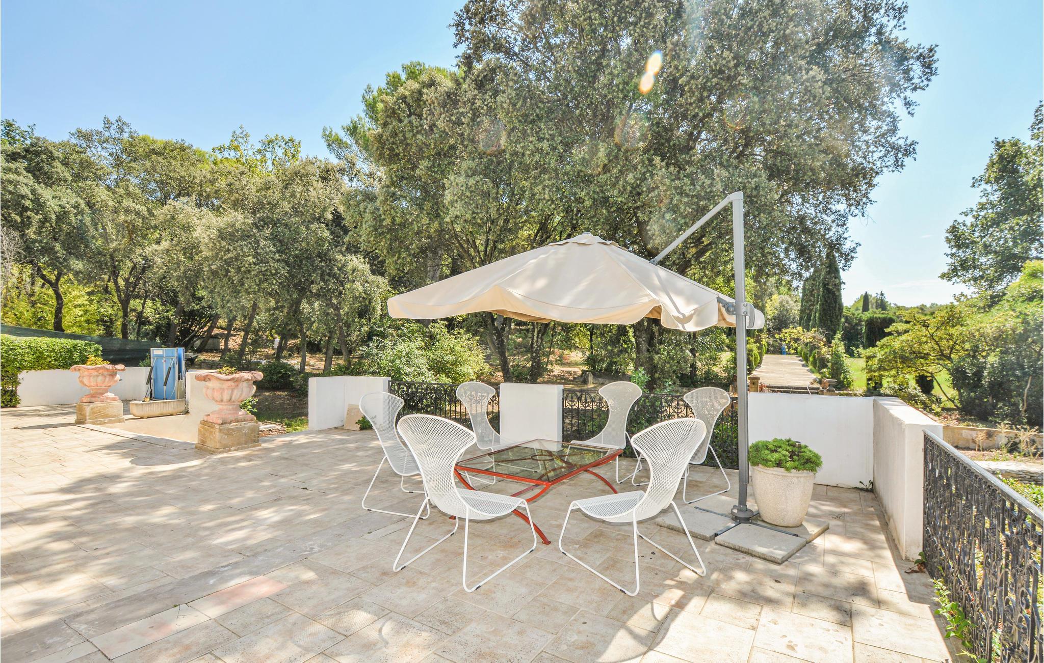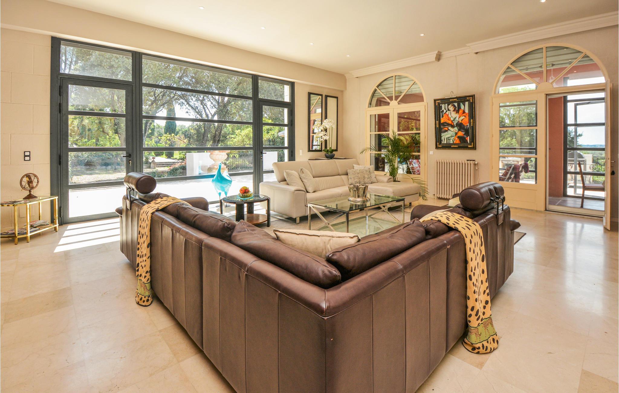Auf einem Grundstück von 1 ha empfängt Sie diese wunderschöne Villa mit einem gepflegten, 1.500 m² großen Garten, in dem sich neben einer Gartenlaube und Gartenmöbeln auch der von einer gefliesten Sonnenterrasse umrandete Pool befindet. Am Haus selber verläuft auch eine Terrasse, deren verglaster Teil als Veranda benutzt werden kann. Im Inneren sind die gediegenen Möbelstücke auf einander abgestimmt und sorgen somit für ein harmonisches Ambiente, das auch einen Hauch von Romantik versprüht. Zu jedem Schlafzimmer gehört ein eigenes Bad, hiervon einige aus einem schönen Marmor. An der Grenze zur Camargue mit ihren frei lebenden Herden von Pferden und Stieren genießt die Unterkunft eine schöne Lage.