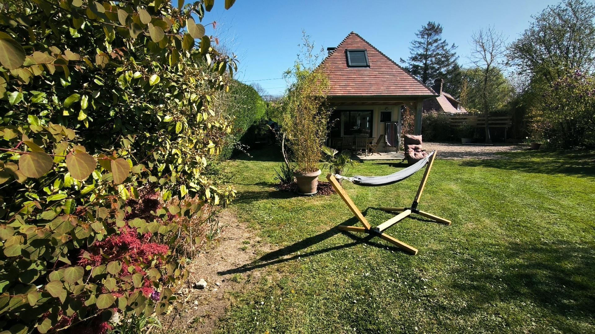 The charm continues outside, where each house has its own private, well-defined 300 m2 garden planted with trees, a covered terrace for enjoying meals al fresco, and individual parking. The entrance is shared by two houses, but each area remains well separated to ensure your peace and quiet.