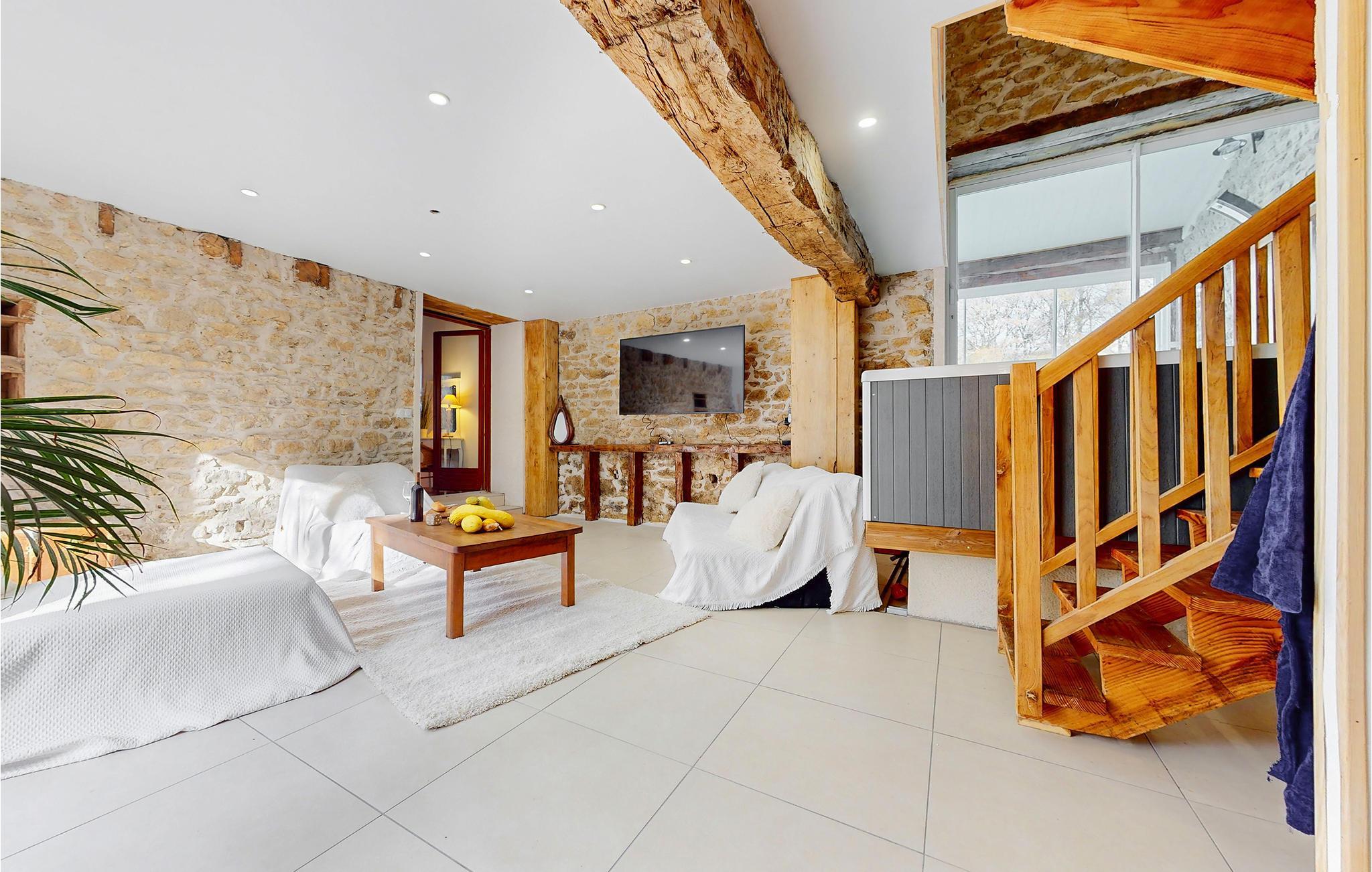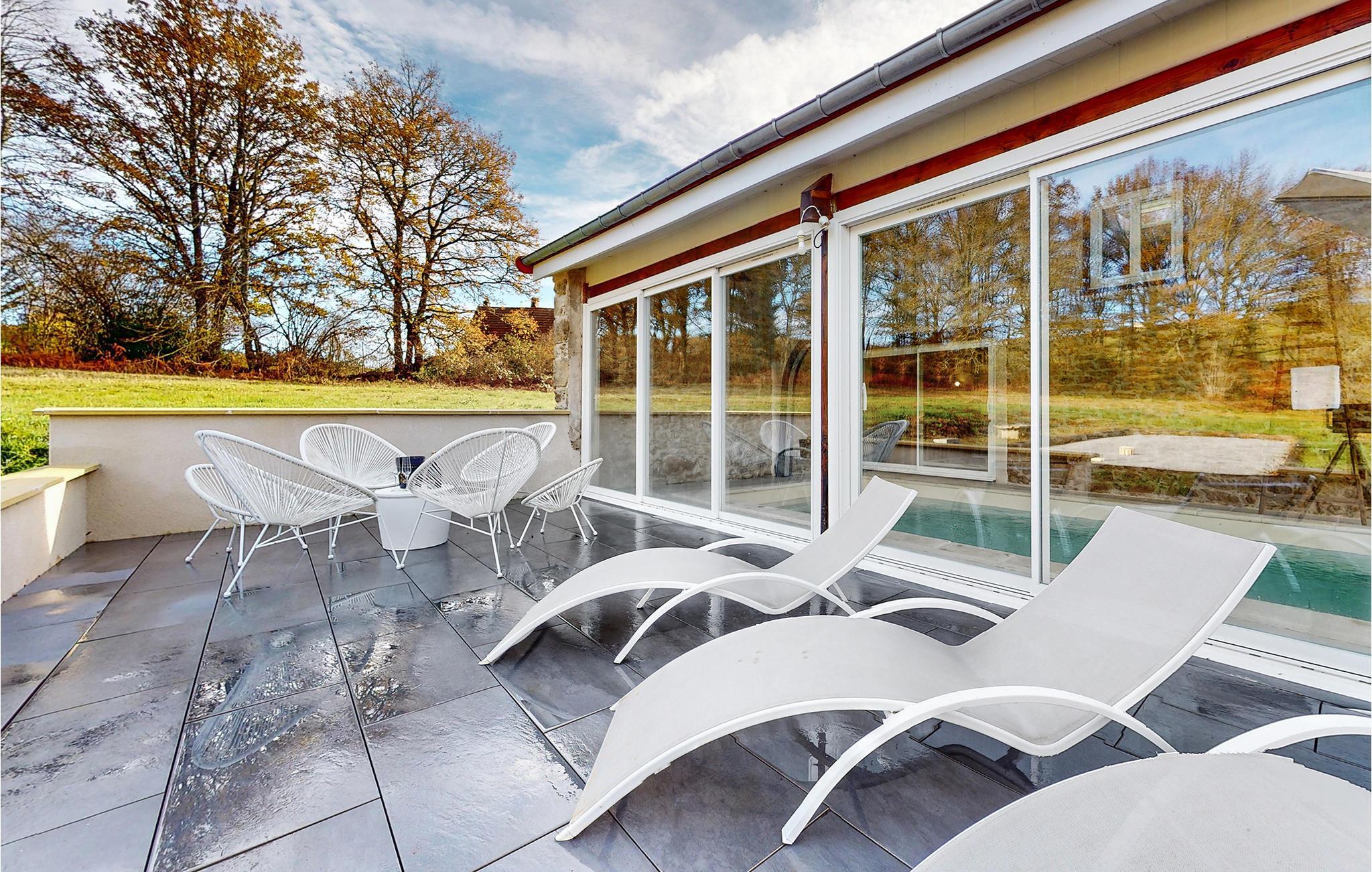 Sie wollen hohen Komfort und ein besonderes Wohnerlebnis? Sind Sie auch eine große Familie oder vielleicht mehrere Familien, die gemeinsam Urlaub machen? Dann ist dieses Landhaus mit Top-Ausstattung nahe einem kleinen See das Richtige für Sie. Eingebettet in eine schöne ländliche Umgebung wird Ihnen dieses riesiges Haus auf zwei Ebenen mit Außenpool, Innenpool, Whirlpool und Sauna einen tollen Urlaub bereiten. Das großflächige Haus besticht u.a. durch seine rustikalen Details wie Deckenbalken aus Naturholz und sichtbare Steinmauern und das Zusammenspiel von Holz und Weiß verleiht dem Haus etwas Besonderes. Die Hobbyköche können in der großen Küche zaubern, während andere es sich in einem der Wohnräume gemütlich machen. Sonnen Sie sich auf der Terrasse, an kühlen Tagen können Sie den Innenpool nutzen.
