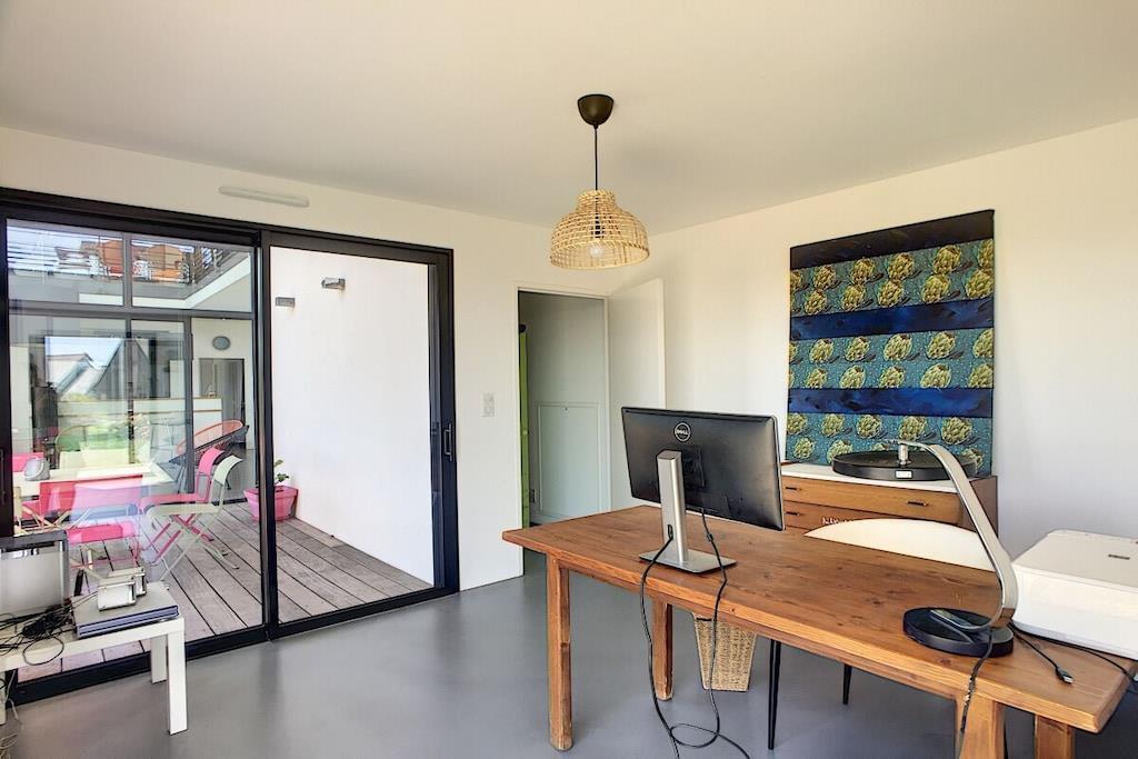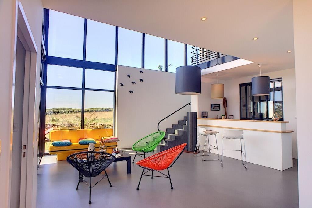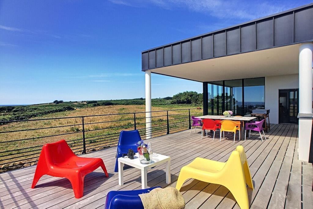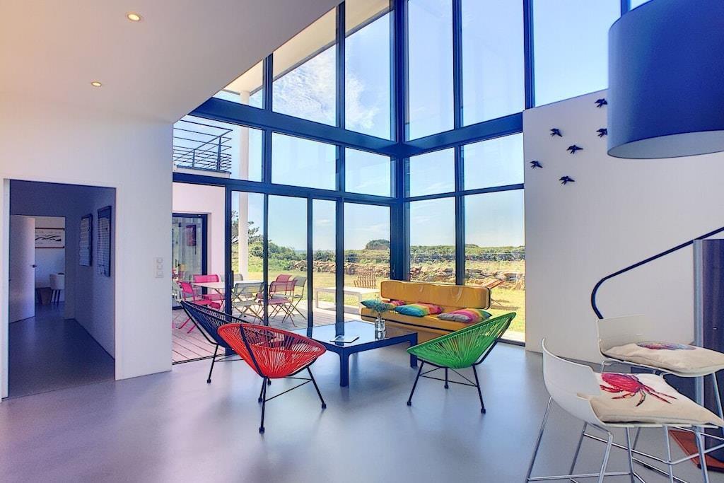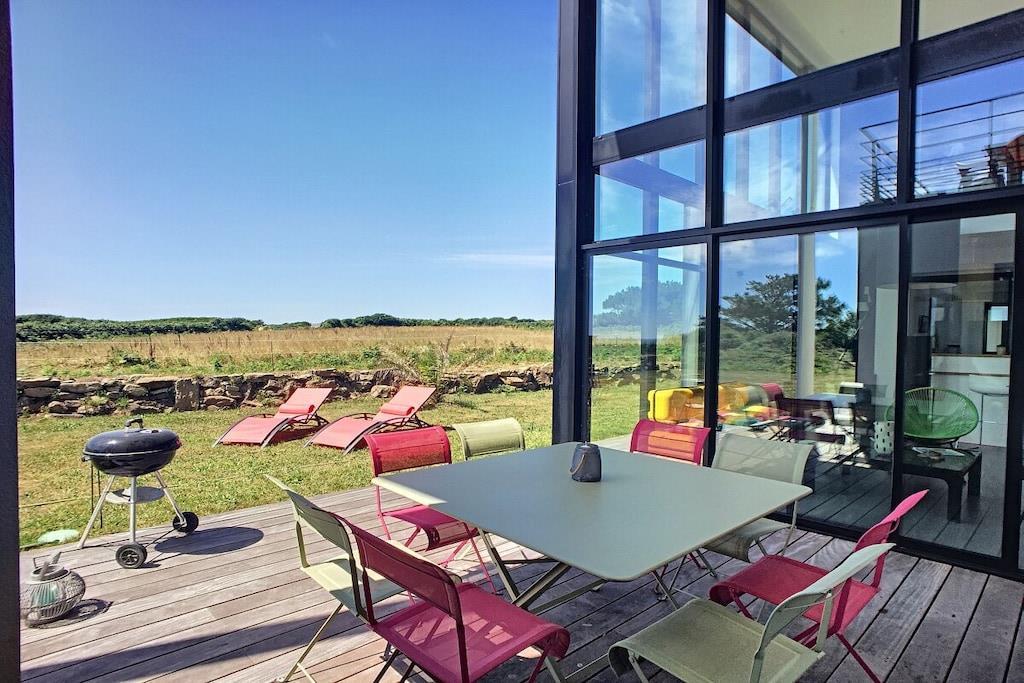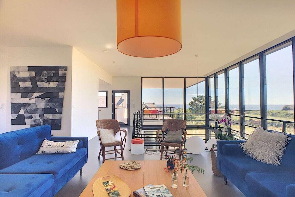 Discover a land rich in legends from this modern 3-bedroom villa in Audierne-Esquibien! Thanks to its expansive glass facade, "Villa Oxigène" opens to the horizon and offers exceptional panoramic views from its seaside location. In this comfortable ambiance, subtly created through the choice of materials and natural light, you'll feel as if you're barefoot, enjoying the tranquility of life. The outdoor terrace extends the living space towards the sea, another special advantage of this peaceful haven nestled amidst the wild heathland.