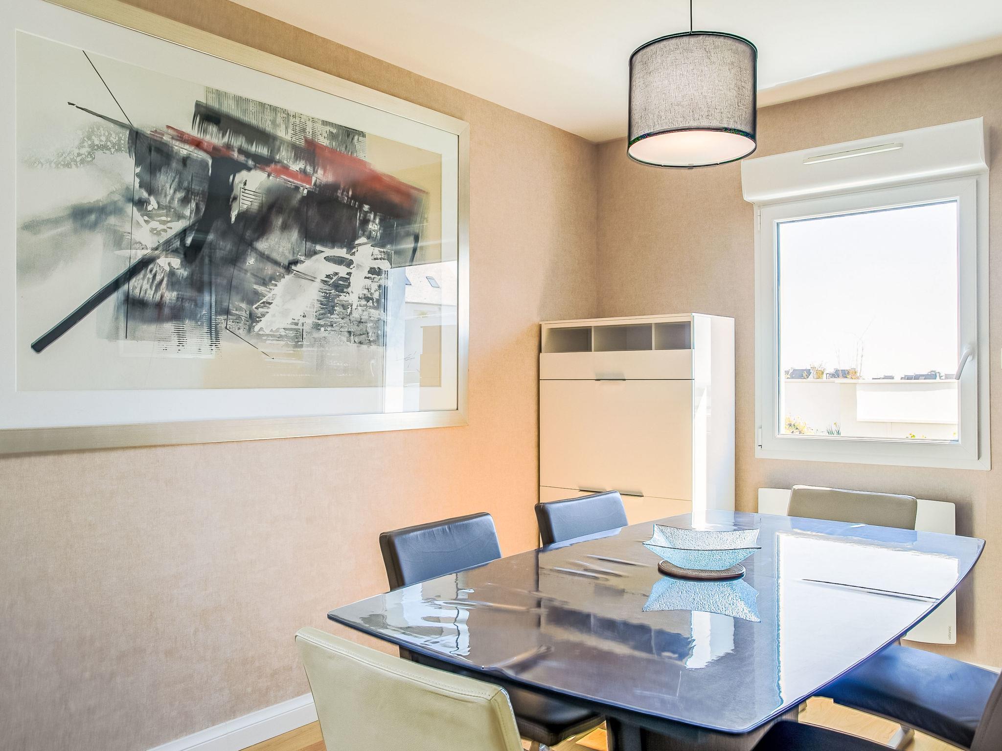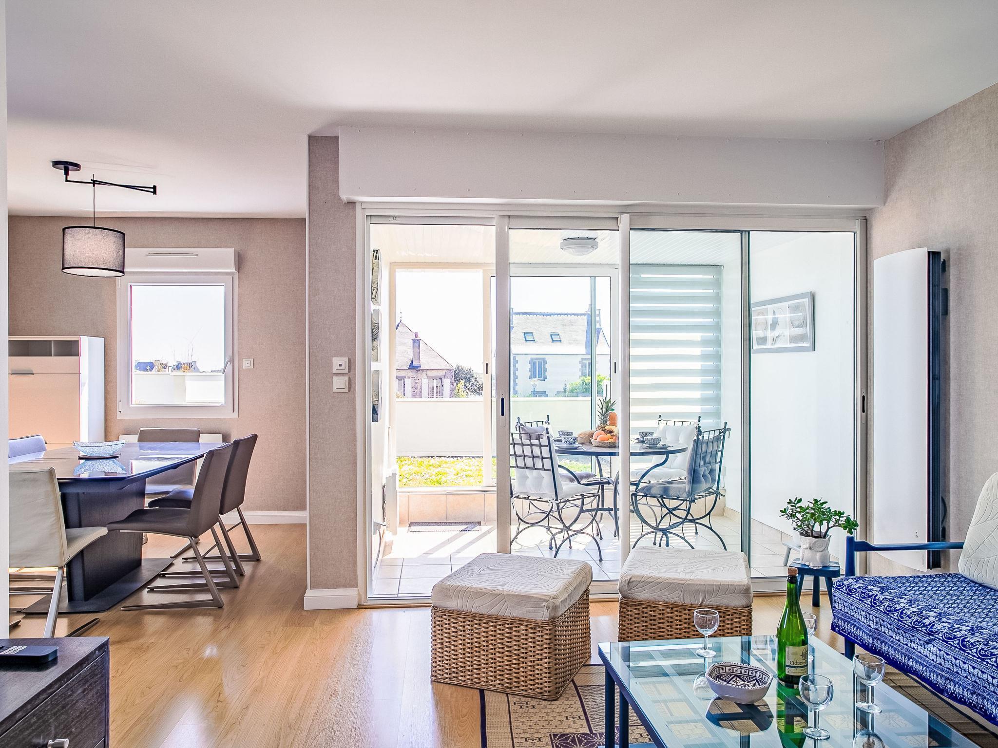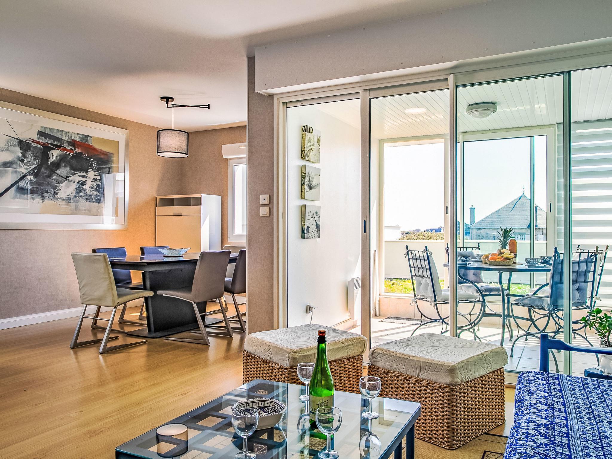 "Entre port et plages", 4-room apartment 97 m2 on 2 levels, on the upper ground floor, south facing position. Object suitable for 4 adults + 2 children. Bright, comfortable and beautiful furnishings: entrance hall. Living/dining room with winter garden with TV and flat screen. Exit to the loggia, to the patio. Open kitchen (oven, dishwasher, 3 induction hot plates, toaster, kettle, microwave, freezer, electric coffee machine, Capsules for coffee machine (Senseo) extra). Shower/WC. Upper floor: 1 room with 1 french bed (160 cm, length 200 cm). 1 room with 1 double fold-away bed (140 cm, length 190 cm). Exit to the balcony. 1 room with 2 pull-out beds (2 x 90 cm, length 190 cm). Bathroom, sep. WC. Electric heating. Balcony 4 m2, south facing position, patio 120 m2, south facing position and, east facing position. Deck chairs (2). Side view of the sea. Facilities: washing machine, iron, hair dryer. Internet (WiFi, free). Please note: non-smoking house. Smoke alarm. Offer by a private individual according to Art. 155, IV of CGI.