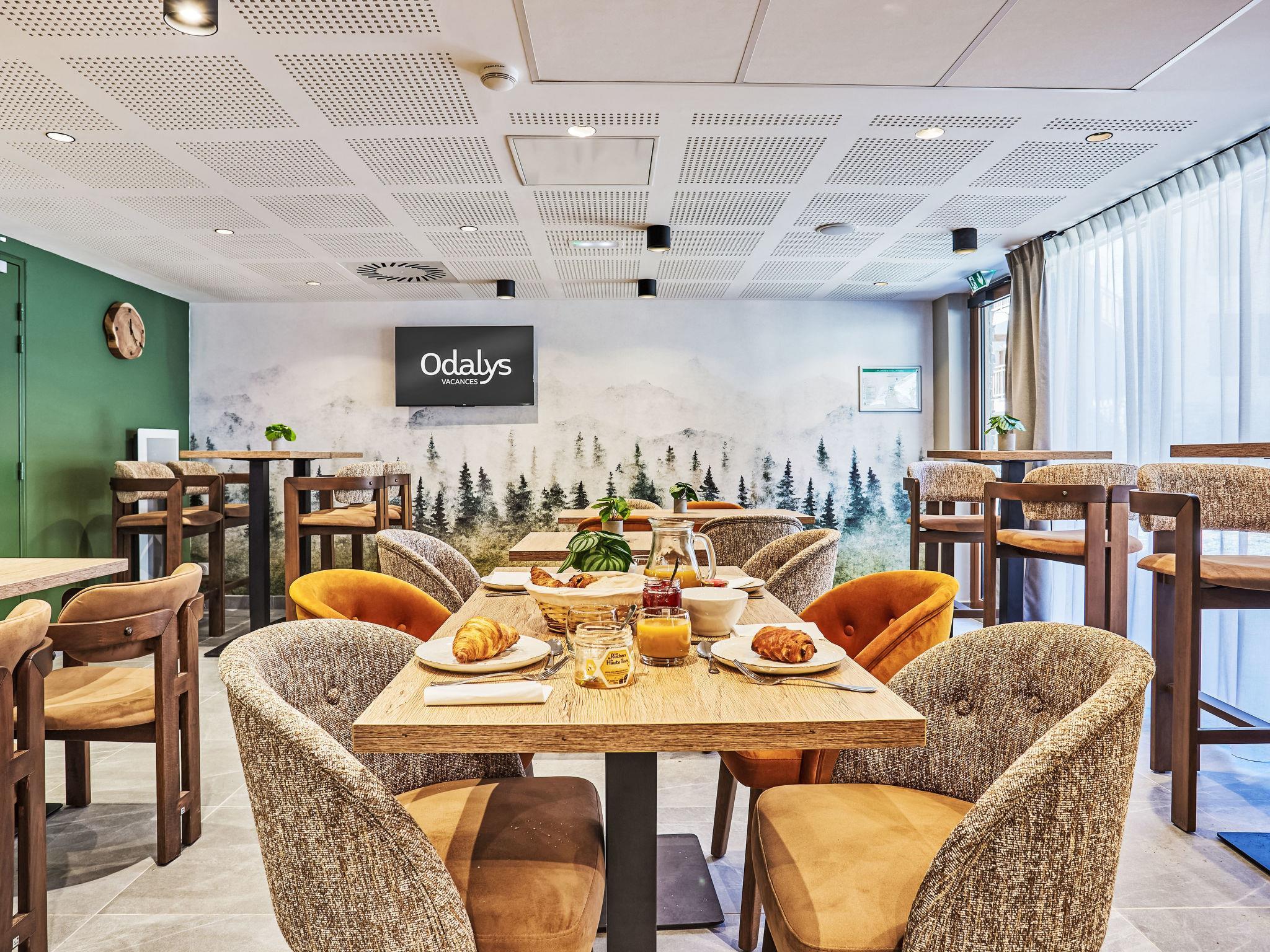 "Odalys Collection Le Mont d'Auron", 2-room apartment 31 m2. Modern and tasteful furnishings: living/sleeping room with 1 pull-out bed (2 pers.), dining table and TV (flat screen). 1 room with 2 sleeping facilities. Small, open kitchen (dishwasher, 4 ceramic glass hob hotplates, toaster, kettle, microwave, electric coffee machine). Sep. WC, bath or shower. Electric heating. Balcony or terrace. Beautiful view of the mountains. Facilities: children's high chair, baby cot, hair dryer. Internet (WiFi, free). Please note: maximum 1 pet/ dog allowed. Smoke alarm.