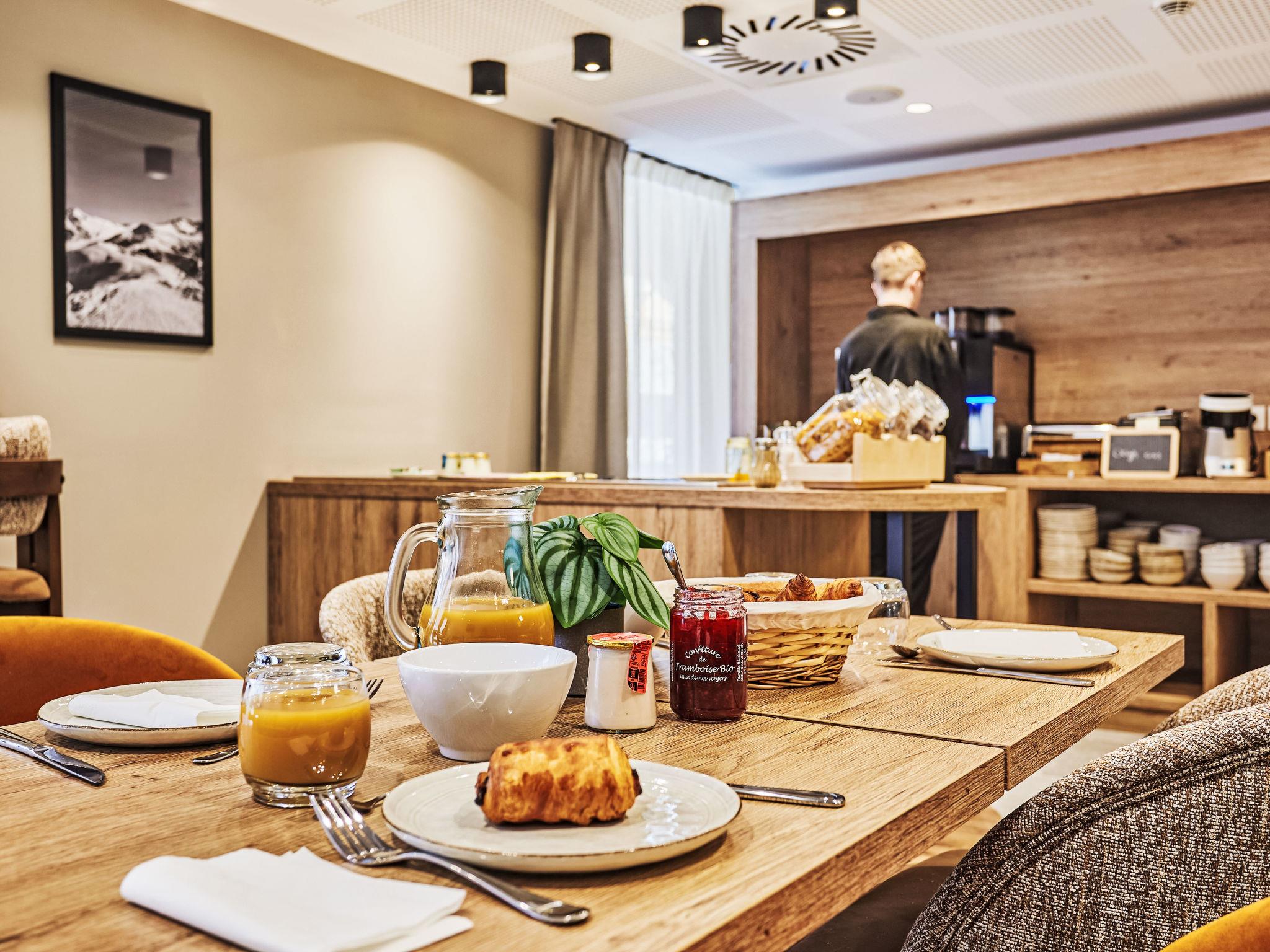 "Odalys Collection Le Mont d'Auron", 2-room apartment 37 m2. Modern and tasteful furnishings: living/sleeping room with 1 pull-out bed (2 pers.), dining table and TV (flat screen). 1 room with 2 sleeping facilities. Sleeping alcove with 1 x 2 bunk beds. Small, open kitchen (dishwasher, 4 ceramic glass hob hotplates, toaster, kettle, microwave, electric coffee machine). Sep. WC, bath or shower. Electric heating. Balcony or terrace. Beautiful view of the mountains. Facilities: children's high chair, baby cot, hair dryer. Internet (WiFi, free). Please note: maximum 1 pet/ dog allowed. Smoke alarm.