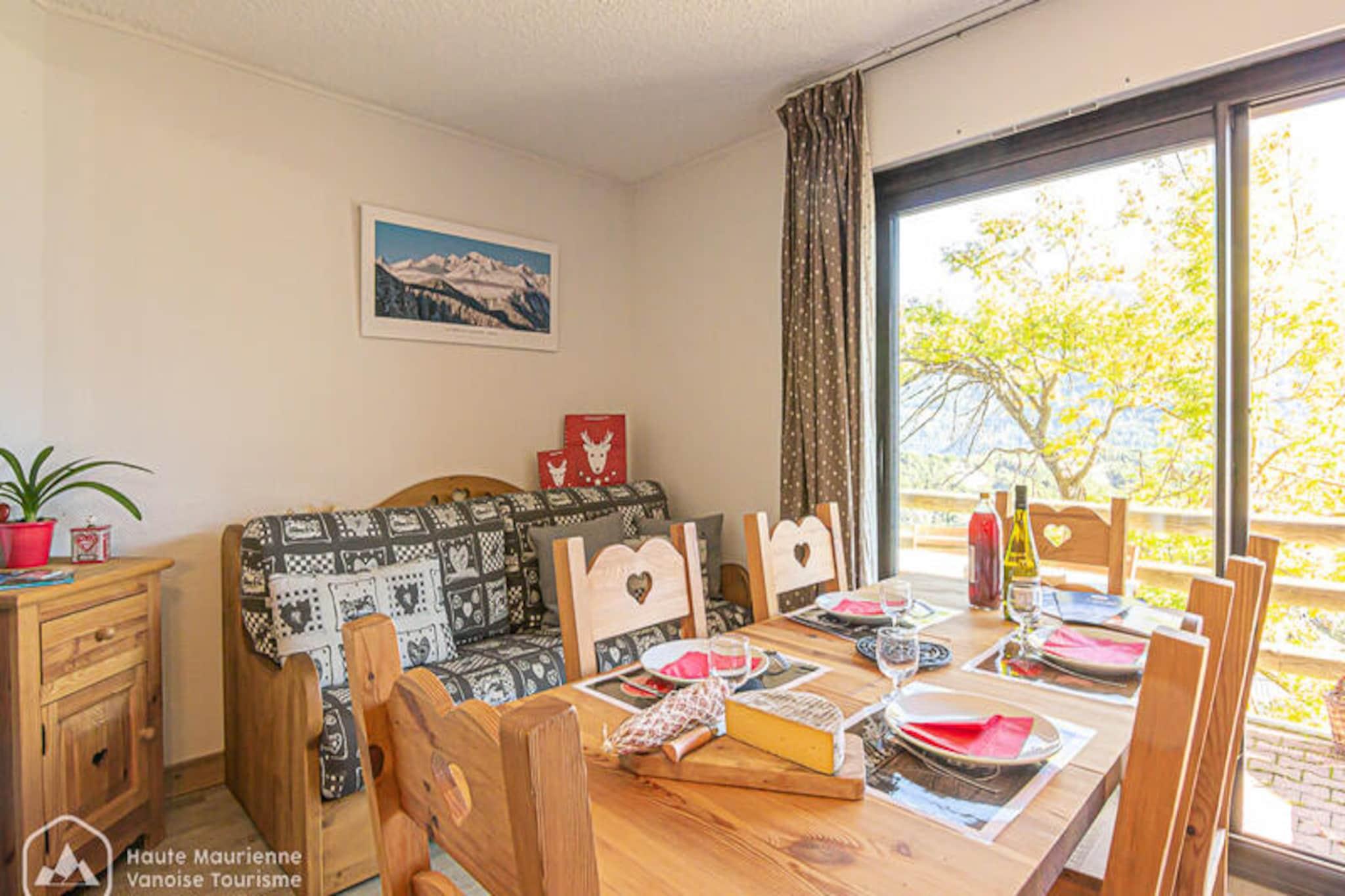 Set against the breathtaking backdrop of the French Alps, this charming residence in Aussois offers a perfect blend of comfort and convenience for your mountain getaway. With unobstructed views of the surrounding peaks and just 100 meters from the ski lifts, you’ll be immersed in the beauty of the snow-covered slopes and vibrant village life. Whether you’re here for skiing adventures or summer hikes, this property promises an unforgettable alpine experience. \n\nThe residence features nine thoughtfully designed apartments accommodating 4 to 6 guests. This cozy 2-room apartment, rated 3 stars, spans 37 square meters and is located on the ground floor with a southeast-facing terrace. The sleeping arrangements include a comfortable double bed in the bedroom, a sofa bed in the living room, and bunk beds in the entrance, making it ideal for families or small groups. The fully equipped kitchen boasts modern amenities like a refrigerator, oven, microwave, dishwasher, and a Nespresso coffee machine, ensuring you have everything needed for a relaxed stay. Free Wi-Fi, ski lockers, and access to washing and drying facilities further enhance your comfort. \n\nStep outside and find yourself just moments away from the ski lifts, shops, and local attractions. Aussois is a picturesque village known for its welcoming atmosphere and proximity to stunning trails and natural wonders. In winter, enjoy the pristine slopes, while summer offers endless opportunities for hiking, cycling, and exploring the nearby Vanoise National Park. \n\nWhether you’re seeking thrilling outdoor activities or tranquil moments surrounded by alpine beauty, this residence is the perfect base for creating cherished memories in the heart of the French Alps.