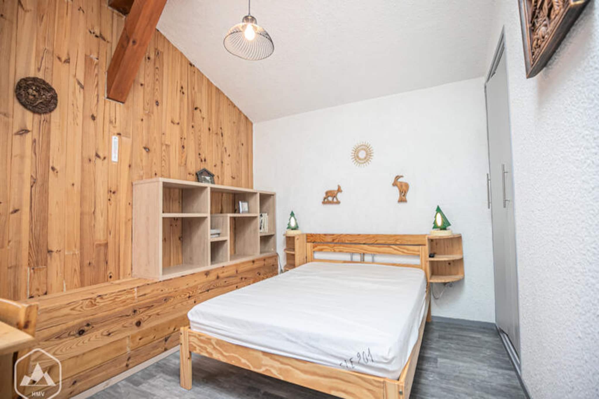 In the heart of the charming village of Aussois, where the majestic peaks of the French Alps rise against the horizon, this delightful residence offers a serene alpine retreat. Imagine waking up to the crisp mountain air and stepping onto your southeast-facing balcony to take in the breathtaking views of the slopes and surrounding landscapes. Whether you're here for the thrill of skiing or the tranquility of summer hikes, this property places you at the center of it all, with the ski lifts conveniently located just across the street. \n\nThis 3-room apartment with mezzanine comfortably accommodates up to six guests, making it ideal for families or small groups. The thoughtfully designed layout includes a cozy living room with a double sofa bed, a mezzanine bedroom with a double bed, and a small skylit room featuring a bunk bed. The apartment is equipped with modern amenities such as a refrigerator, electric stovetop, oven, microwave, dishwasher, washing machine, TV, and Wi-Fi, ensuring a comfortable and hassle-free stay. The bathrooms are equally well-appointed, with a shower, sink, and separate toilet downstairs, and an additional bathroom with a toilet and washing machine upstairs. \n\nSituated in the \