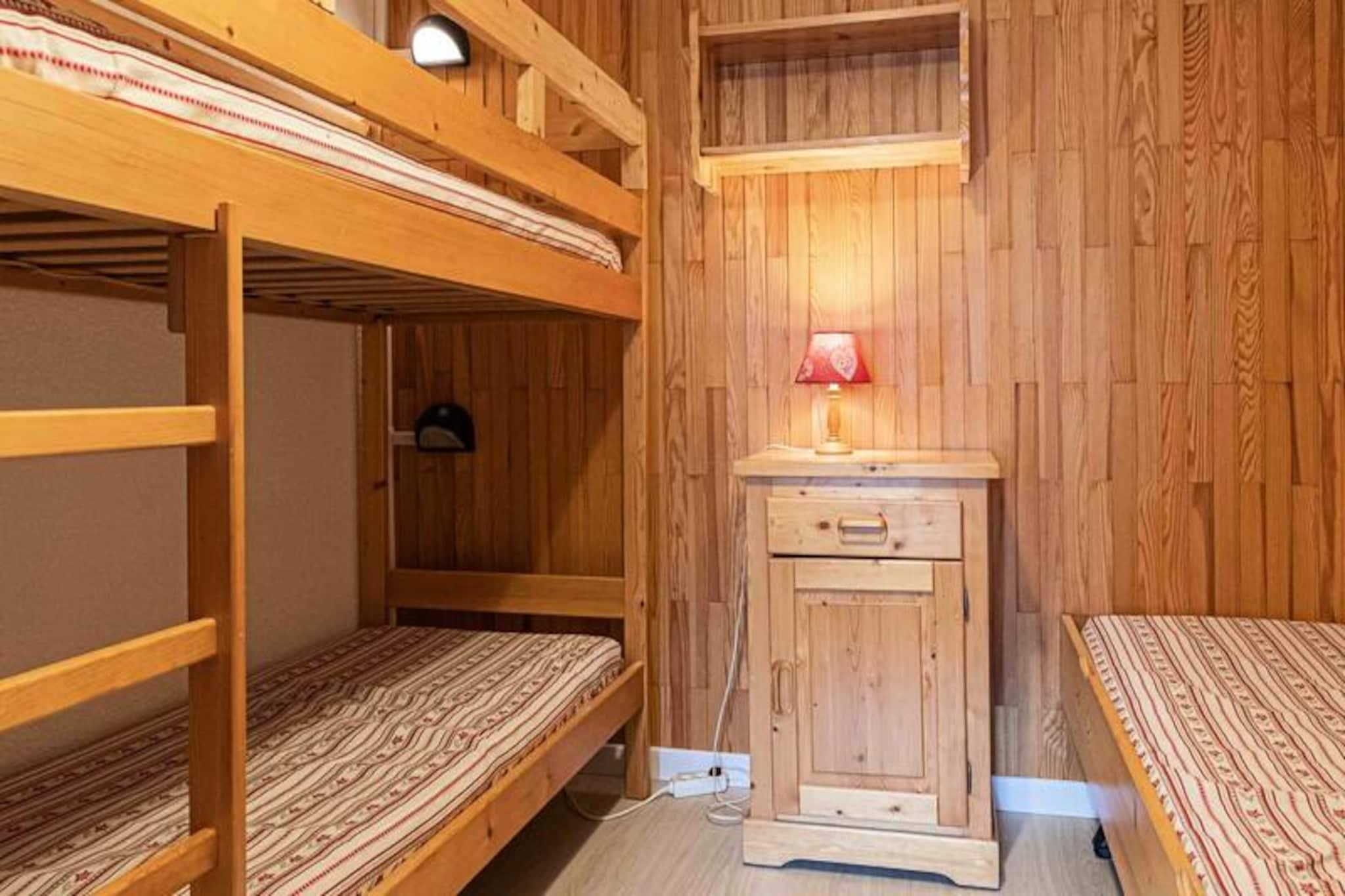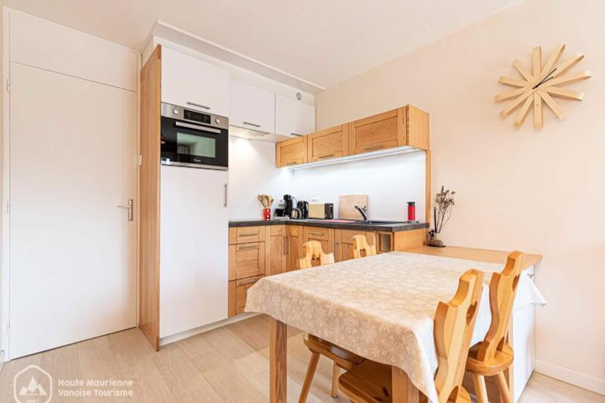 In the charming village of Aussois, where the majestic peaks of the French Alps create a breathtaking backdrop, this delightful apartment in the 'Les Sétives' residence offers a cozy retreat for your alpine adventures. Imagine mornings filled with crisp mountain air and unobstructed views from your southeast-facing balcony, setting the tone for a day of exploration and relaxation. Whether you're here to carve through pristine ski slopes or to wander scenic trails, the location is ideal, just 300 meters from the ski lifts and steps away from local shops and amenities. \n\nThis 2-room apartment, rated 3 stars, comfortably accommodates up to five guests across its thoughtfully designed spaces. The large bedroom features a double bed, a single bed, and a bunk bed, ensuring flexibility for families or small groups. The kitchen is fully equipped with modern conveniences, including a ceramic hob, dishwasher, microwave, and a large refrigerator, making it easy to prepare meals after a day of outdoor activities. A separate bathroom with a bathtub and sink, along with a separate toilet, adds to the comfort of your stay. For added convenience, duvets are provided, and bed linen and towels can be reserved for an additional fee. \n\nBeyond the apartment, Aussois offers a wealth of attractions. From the nearby ski slopes to the charming village atmosphere, you'll find everything you need for a memorable holiday. Explore the surrounding nature trails, indulge in local Savoyard cuisine, or simply soak in the serene alpine ambiance. With shared parking available and a ski locker for your gear, this residence ensures a hassle-free experience. \n\nWhether you seek thrilling winter sports or tranquil summer escapes, this apartment is your gateway to the wonders of the French Alps. Book your stay and create unforgettable memories in this picturesque mountain haven.