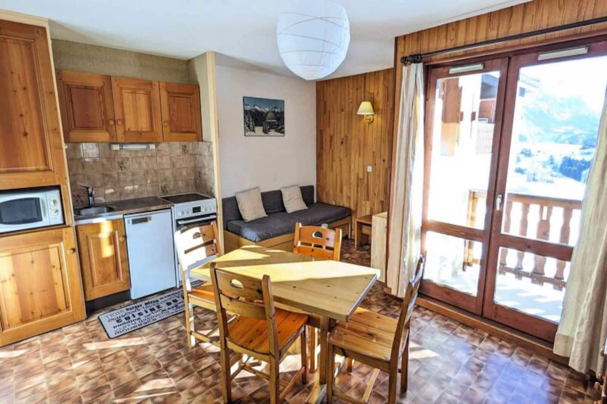 In the charming Alpine village of Aussois, this cozy ground-floor apartment offers a warm and inviting retreat for up to four guests. With its southeast-facing balcony, you can wake up to stunning views of the surrounding mountains and slopes, soaking in the crisp mountain air and the serene beauty of the French Alps. Perfectly situated in the 'Les Fleurs' residence, this property is just steps away from the ski lifts, making it an ideal choice for ski enthusiasts and nature lovers alike. The apartment features a thoughtfully designed layout with a comfortable living room equipped with a pull-out sofa bed that converts into two single beds, and a separate bedroom with a plush double bed. The fully equipped kitchen includes a refrigerator, electric hob, oven, and microwave, allowing you to prepare hearty meals after a day of adventure. Modern amenities such as a TV, a heated towel rail in the bathroom, and a dedicated ski locker ensure a convenient and comfortable stay. Located right on the snowfront, the residence provides easy access to the slopes, making your ski-in/ski-out experience seamless. During the warmer months, the area transforms into a haven for hikers and outdoor enthusiasts, with breathtaking trails and picturesque landscapes to explore. The village of Aussois itself offers a delightful mix of traditional charm and modern conveniences, with local shops, restaurants, and cultural attractions just a short stroll away. Whether you're seeking an action-packed winter escape or a tranquil summer retreat, this apartment in Aussois promises unforgettable memories in the heart of the French Alps. Bring your furry friends along, as pets are welcome here (with a small supplement), and immerse yourself in the beauty and adventure of this enchanting mountain destination.