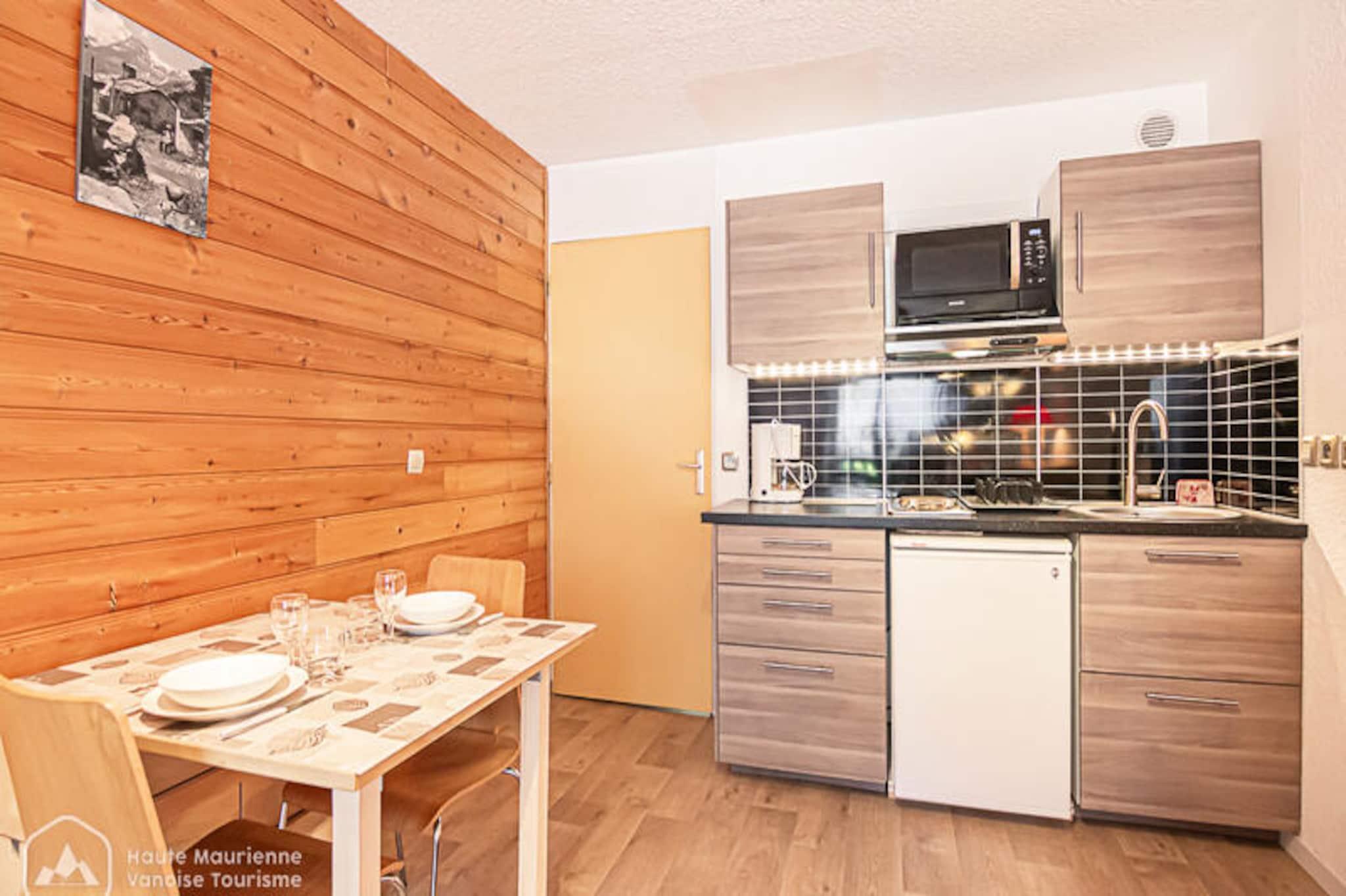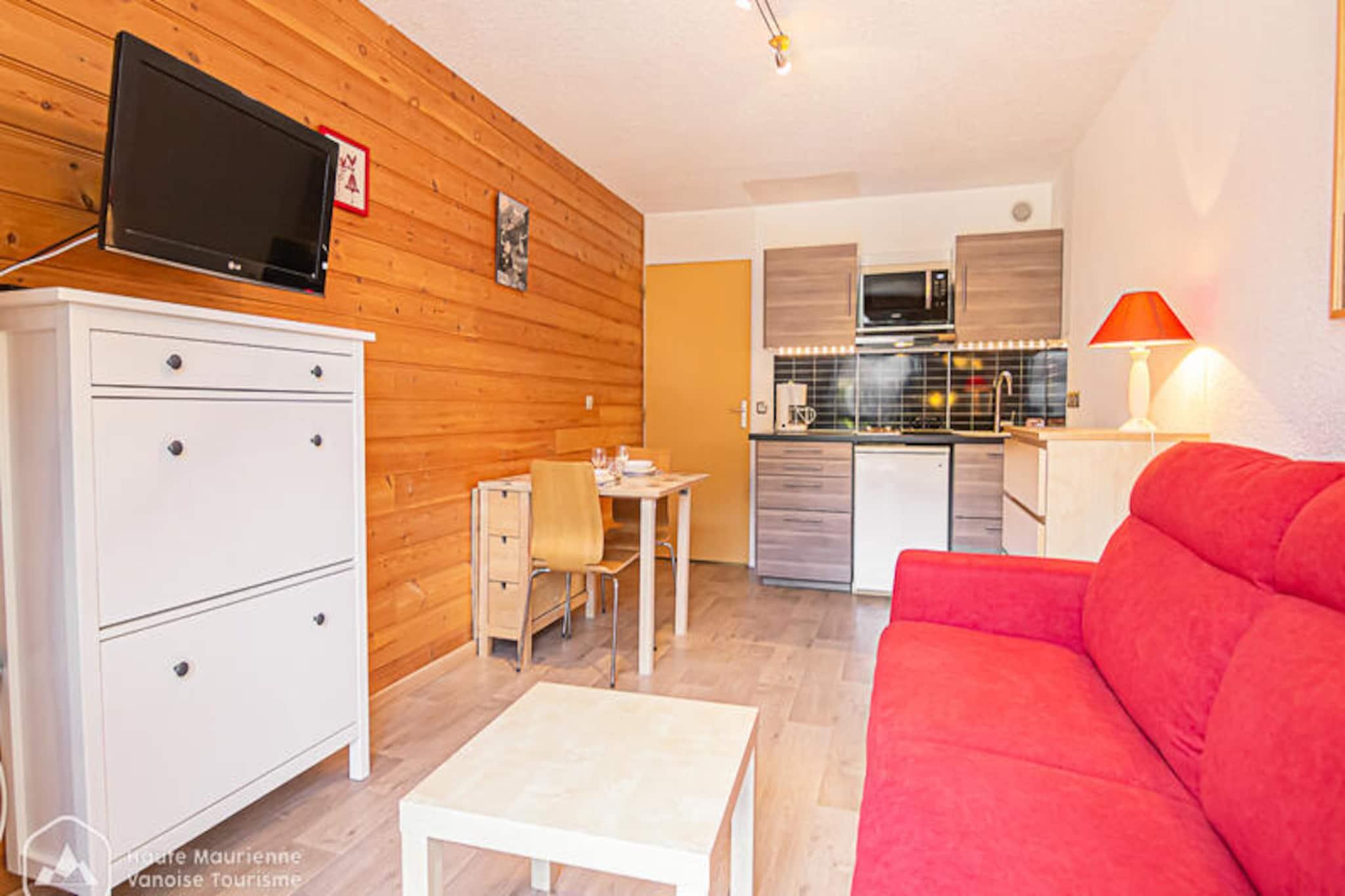 In the charming village of Aussois, where the alpine air is crisp and the scenery breathtaking, this cozy studio in the 'Les Sétives' residence offers an inviting retreat for two. Imagine waking up to the gentle morning light streaming through your southeast-facing balcony, with the majestic peaks of the French Alps as your backdrop. Whether you're here to carve through pristine slopes in winter or explore lush mountain trails in summer, this delightful ground-floor studio is your gateway to adventure. \n\nCompact yet thoughtfully designed, the 21 m² studio provides everything you need for a comfortable stay. The living room features a Rapido sofa bed that easily transforms into a cozy sleeping space for two. The kitchen is equipped with all the essentials, including a refrigerator, electric hob, mini-oven, and microwave, making it easy to prepare meals after a day of exploration. A TV adds a touch of homey comfort, while the ski locker ensures your gear is always ready for the next outing. The bathroom includes a bathtub and sink, with a separate toilet for added convenience. \n\nLocated just 300 meters from the ski lifts and steps away from local shops, the residence places you in the heart of Aussois. The village exudes authentic Savoyard charm, with its traditional architecture, welcoming atmosphere, and a variety of restaurants serving regional specialties. In summer, the surrounding Vanoise National Park offers endless opportunities for hiking, cycling, and wildlife spotting. Shared parking in front of the residence adds to the convenience, and pets are welcome for a small supplement, making this a perfect choice for couples or solo travelers seeking a tranquil alpine escape. \n\nWhether you're drawn by the thrill of the slopes, the serenity of mountain landscapes, or the allure of a picturesque village, this studio in 'Les Sétives' promises a memorable stay in the heart of the French Alps.
