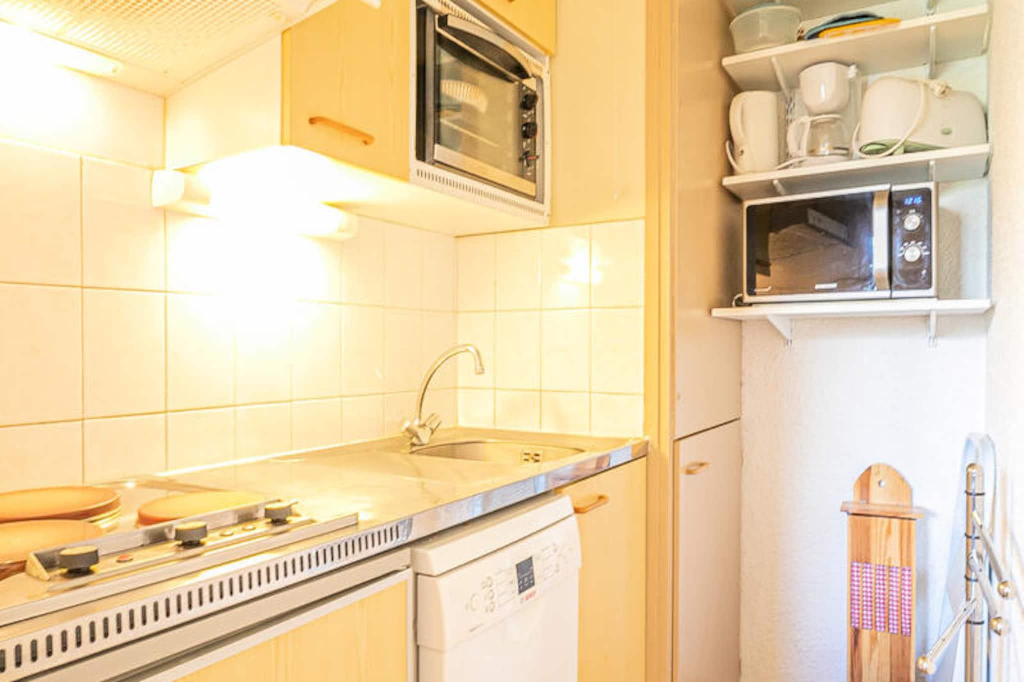 In the charming alpine village of Aussois, this cozy apartment offers a serene retreat for those seeking both relaxation and adventure. Situated in the quiet 'La Corniche' residence, the property is perfectly positioned just 20 meters from a vibrant leisure center featuring a swimming pool, tennis courts, mini golf, and outdoor play areas. With the ski lifts only 500 meters away and a free winter shuttle service at your doorstep, you’ll enjoy seamless access to the slopes while staying in a peaceful residential area. This thoughtfully designed 2-room apartment, rated 2**, comfortably accommodates up to four guests. The living room features a double sofa bed, while the separate bedroom offers a cozy double bed, making it ideal for couples or small families. The east-facing balcony invites you to start your mornings with breathtaking views of the surrounding mountains. The well-equipped kitchen includes a refrigerator, electric stovetop, mini-oven, dishwasher, and even a washing machine, ensuring all the comforts of home. Modern amenities such as free Wi-Fi, a TV, and a ski locker add to the convenience of your stay. Beyond the residence, Aussois offers a wealth of activities year-round. In winter, the nearby ski slopes provide endless opportunities for skiing and snowboarding, while summer transforms the area into a haven for hiking, cycling, and exploring the stunning landscapes of the Maurienne Valley. The leisure center next door is perfect for family fun, and the village’s charming shops and restaurants are just a short stroll away. Whether you’re here to carve through fresh powder, wander scenic trails, or simply unwind in the tranquil alpine atmosphere, this apartment is your gateway to an unforgettable mountain getaway.