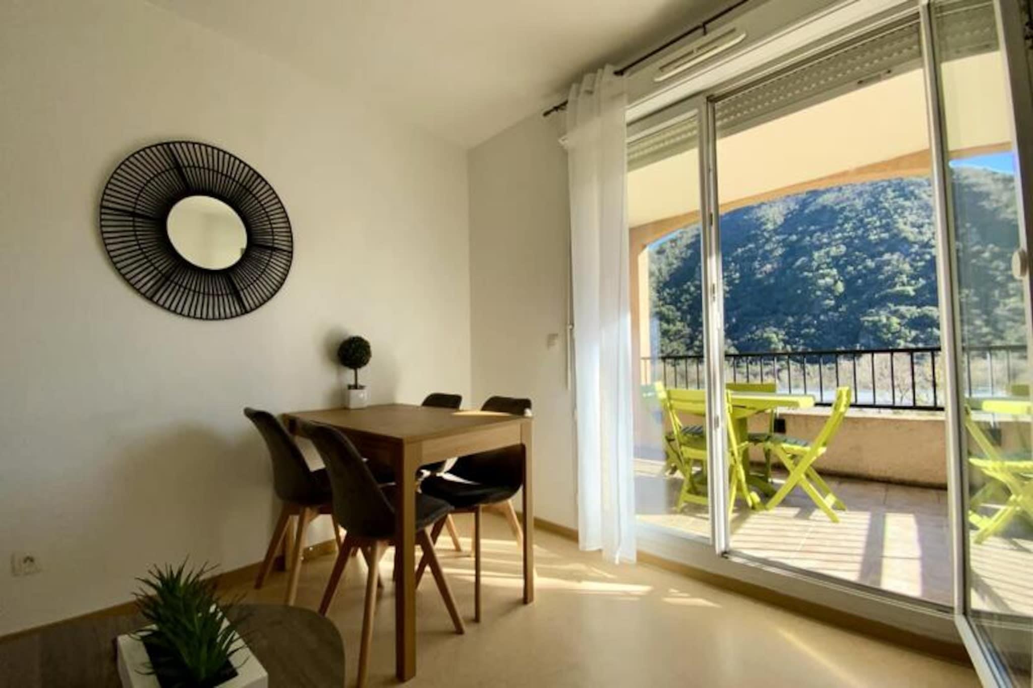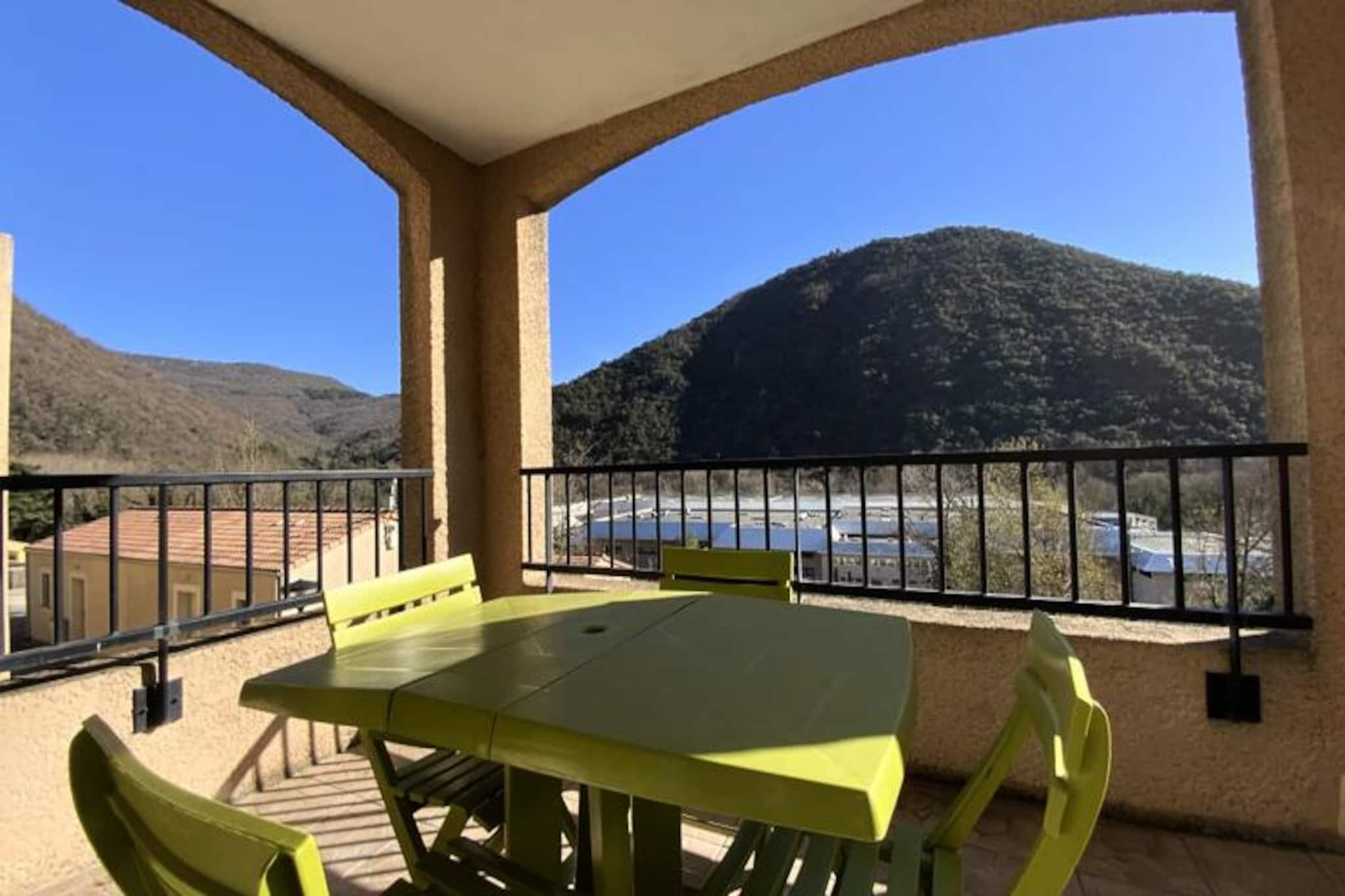In the heart of the Haut-Languedoc Regional Natural Park, where the Cévennes mountains rise majestically, this charming first-floor apartment offers a peaceful retreat just a 10-minute walk from the renowned Avène Thermal Spa. Surrounded by the lush beauty of the Upper Orb Valley, this residence invites you to unwind and reconnect with nature while enjoying the comforts of a fully equipped home. From the moment you arrive, the serene atmosphere and breathtaking landscapes will captivate your senses. The apartment features a spacious open-plan living area with a fully equipped kitchen, a cozy dining space, and a comfortable sofa bed. Step out onto the private terrace to enjoy your morning coffee or a glass of wine in the evening, all while soaking in the tranquil surroundings. Two bright and airy bedrooms, fitted with ample storage, ensure restful nights, while the modern bathroom with a bathtub provides the perfect spot to relax after a day of exploration. Additional amenities such as free Wi-Fi, linens, and on-site concierge services make your stay effortless and enjoyable. Beyond the residence, the region beckons with its wealth of outdoor activities and cultural treasures. Discover picturesque hiking trails, cycle through verdant greenways, or explore the enchanting village of Avène. Venture further to marvel at the Héric and Colombières-sur-Orb gorges, or visit Olargues, one of France’s most beautiful villages. Whether you’re here for a spa retreat or an active holiday, this location offers something for everyone. With its idyllic setting, modern comforts, and proximity to natural and cultural wonders, this apartment is the perfect base for a rejuvenating escape. Let the magic of the Haut-Languedoc enchant you and create unforgettable memories.