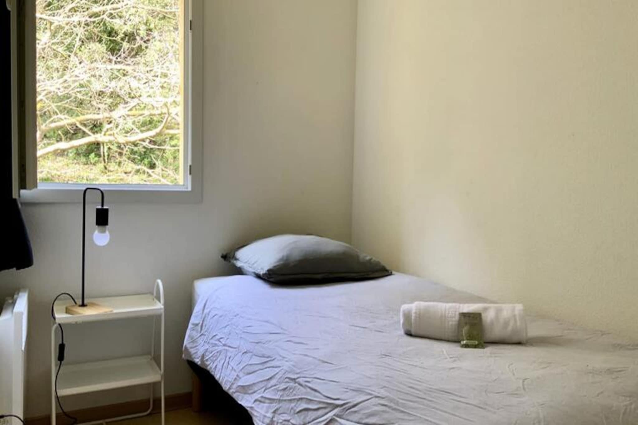 In the heart of the Upper Orb Valley, where the Cévennes mountains rise majestically, lies this charming apartment in Les Naïades les Bains d'Avene residence. Surrounded by the lush greenery of the Haut-Languedoc Regional Natural Park, this retreat offers a peaceful escape just 10 minutes from the renowned Avène Thermal Spa. Here, the soothing ambiance of nature blends seamlessly with the comforts of modern living, creating the perfect setting for relaxation and rejuvenation. Whether you're seeking tranquility or adventure, this location promises an unforgettable experience. The apartment, situated on the second floor, features a spacious open-plan living area bathed in natural light. The fully equipped kitchen includes everything you need, from a fridge/freezer and hob to a coffee machine and washing machine. A cozy dining area and a comfortable sofa bed invite you to unwind, while the outdoor terrace with garden furniture offers a serene space to enjoy the fresh mountain air. Two bedrooms provide flexible sleeping arrangements, ensuring comfort for families or small groups. Additional amenities such as free Wi-Fi, linens, towels, and a communal pool open during summer add to the convenience of your stay. Step outside and discover a world of exploration. The surrounding area boasts countless hiking trails, cycling routes, and picturesque landscapes. Venture to Lake Avène, the Héric and Colombières-sur-Orb gorges, or the charming village of Olargues, recognized as one of France's most beautiful villages. From the vineyards to the circular village of Avène, every corner of this region is steeped in natural beauty and cultural charm. Whether you're here for a spa retreat or a nature-filled getaway, this residence offers the perfect base to immerse yourself in the splendor of the Haut-Languedoc. Let the tranquility of the Orb Valley and the warmth of this inviting apartment create lasting memories for your holiday.