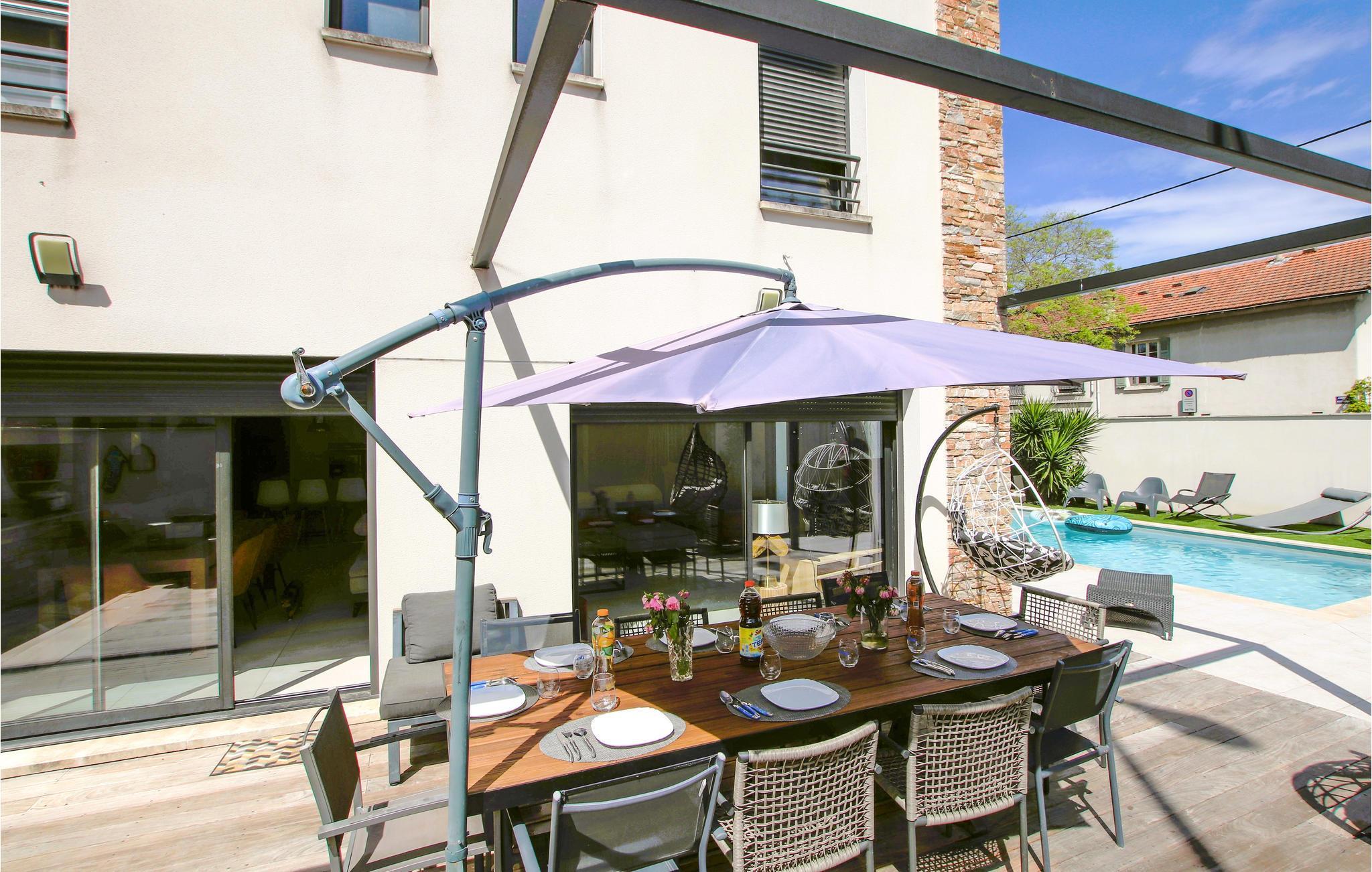Lassen Sie in diesem komfortablen Ferienhaus mit Pool die Seele baumeln.