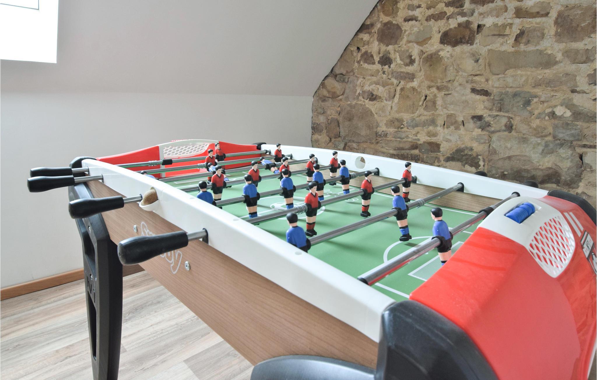 Diese gemütliche charmante Ferienwohnung in einem Herrenhaus aus dem 18. Jahrhundert verspricht Entspannung pur. Diese Unterkunft mit historischem Flair eignet sich für Familien oder Gruppen, die an einem ruhigen Ort abseits der Hektik der Küste wohnen möchten. Hier finden Sie nämlich Ruhe in idyllischer Lage. Unterhalten Sie sich an ruhigen Abenden beim Tischfußball, Tischtennis und Dart oder entspannen Sie sich im Wohnraum bei einem guten Film. Das Spielzimmer ist separat gelegen und wird mit anderen Gästen geteilt. Genießen Sie auf der Terrasse wunderschöne Sonnenabende mit gegrillten Leckerbissen. Die Kinder können im Garten ausgelassen Badminton oder Fußball spielen.