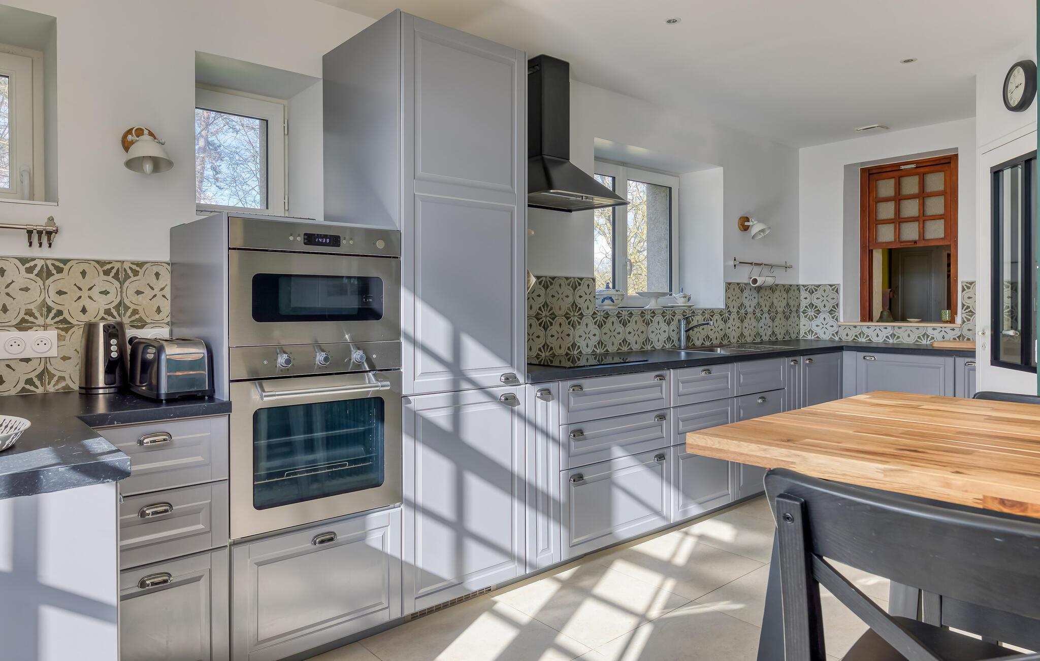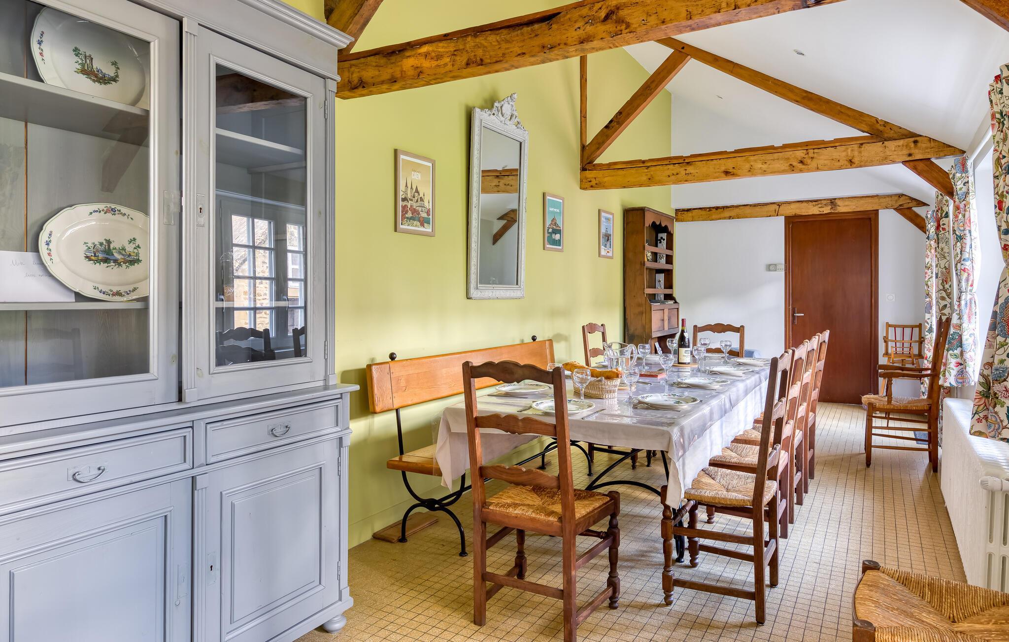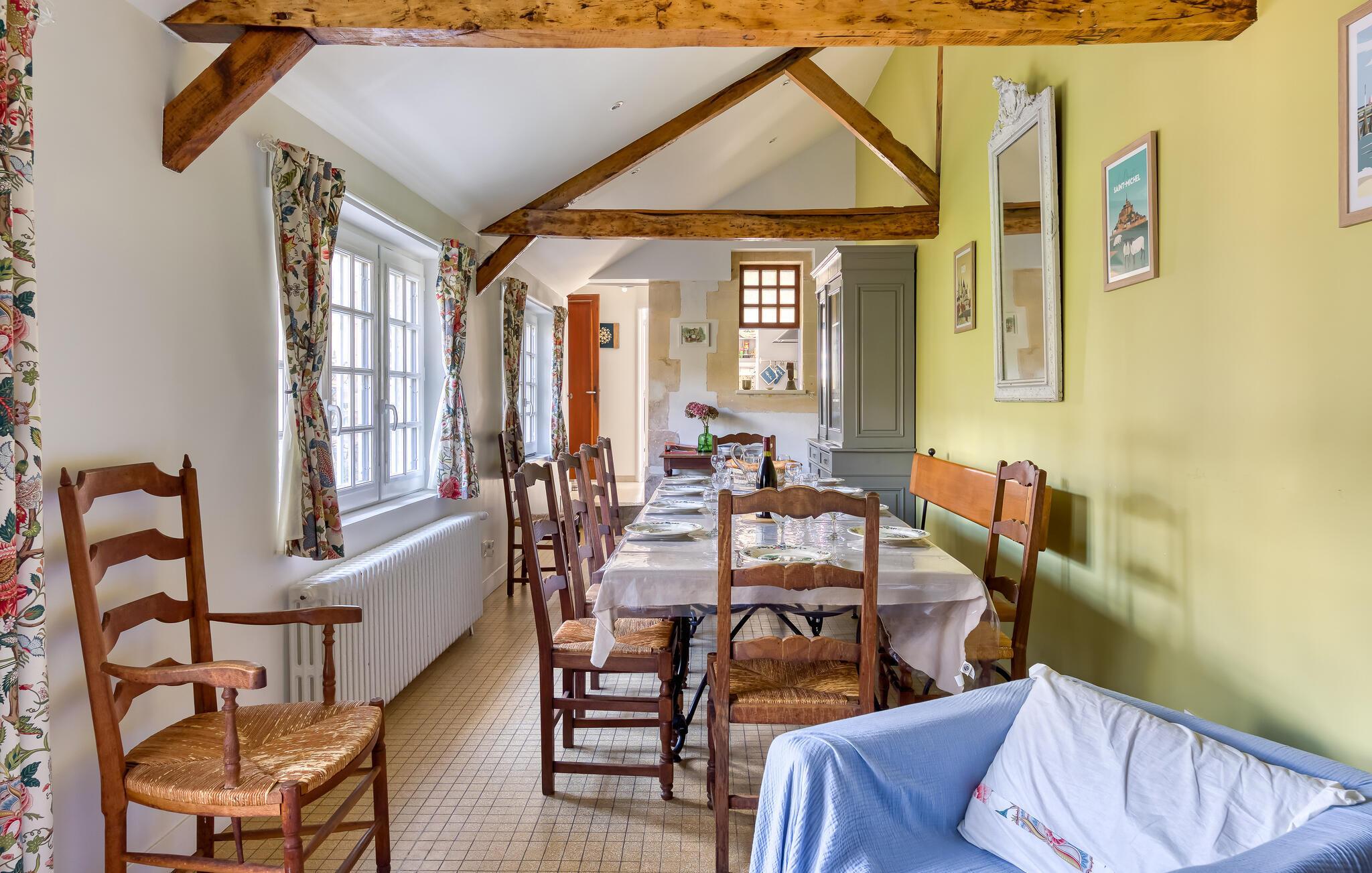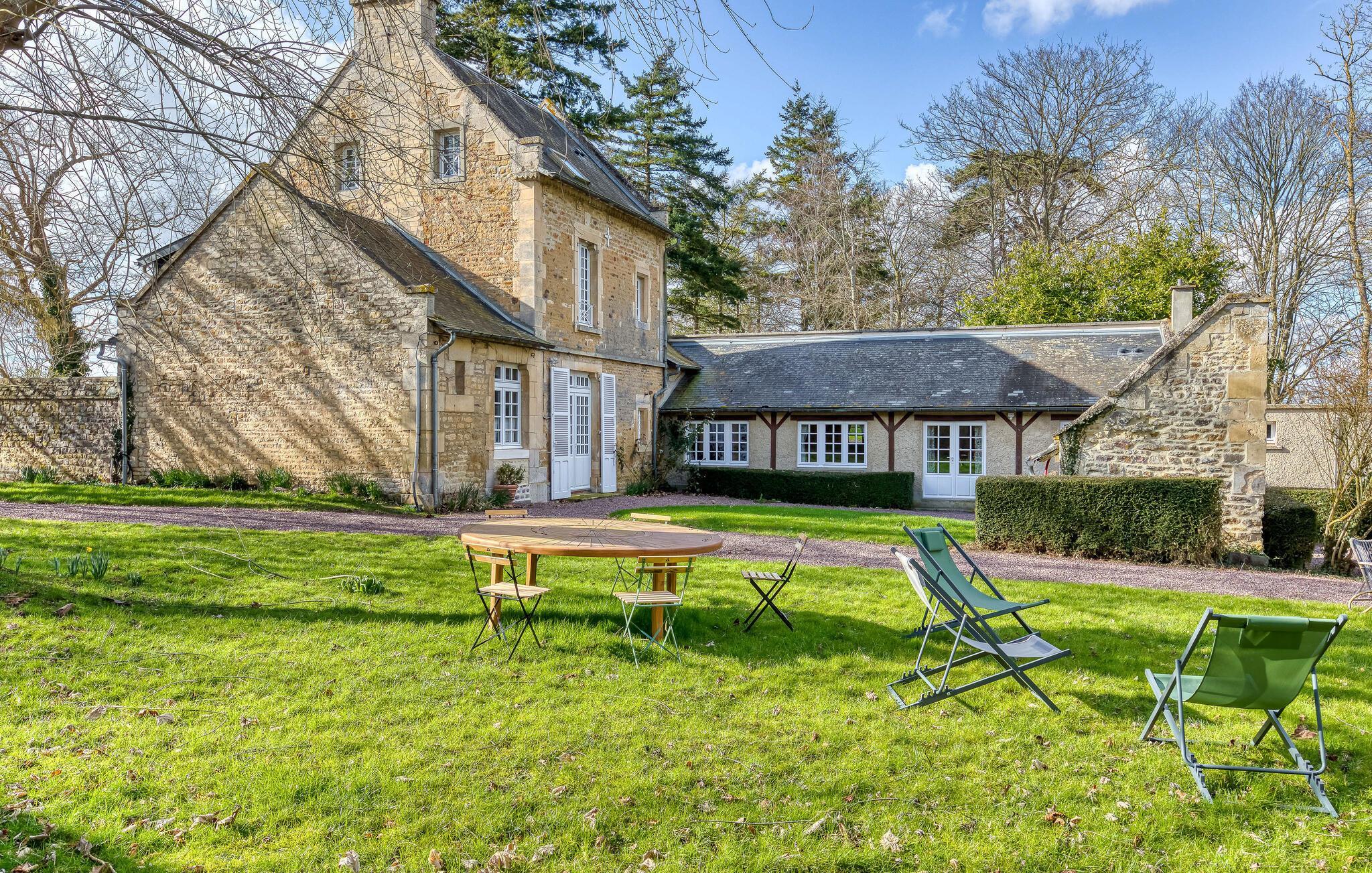 Genießen Sie die Ruhe und den Charme Ihres Anwesens aus dem Jahr 1790, eingebettet in die malerische Landschaft des Calvados. Hier vereinen sich traditionelle Eleganz und moderner Komfort zu einem idealen Rückzugsort für Familien oder Freundesgruppen. Treten Sie ein und lassen Sie sich von der warmen und charaktervollen Atmosphäre empfangen. Entspannen Sie im gemütlichen Wohnbereich mit knisterndem Kamin und bequemen Sofas und machen Sie es sich mit einem Buch in dieser stilvollen Einrichtung bequem. Zahlreiche Schlafzimmer bieten Ihnen höchsten Komfort und eine erholsame Nachtruhe. Nutzen Sie die großzügige Küche, um gemeinsam kulinarische Köstlichkeiten zu zaubern, und genießen Sie Ihre Mahlzeiten im charmanten Essbereich mit rustikalen Holzbalken.