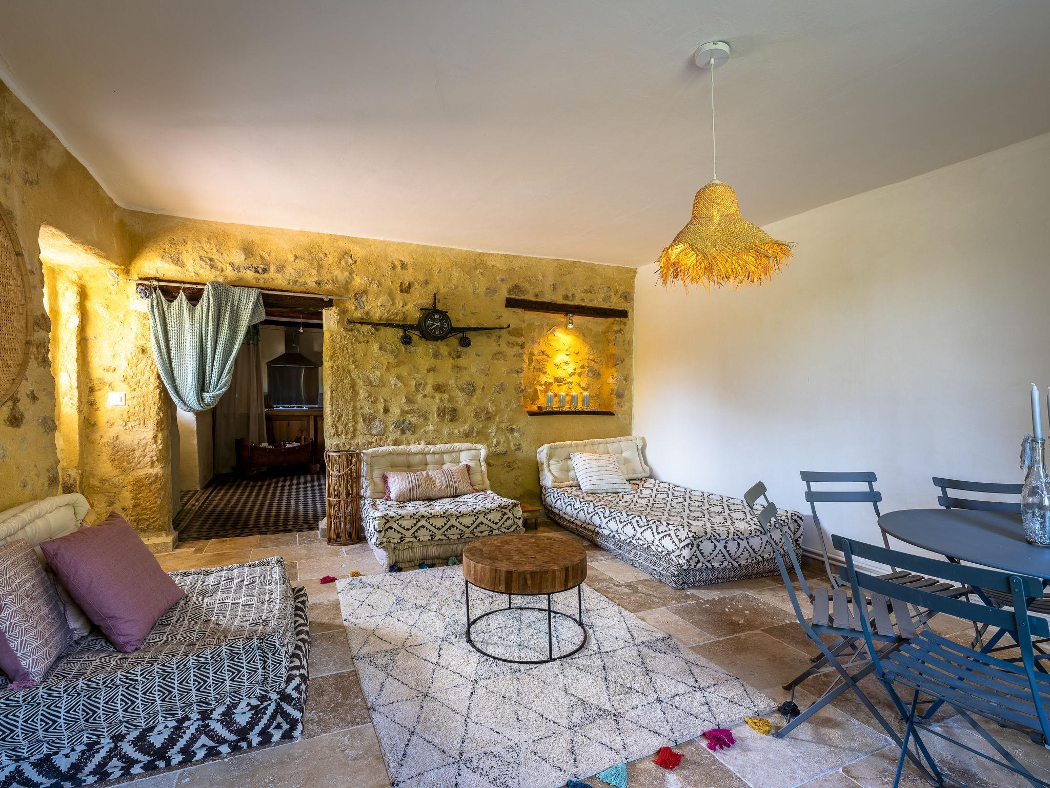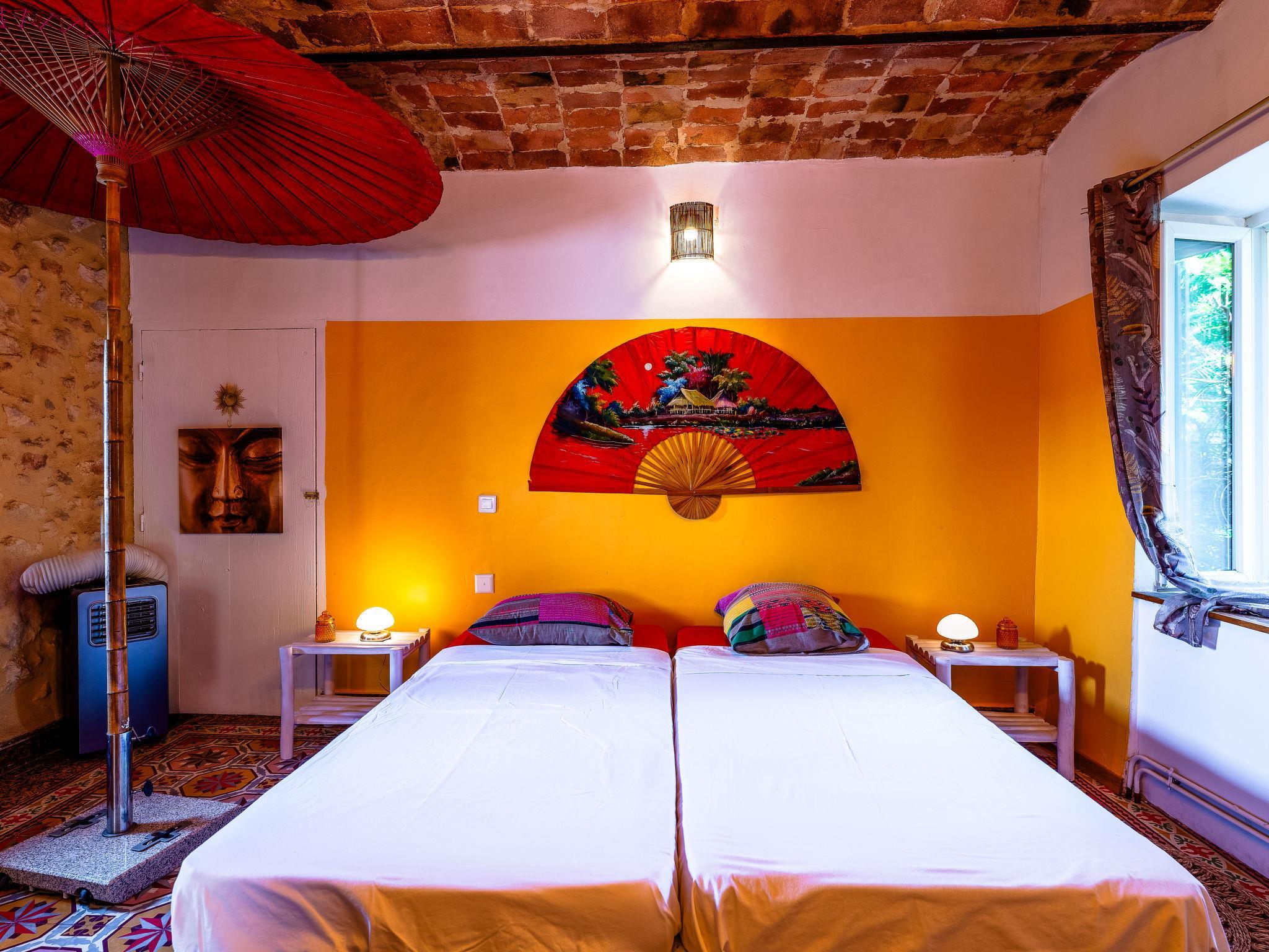 "Le Mas d'Adélaïs", 7-room farmhouse 300 m2 on 2 levels. Spacious, fully renovated, comfortable furnishings: living/dining room with Scandinavian wood stove and satellite TV (flat screen), hi-fi system, DVD and air conditioning. Exit to the terrace. 1 room with 1 french bed (1 x 160 cm, length 200 cm), shower/WC and fan. Large kitchen in the entrance (oven, dishwasher, 3 induction hot plates, toaster, kettle, microwave, freezer, electric coffee machine, raclette grill, fondue Set (cheese)). Exit to the terrace. 2 sep. WC's. Electric heating. Upper floor: 1 room with 1 french bed (1 x 180 cm, length 200 cm), hand-basin, bath/shower and fan. 1 room with 2 beds (90 cm, length 200 cm), hand-basin, shower and fan. 1 room with 2 beds (90 cm, length 200 cm), hand-basin and shower/WC. 1 room with 1 french bed (1 x 160 cm, length 200 cm), hand-basin, shower/WC and fan. Sep. WC. Large terrace 15 m2, small terrace 8 m2. Terrace furniture, barbecue, deck chairs (8). Facilities: washing machine, iron, baby cot for up to 2 year olds. Internet (WiFi, free). Parking (fenced 3 cars). Please note: maximum 2 small pets/ dogs allowed. Smoke alarm. The pool mentioned in the description is for private use. Offer by a private individual according to Art. 155, IV of CGI.