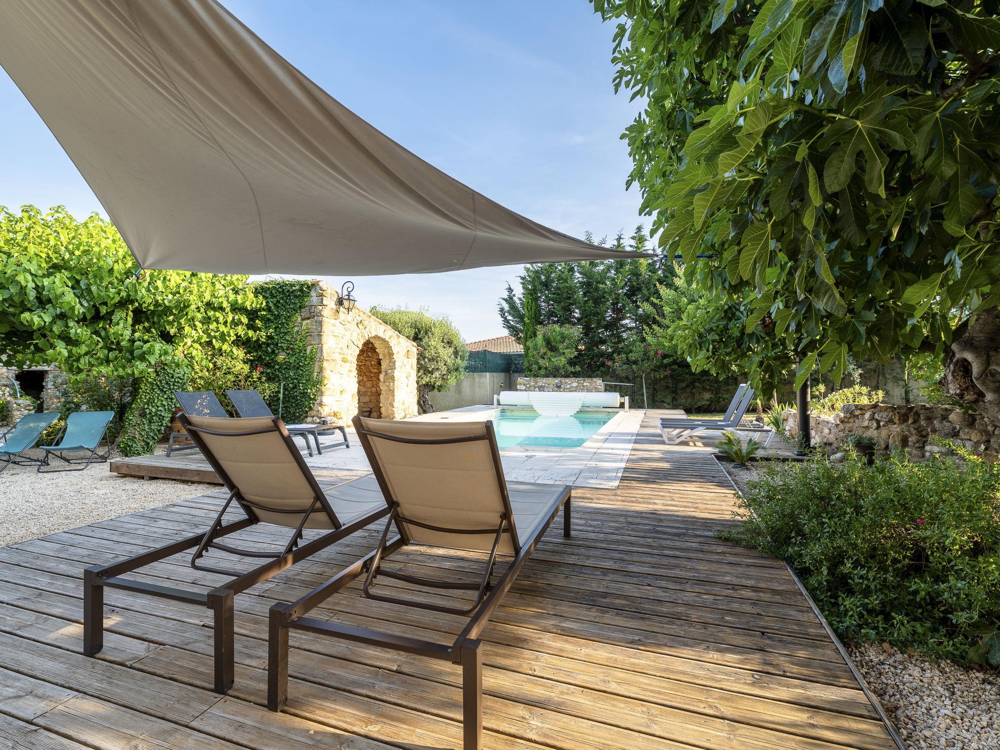 Baron 12 km from UZES: Old, very beautiful mas "Le Mas d'Adélaïs", built in 1851, renovated, surrounded by meadows, fields and vineyards. Property composed of main house and outbuilding, in a secluded position. Private: well-kept garden 1'200 m2 (fenced) with lawn and wildlife garden, swimming pool (8 x 5 m, depth 130 - 190 cm, seasonal availability: 01.Jun. - 30.Sep.) with shutter cover. Terrace, garden furniture, pool maintenance by the owner/gardener. Parking (for 3 cars) on the premises. Bus stop "Cave" 5 km. Riding stable 2 km, walking paths from the house 1 km. Nearby attractions: Alès 20 km, Uzès 13 km, Vézenobles village de caractère 11 km, Lussan village de caractère 14 km, St Dézerie canyoning via ferreta canoé, Pont du Gard 30 km. Well-known lakes can easily be reached: Lac Dupuy - pèche à la truite. Hiking paths: Sentiers découverte des vignobles, Les Gorges du Gardon 20 km. Please note: car recommended. The owner does not accept any youth groups. Animals in the neighbourhood.