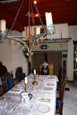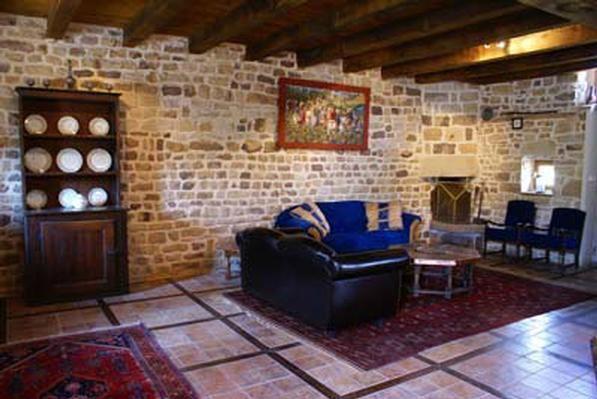 The house is situated in a part of the castle with a private entrance and is both spacious and furnished with great care. The ground floor has a large, beautiful room (exposed beams and stone walls) that comprises a sitting area with fireplace, a dining area situated in front of a medieval fireplace with wood stove and a fully equipped kitchen with dishwasher, microwave, refrigerator, washing machine, etc.