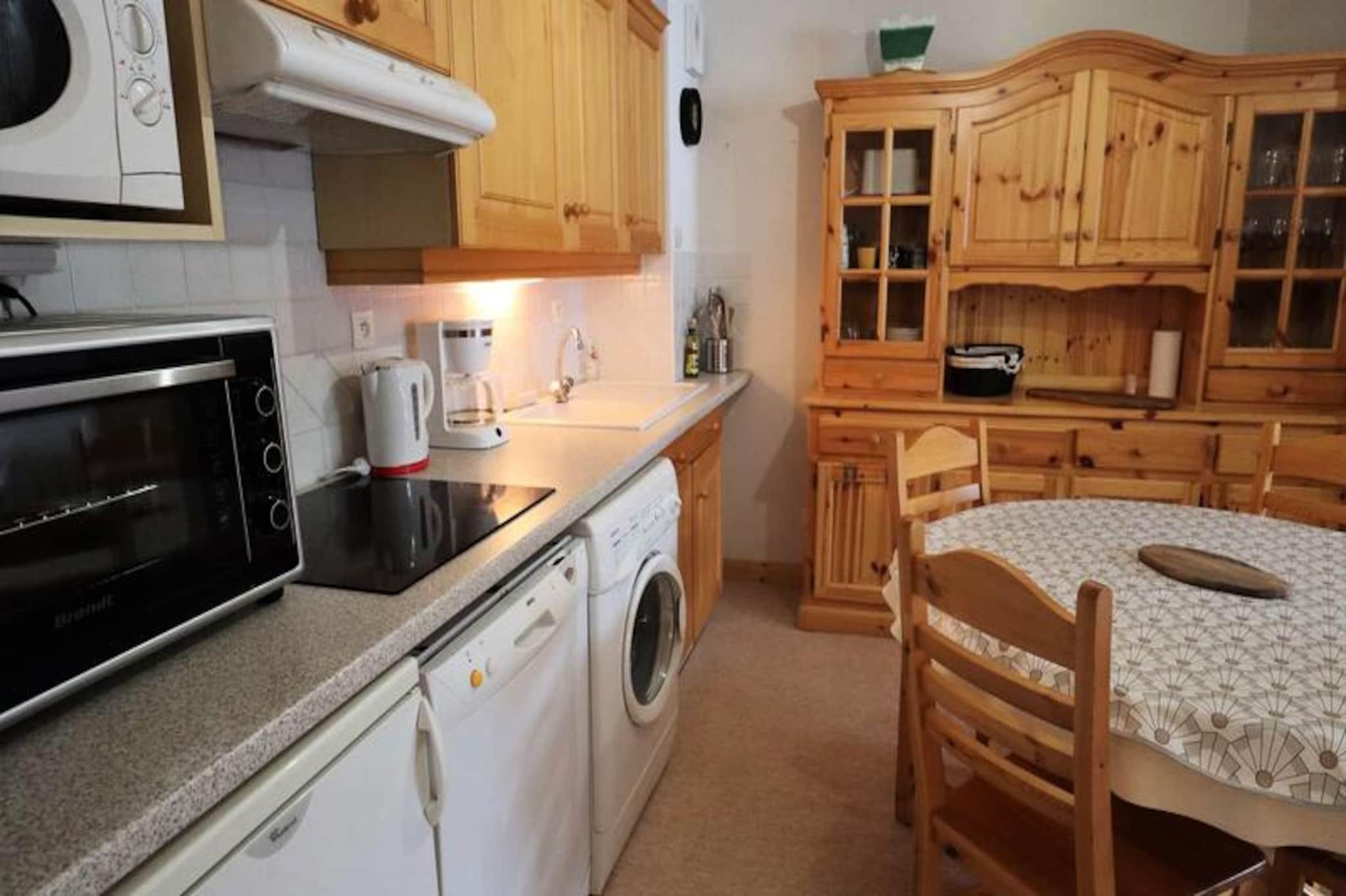 In the heart of the breathtaking Beaufortain region, this charming apartment invites you to experience the serene beauty of the French Alps. Bathed in sunlight and surrounded by majestic mountain peaks, this cozy retreat is the perfect haven for families or small groups seeking a peaceful alpine escape. The south-facing residence offers stunning views and a tranquil ambiance, making it an ideal base for both winter and summer adventures. Step inside this well-appointed 39m² apartment, where comfort meets functionality. The living area opens onto a spacious southwest-facing loggia terrace, perfect for soaking in the panoramic vistas. The fully equipped kitchen, complete with modern appliances like an oven, microwave, dishwasher, and induction hobs, makes meal preparation a delight. Two inviting bedrooms provide restful spaces, with one featuring bunk beds and a desk, and the other offering a double bed and ample storage. A sofa bed in the living room ensures flexibility for up to six guests. Additional amenities include a modern shower room, separate toilet, washing machine, ski locker, and private parking just across the street. Conveniently located, the apartment is just 600 meters from local shops and a mere 50 meters from the free ski bus stop, ensuring easy access to the slopes only 1 km away. Whether you're here to carve through pristine snow in winter or explore lush hiking trails in summer, the region offers endless opportunities for adventure. The picturesque village of Arêches-Beaufort enchants visitors with its traditional charm, local markets, and delicious Beaufort cheese. This alpine retreat combines comfort, convenience, and stunning surroundings, promising an unforgettable stay in one of France’s most picturesque mountain destinations. Whether you're seeking thrilling outdoor activities or quiet moments of relaxation, this apartment is your gateway to the magic of the Alps.