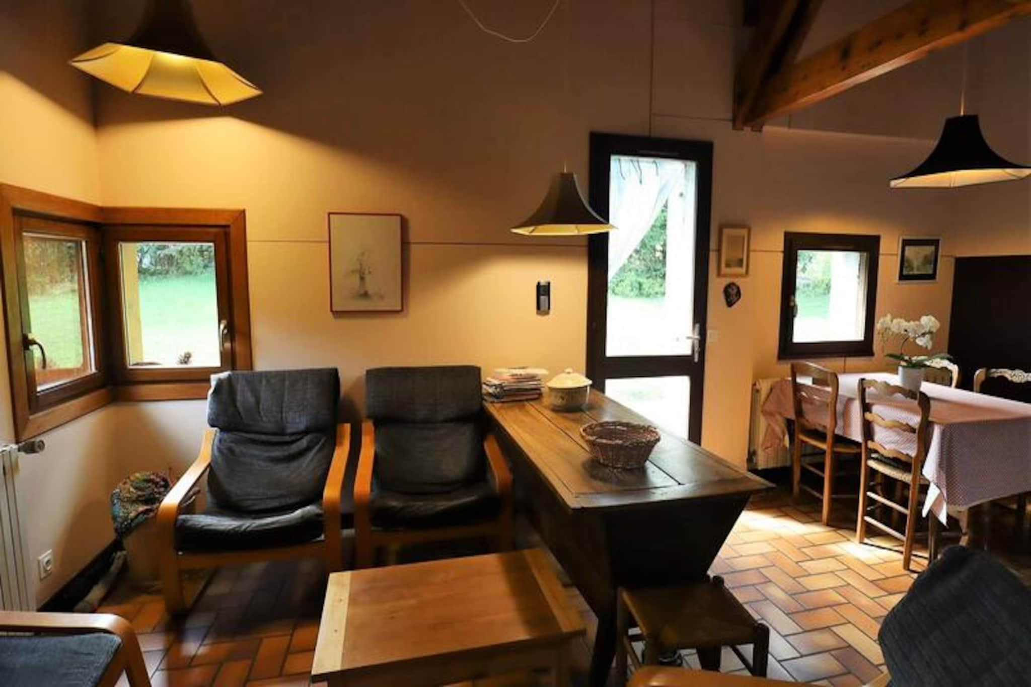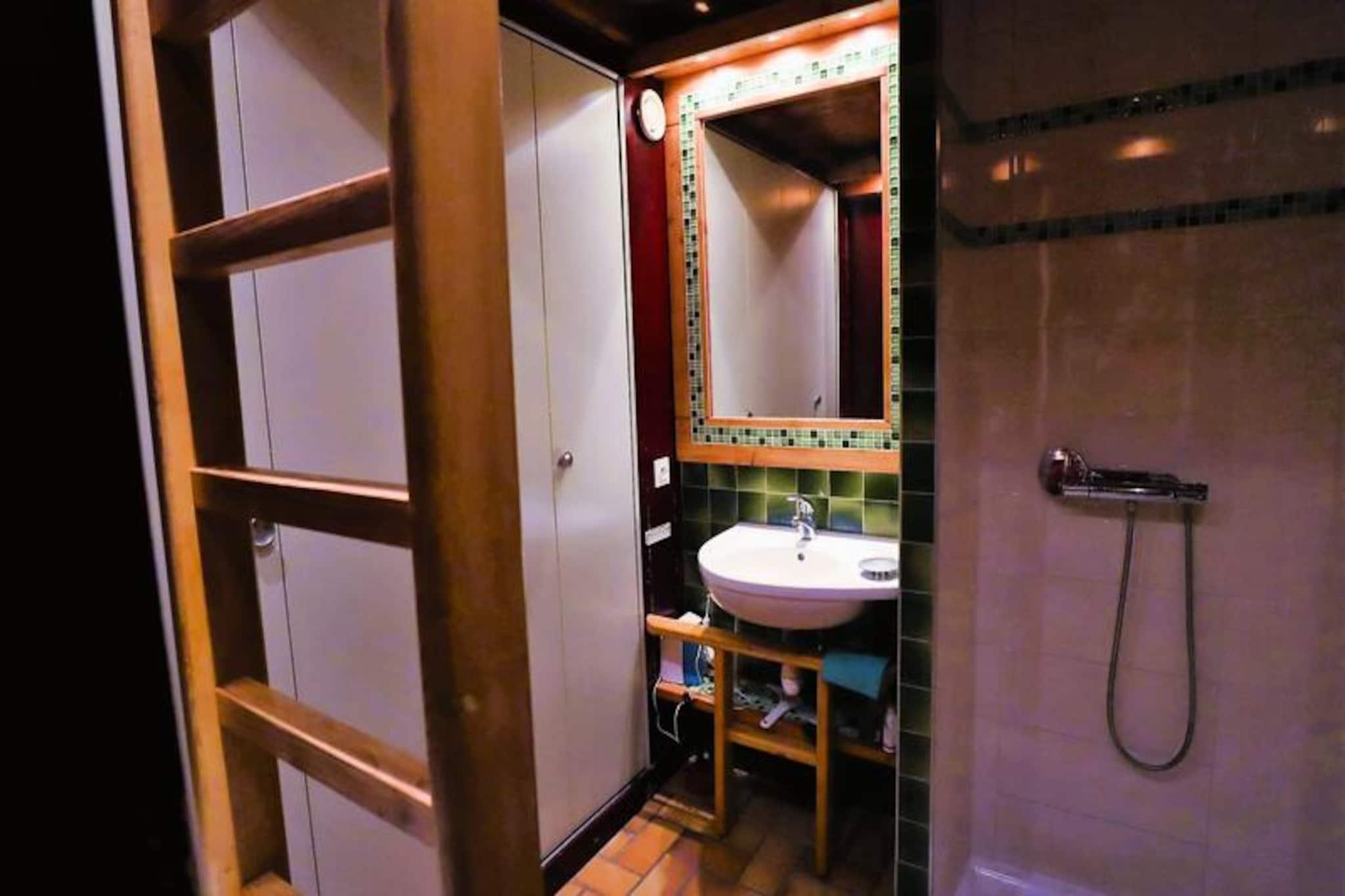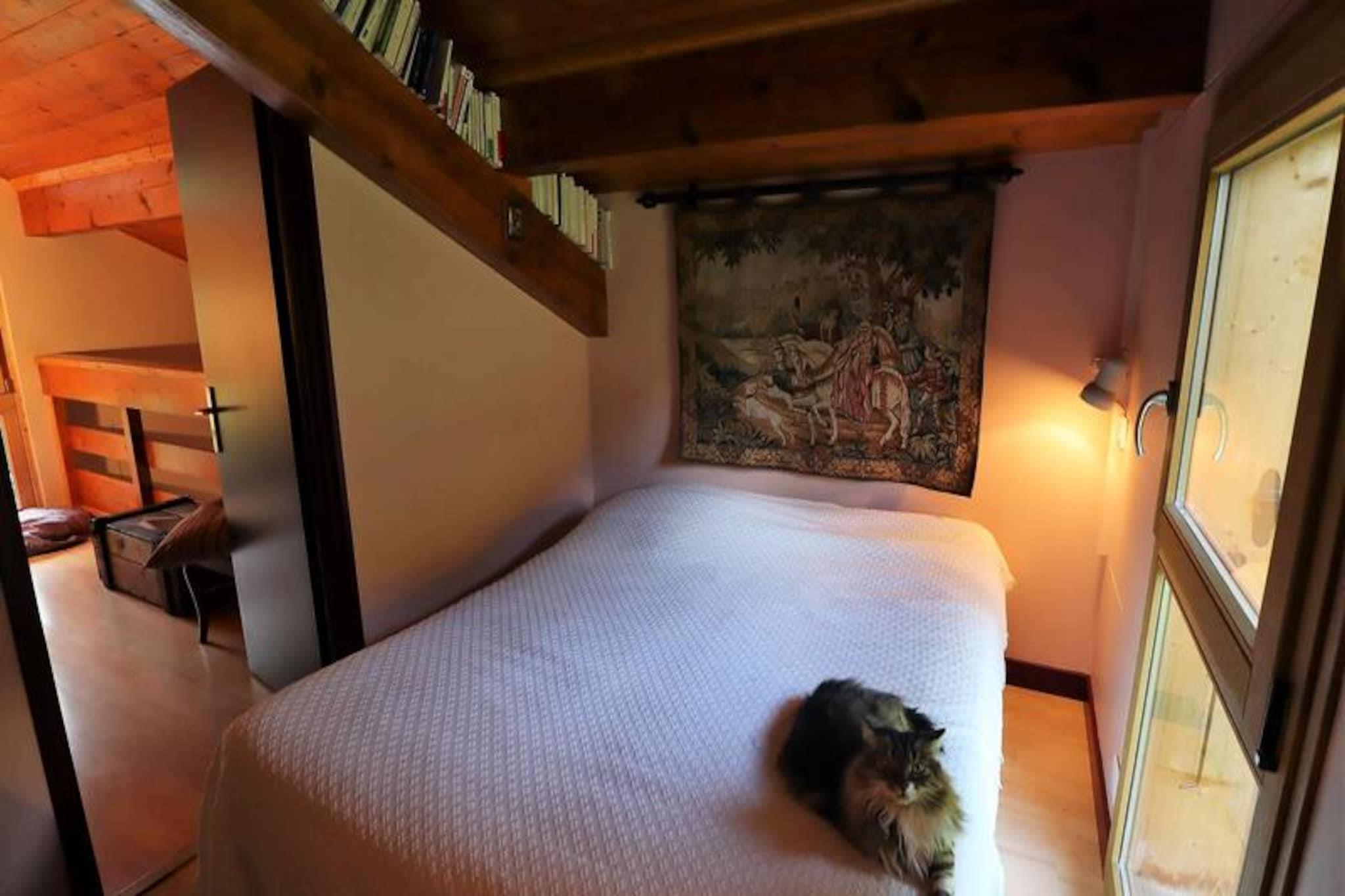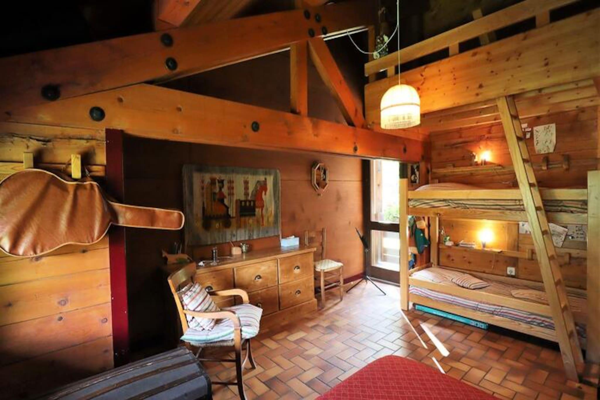 In the serene village of Le Planay, this architect-designed chalet offers a harmonious blend of comfort and nature. Surrounded by a lush garden with a gentle river flowing at its edge, the chalet invites you to unwind amidst its peaceful ambiance. The split-level design enhances the sense of space, while large windows frame picturesque views of the garden from every room, bathing the interiors in natural light. Whether you're sipping coffee on the south-facing terrace or enjoying the tranquility of the surroundings, this retreat promises a rejuvenating escape. Step inside to discover a warm and inviting living area that seamlessly combines a lounge, dining space, and a fully equipped kitchen. The first half-level features a charming attic bedroom with exposed beams, a double bed, and two bunk beds, complete with a balcony overlooking the verdant garden. A modern bathroom with a shower and heated towel rail ensures your comfort. Ascend another half-level to find a cozy double bedroom and a library/office nook, perfect for quiet moments or remote work. For skiers, the converted garage with a ski room and direct access to the living area adds convenience to your alpine adventures. Located just 10 meters from the free ski bus stop and a short ski ride to the connecting slope to Arèches, this chalet is a haven for winter sports enthusiasts. In summer, the garden becomes a private oasis, ideal for relaxing under the sun. With its unique architecture, thoughtful amenities, and proximity to both nature and ski facilities, this chalet is the perfect choice for a memorable getaway in the French Alps.