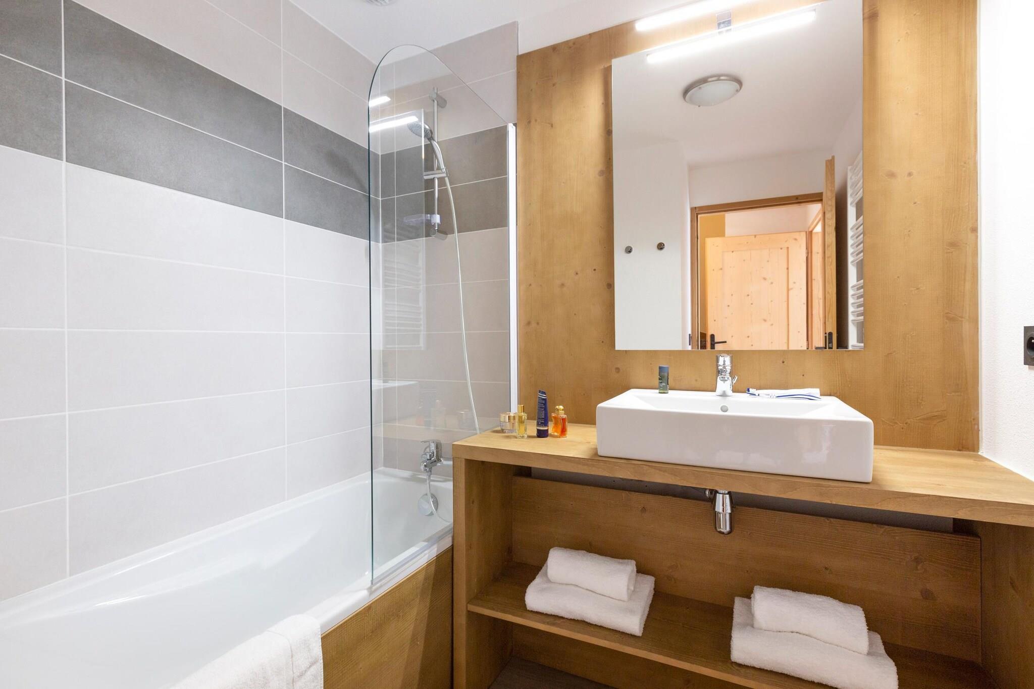 Living room(double sofa bed, TV, fireplace, seating area), open kitchen(hob(ceramic), electric kettle, coffee machine, oven, microwave, dishwasher, fridge), bedroom(single bed, single bed), bedroom(bunk bed), bedroom(single bed, single bed), bathroom(bathtub with shower, hairdryer), toilet(toilet), toilet(toilet), sauna, balcony or terrace, swimming pool(shared with other guests, indoor), Mountain view