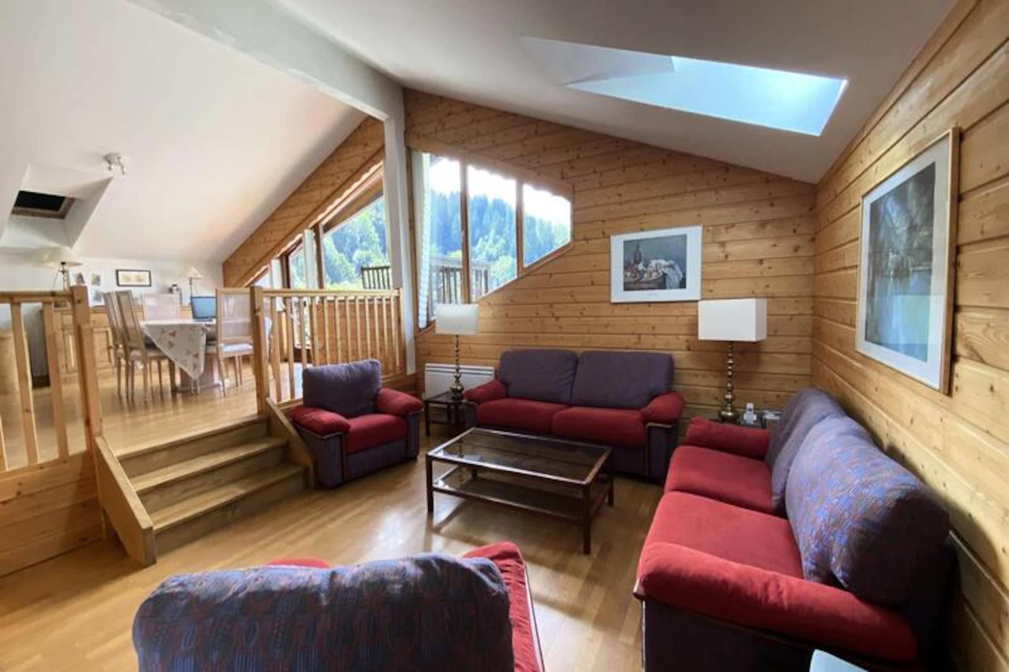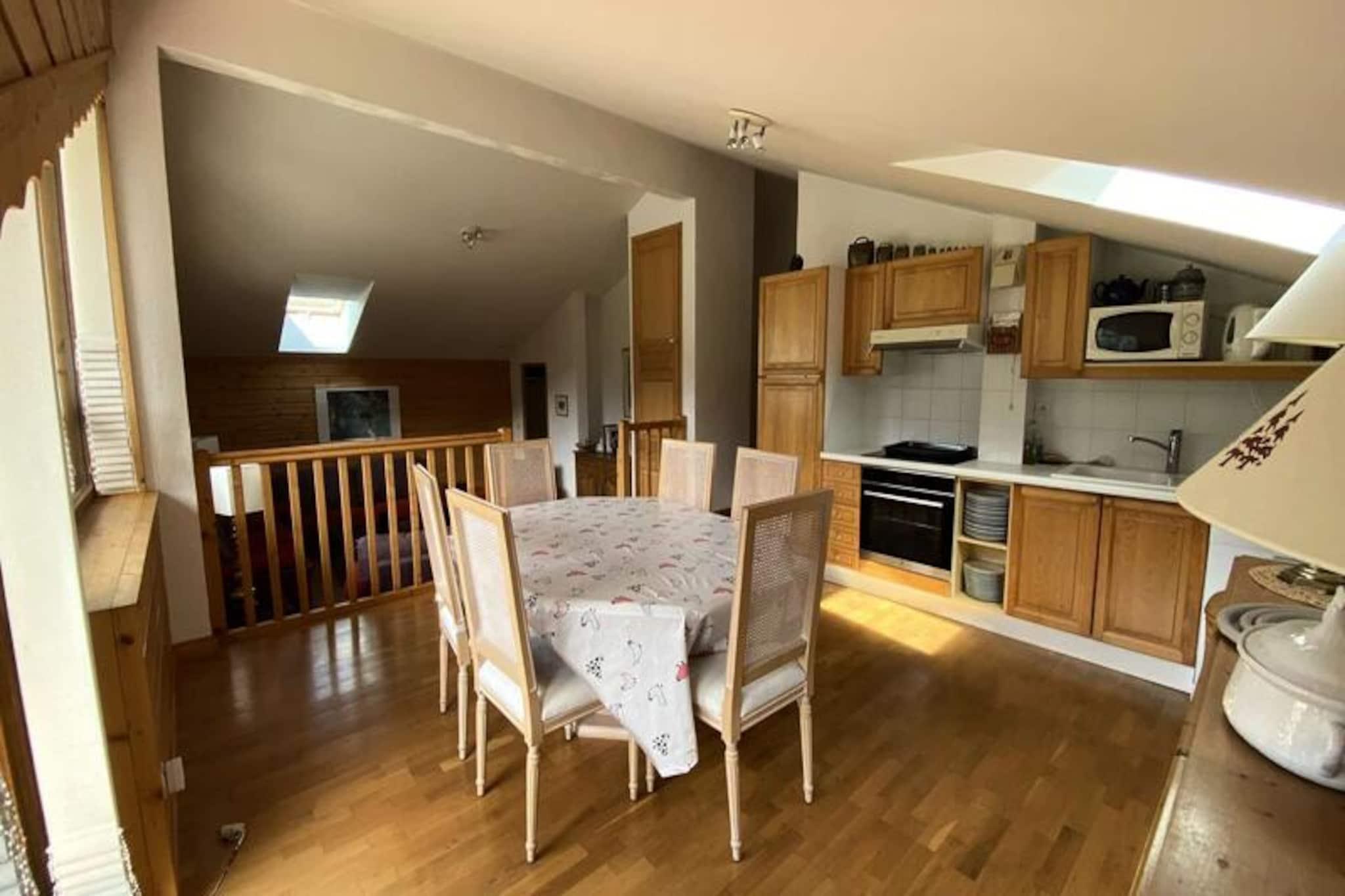 High above the charming village of Arêches-Beaufort, this spacious alpine retreat offers a serene escape in the heart of the Savoie Mont Blanc region. With its dual exposure to the east and west, the apartment bathes in natural light throughout the day, providing breathtaking views of the surrounding peaks and valleys. Whether you're here for the snow-covered slopes or the lush summer trails, this top-floor haven promises a memorable mountain getaway. \n\nSpanning 100 square meters across multiple levels, the apartment comfortably accommodates 6 to 7 guests. The warm, inviting interior features a large living area with a fully equipped kitchen, perfect for preparing hearty meals after a day of adventure. Relax in the cozy lounge with a TV or step out onto the east-facing balcony from the master suite or second bedroom to soak in the crisp alpine air. The sleeping arrangements include three thoughtfully designed bedrooms: a master suite with a double bed and en-suite bathroom, a second bedroom with a double and single bed, and a third with two single beds. Additional amenities include a ski locker, shared laundry facilities, and Wi-Fi for your convenience.\n\nLocated just 800 meters from the ski slopes and 350 meters from local shops, the apartment offers easy access to everything you need. A shuttle stop nearby ensures seamless travel to the slopes during the winter holidays. In summer, explore the region’s stunning hiking and biking trails or simply relax and enjoy the tranquil beauty of the Alps. With its perfect blend of comfort, convenience, and breathtaking scenery, this mountain retreat is the ideal choice for families and friends seeking an unforgettable alpine experience.