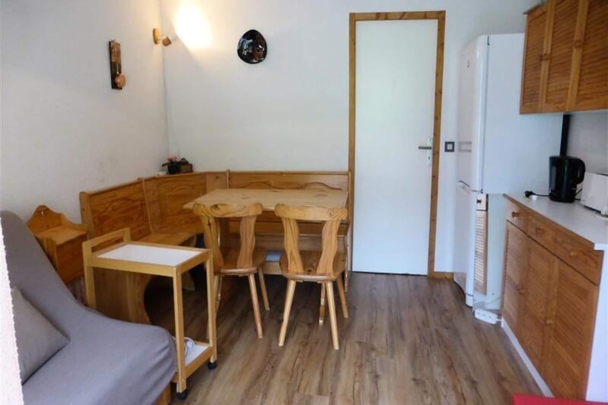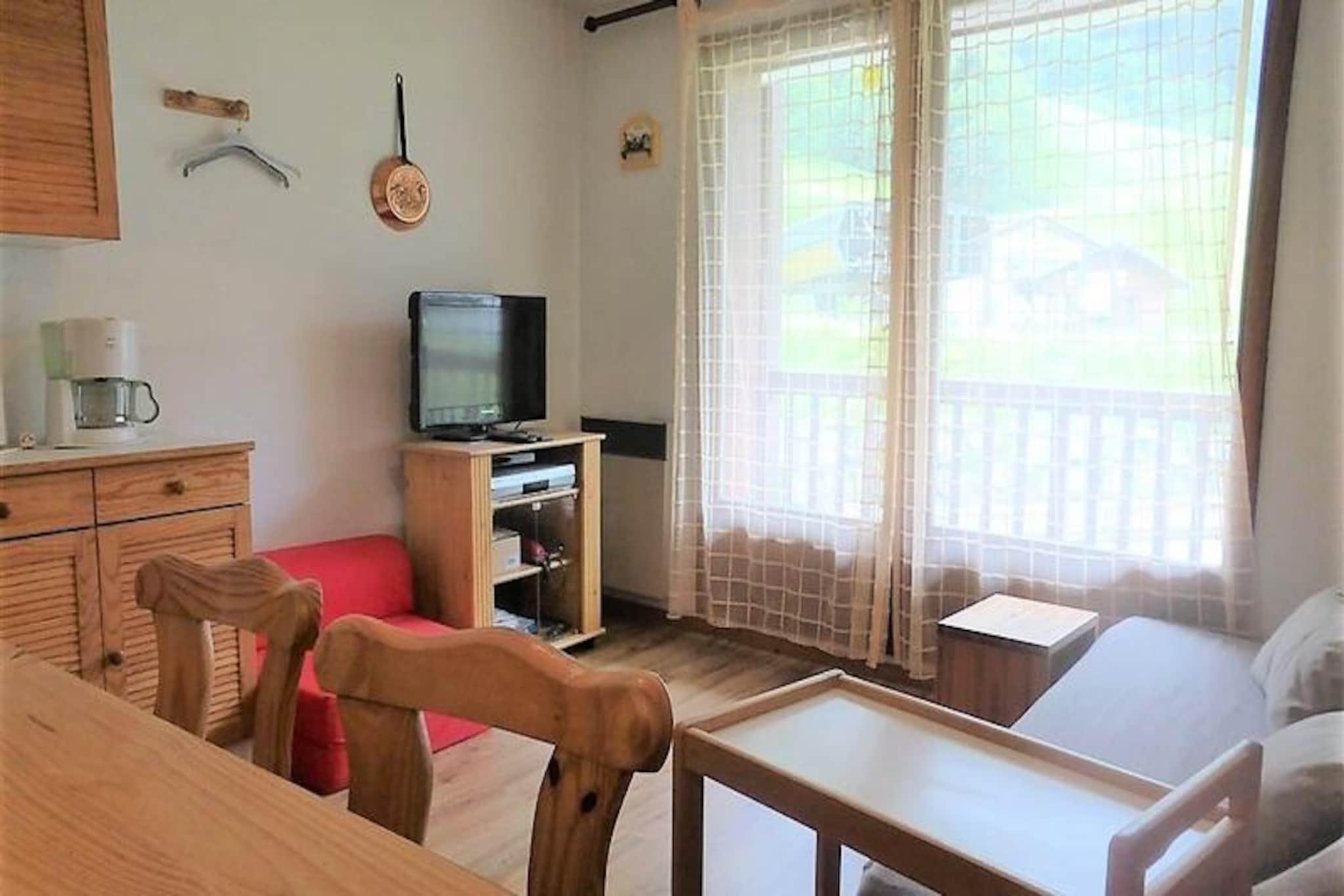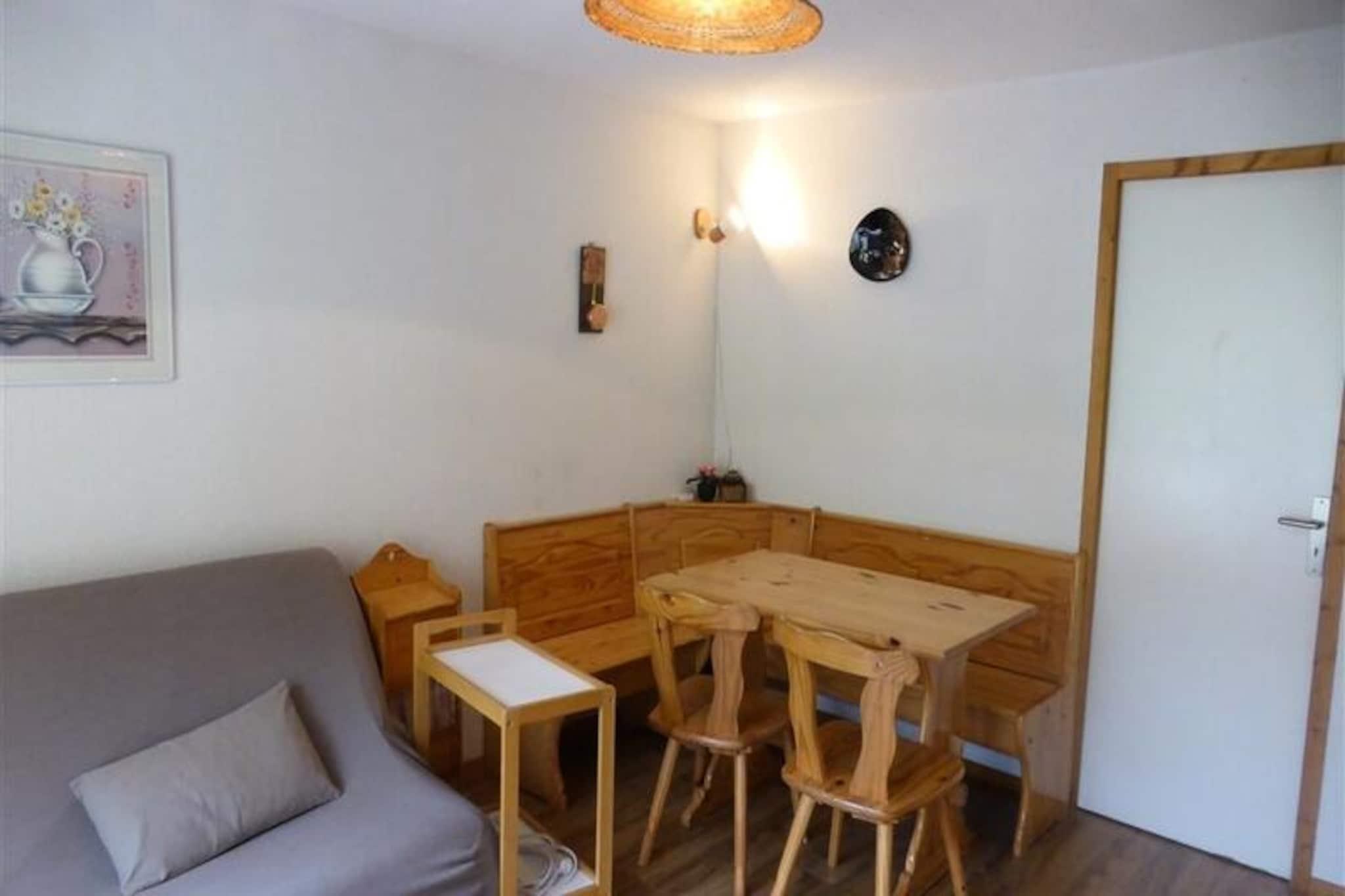 Amidst the breathtaking alpine scenery of Arêches-Beaufort, this charming studio cabin offers an idyllic retreat for up to five guests. Located in the heart of Planay, this cozy residence is perfect for immersing yourself in the beauty of Savoie Mont Blanc, whether you're seeking thrilling ski adventures or tranquil summer hikes. The Chalets du Planay residence, with its intimate atmosphere and convenient location at the foot of the slopes, invites you to experience the magic of the mountains in every season. \n\nThis thoughtfully designed 26m² studio cabin is situated on the second floor of a 30-apartment complex and features a clever layout to maximize comfort and space. The cabin entrance includes two bunk beds and a pull-out bed, while the living room offers a sofa bed for additional sleeping arrangements. A well-equipped kitchenette allows you to prepare hearty meals after a day of exploration, and the bathroom with a separate toilet ensures convenience for all guests. Modern amenities such as Wi-Fi, a washing machine, and a dishwasher enhance your stay, while on-site parking adds ease to your holiday experience.\n\nStep outside and find yourself at the gateway to endless alpine adventures. In winter, the slopes are just moments away, offering pristine skiing opportunities. During the summer months, the region transforms into a haven for hikers and nature enthusiasts, with picturesque trails, serene lakes, and awe-inspiring mountain vistas. The village of Arêches-Beaufort itself exudes charm, with local shops, restaurants, and cultural events adding to its appeal.\n\nWhether you're drawn by the thrill of skiing, the serenity of mountain walks, or the warm hospitality of Savoie Mont Blanc, this studio cabin provides the perfect base for unforgettable memories. Embrace the rhythm of the Alps and let the enchanting surroundings inspire your next adventure.