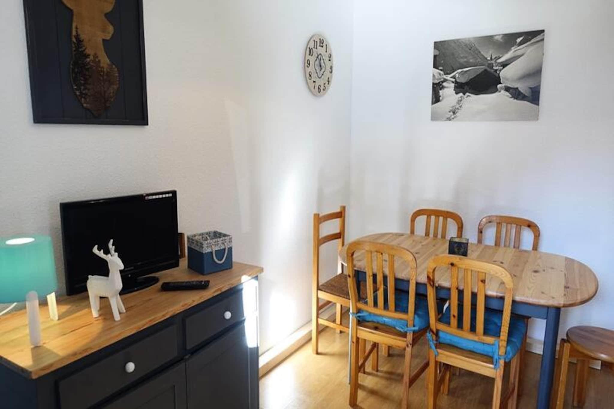 In the heart of the enchanting Arèches-Beaufort village, this delightful ground-floor apartment offers a cozy retreat for families and small groups seeking a blend of alpine charm and modern comfort. Imagine waking up to the serene views of mountain pastures, stepping onto your private south-facing terrace, and breathing in the crisp mountain air as you plan your day in this picturesque corner of the French Alps. Whether you're here for skiing adventures or summer hikes, this property is perfectly situated within walking distance of both the slopes and the village center. \n\nDesigned for up to six guests, the apartment spans 34 square meters and features a thoughtfully arranged layout. The living room invites relaxation after a day of exploration, while the equipped kitchenette, complete with a dishwasher, makes meal preparation effortless. Two inviting bedrooms with double beds and a cozy cabin with bunk beds ensure restful nights for all. A separate bathroom and toilet add convenience, and modern amenities like a TV enhance your stay. During the summer, guests can enjoy access to the shared swimming pool, adding a refreshing touch to warm alpine days. \n\nArèches-Beaufort is a haven for outdoor enthusiasts, offering skiing in winter and scenic trails in summer. The village itself is brimming with charm, with local shops, restaurants, and cultural landmarks just a stroll away. Explore the region's famed Beaufort cheese, visit nearby alpine farms, or simply soak in the tranquil beauty of the surroundings. \n\nWhether you're seeking adventure or relaxation, this charming apartment provides the perfect base for creating unforgettable memories in the French Alps. With its idyllic setting and thoughtful amenities, it’s a place where every moment feels special.