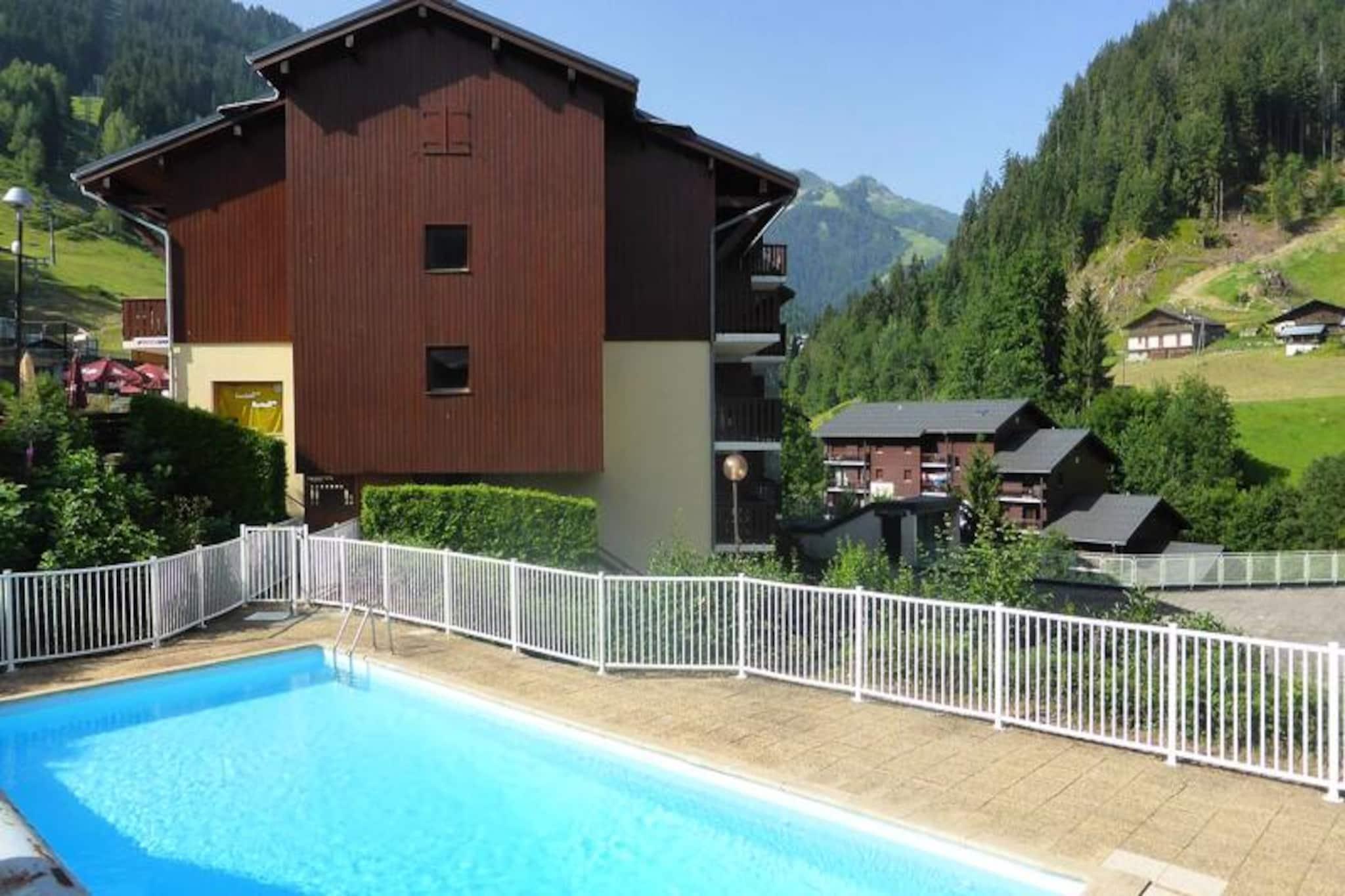 In the picturesque village of Val Blanc, this charming apartment offers a perfect alpine retreat for families or small groups. Just 50 meters from the ski slopes, it provides an ideal base for winter sports enthusiasts, while in summer, the residence features a shared swimming pool for relaxation under the mountain sun. The west-facing loggia, complete with garden furniture, invites you to unwind with breathtaking views of the surrounding peaks as your backdrop. Whether you're seeking adventure or tranquility, this location delivers both in abundance. The apartment comfortably accommodates 4 to 6 guests within its 28 m² layout. The enclosed cabin entrance features cozy bunk beds, while the living room includes a double sofa bed for additional sleeping space. A separate small bedroom with a double bed ensures privacy and comfort. The well-equipped kitchenette, complete with a microwave, dishwasher, and fridge, allows for easy meal preparation after a day of exploration. A bathroom and separate toilet add to the convenience, while the elevator ensures accessibility for all guests. Small pets are welcome upon request, making this a truly inclusive getaway. Beyond the property, the vibrant village offers a range of amenities, from local restaurants serving Savoyard specialties to shops and ski rental services. In summer, the area transforms into a haven for hikers and cyclists, with trails that lead to stunning alpine vistas. For families, the nearby childcare equipment rentals ensure a stress-free stay. With its proximity to the slopes and the charm of Val Blanc, this apartment is a gateway to unforgettable mountain memories. Whether you're carving through fresh powder in winter or basking in the serene beauty of the Alps in summer, this residence promises a holiday filled with comfort, convenience, and the magic of the mountains.