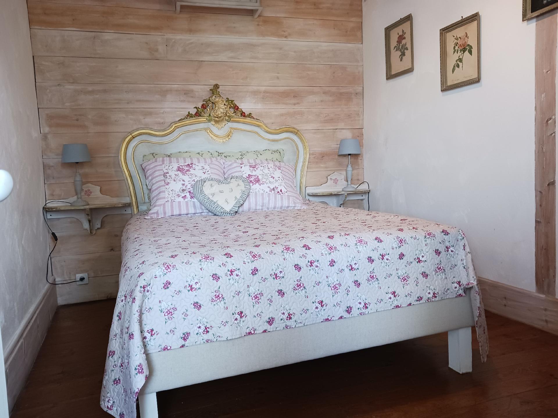 The upper floor offers lovely uninterrupted views over the valley. A small private lounge with WIFI and television, internet box giving access to a range of channels including French and foreign generalist channels France TV, Arte ....beaucoup de lumière, as well as two bedrooms. These rooms are elegantly furnished with antique furniture and whitewashed wood, harmonising with the whitewashed walls. One bedroom has a double bed (160x200cm), a wardrobe and two bedside tables, while the second has two single beds (90 x 190cm), a wardrobe and two bedside tables. A washing machine is also available.