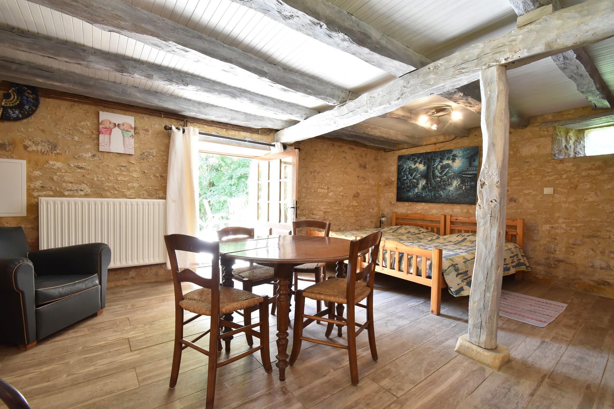 This beautiful holiday cottage in Besse dates from the seventeenth century where you soak up the history. Many of the elements are authentic, such as the beautiful beamed ceilings, wooden floor and monumental fireplaces. The living room consists of two spacious areas: a sitting room with a comfortable leather corner sofa and fireplace with wood burner, and a dining room with an open fireplace. There is a private pool in the garden. The children can happily play on the lawn. You can even walk to Besse (400 m). Here there's a beautiful old church with its original stone roof. The medieval bastide town of Villefranche-du-Périgord (7 km) is surely worth a visit. In addition, there are several swimming lakes in the immediate vicinity, including Prats-du-Périgord (5 km) and Cazals (12 km). Admire the ancient villages of Domme (22 km), with its extensive underground passages with stalactites. The rooms are comfortable and perfect for a family vacation.