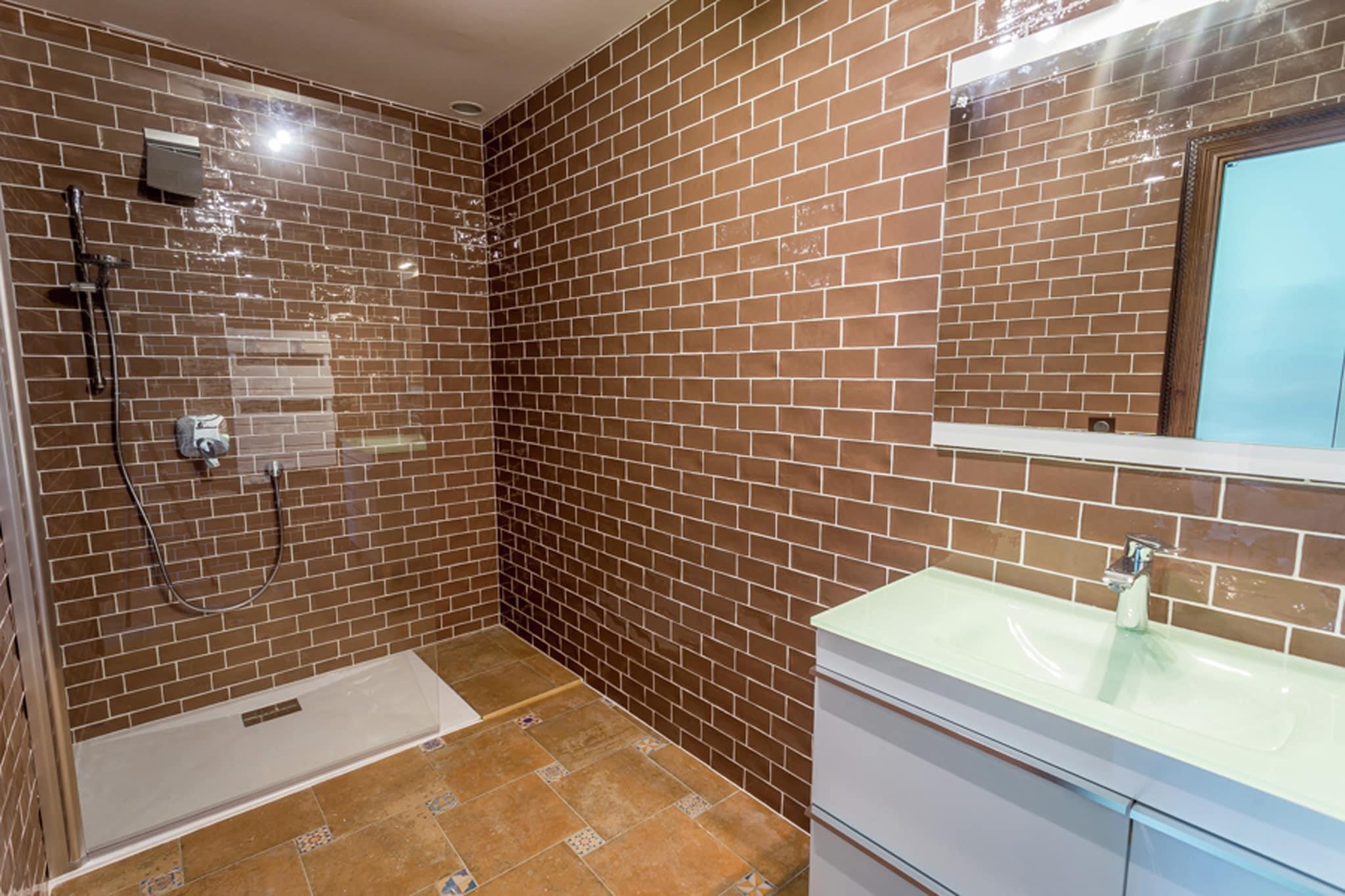 Ground floor: (Kitchen(cooker(ceramic), oven, microwave, dishwasher, fridge, washing machine), bedroom(double bed or 2 single beds), bathroom(bathtub or shower)) On the 1st floor: (bedroom(double bed or 2 single beds), bedroom(double bed or 2 single beds), bedroom(double bed or 2 single beds), bathroom(bathtub or shower, toilet), bathroom(bathtub or shower), toilet) balcony, terrace, garden furniture, swimming pool(shared with other guests, heatable, opened from 1/2 Apr upto and including 1/2 Oct), safety deposit box
