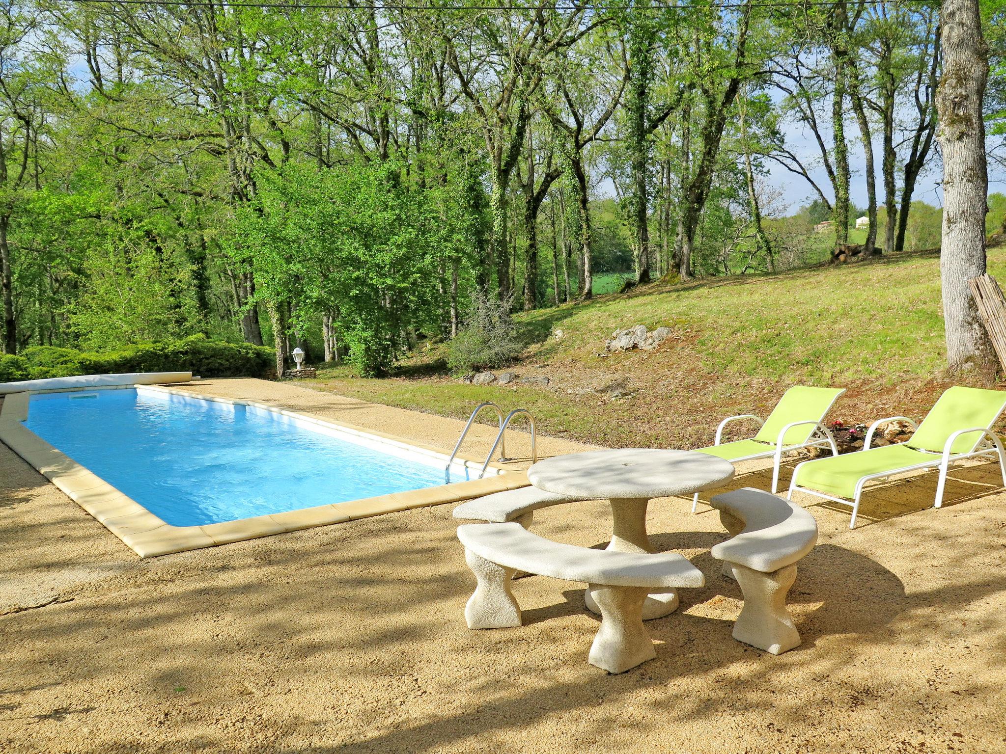 Farm estate "Le Mayne Le Chêne". 4 houses in the residence. 2.7 km from the centre of Blanquefort-sur-Briolance, 7 km from the centre of Lacapelle-Biron, 16 km from the centre of Fumel. For shared use: property 30 ha, terraced garden (not fenced). Private: swimming pool (9 x 3 m, depth 90 - 140 cm, seasonal availability: 09.May. - 29.Aug.) with shutter cover. In the complex: table tennis, table football. 100 m long motor access (via unmade road). Parking at the house on the premises. Shop 7 km, supermarket 16 km, bus stop "Fumel-Place du Postel" 15 km. Golf course (18 hole) 30 km, tennis 2 km, riding stable 12 km, fishing possibilities 800 m. Nearby attractions: Château de Biron 8 km, Château de Bonaguil 10 km. Please note: the owner lives on the same property.